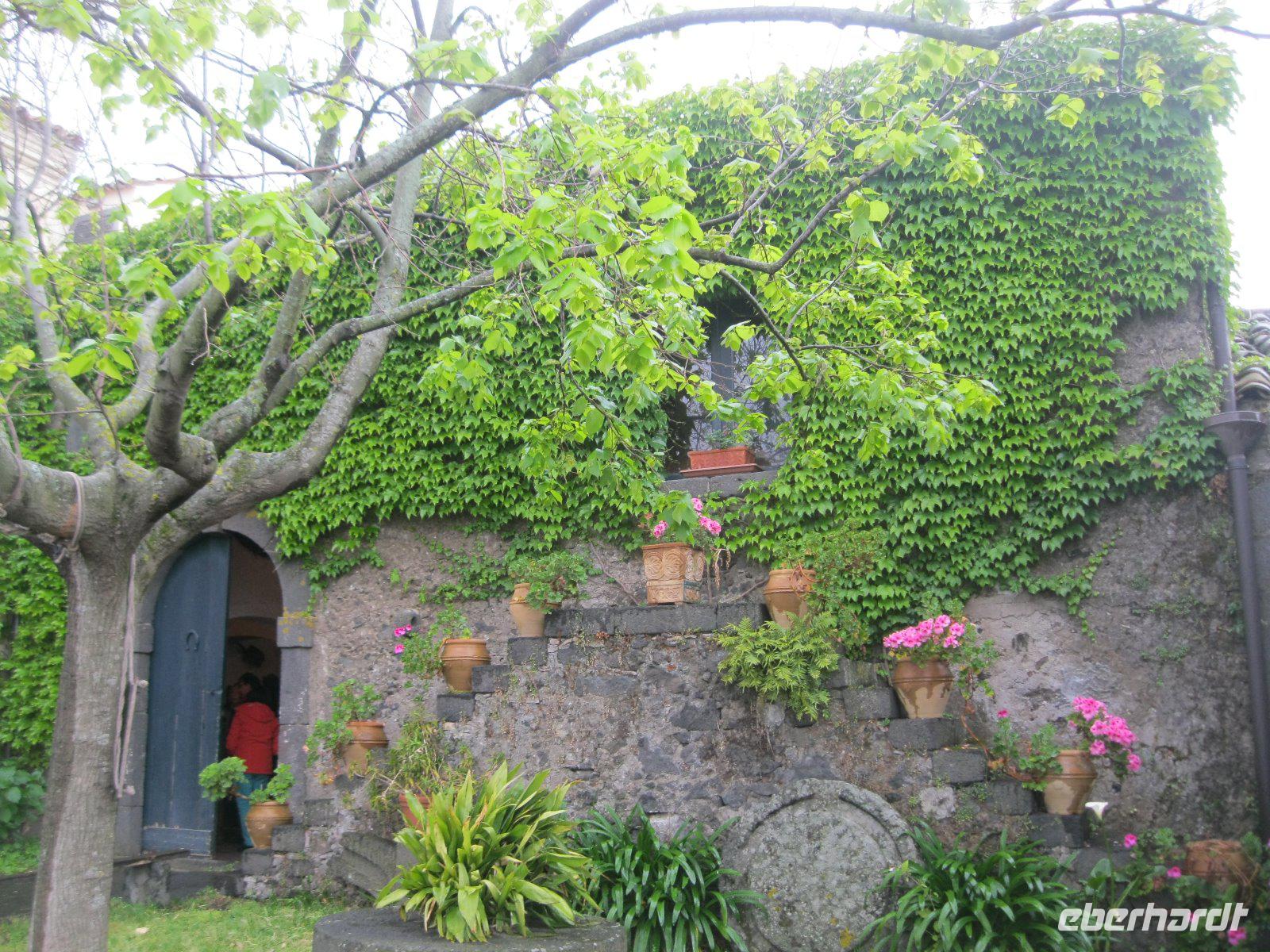 Mit Spannung schauten wir hinauf zum "Mongibello". Versteckt er sich wieder im Nebel ? Noch ist der "Berg der Berge" zu sehen. Der Bus bringt uns nach Nicolosi (1910 m) hinauf und dort trennt sich unsere Gruppe. Die Gipfelstürmer zieht es per Seilbahn und Jeep zum Torre del Filosofo in 2920 m zu einer kleinen Runde, geführt von den Geologen vor Ort. Die entschleunigt Reisenden umrunden den Monti Silvestri auf etwa 2000 m. Der seit 2013 zum Weltkulturerbe zählende Ätna besitzt ca. 400 Nebenkrater. Jetzt zieht doch noch richtig dicker Nebel auf und wir schaffen es rechtzeitig ins Refugio Sapienza. Dort lassen wir uns Tee und Espresso schmecken, derweil draußen Hagelkörner hernieder prasseln. Limonen und Pistazienhonig wurde noch verkostet und gekauft, dann ging es in die älteste Weinkellerei am Ätna. Die Familie Manino in VIAGRANDE, erwartete uns mit Pecorino, Olivenbrot, Pizza und Wein. Alle Leckereien aus dem Ätna - Anbaugebiet. Mit guter Laune, aber leider im stömenden Regen, fuhren wir weiter und erreichten die Alcantara Schlucht. Des Wetter wegens wurde nur ein kleiner Fotostop gemacht bevor wir unser Hotel wieder erreichten. Jetzt war Koffer packen angesagt. Morgen reisen wir weiter nach Syrakus. Das heißt auch Abschied nehmen von der direkten Lage zum Ionischen Meer.