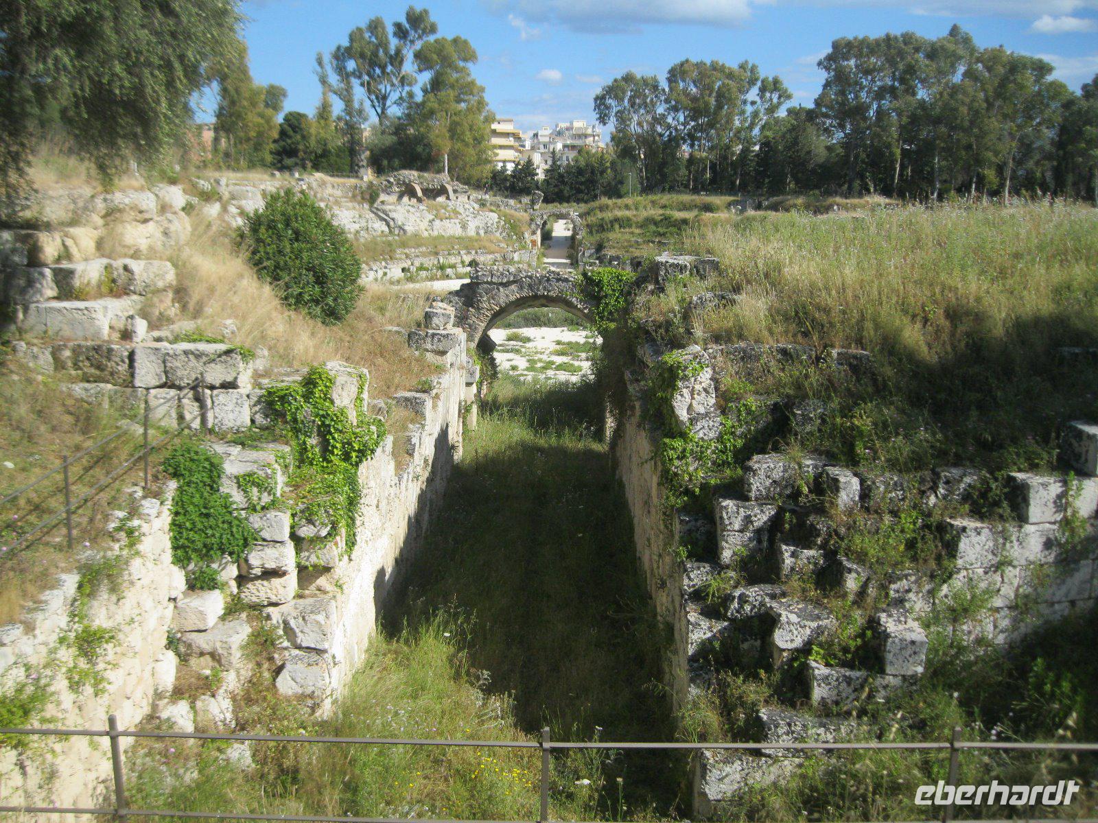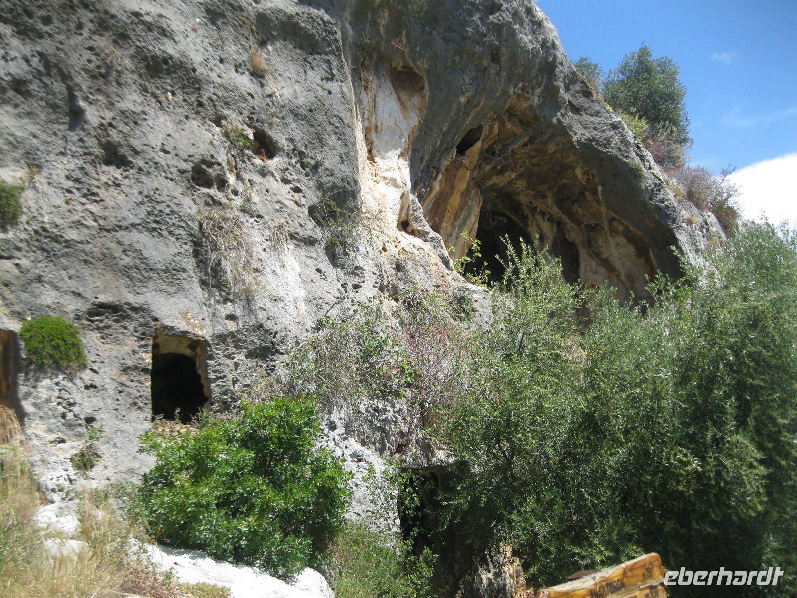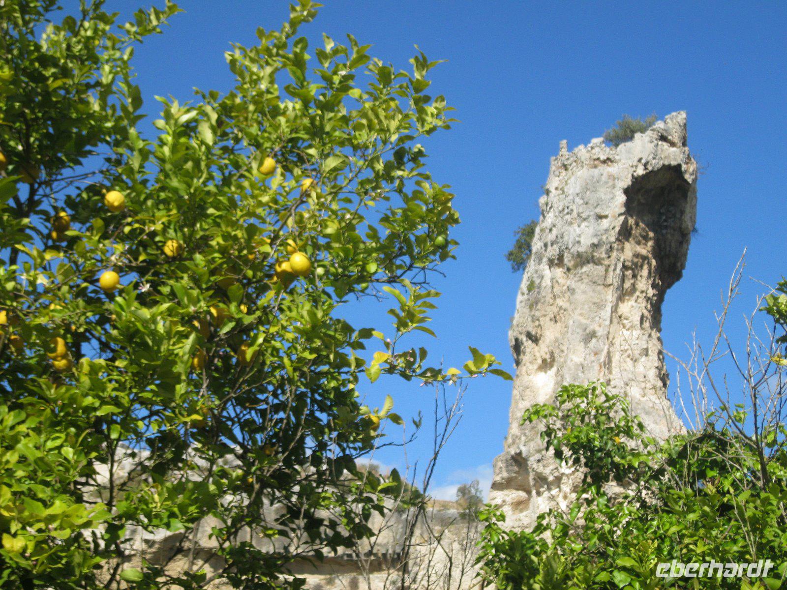 Necropoli di Pantalica, seit 2005 Weltkulturerbe, stand heute auf unserem Plan. In den Felshängen des Pantalia Plateaus breitete sich eine uralte Totenstadt aus. Etwa 5000 Kammern wurden in die Felswände geschlagen, wodurch die größte Gräbergruppe Siziliens entstand (ADAC). Entlang der ehemaligen Eisenbahnlinie gelangten wir hinab in die Anapo Schlucht und verzehrten unser Mitgebrachtes Essen. In den Zitro Plantagen am Weg war die Ernte, per Hand, im vollen Gange. Der Bus wartete in Sortino auf uns und nach einer Reparatur, die Marco bestens meisterte, erreichten wir den Parco Archeologico della Neapolis. Dort besuchten wir das größte Theater der griechischen Welt - mit Platz für 15000 Zuschauern. Geschaffen von tausenden Sklaven, die ihr Leben dafür ließen. "Der erste Lauschangriff" der Geschichte fand im -Ohr des Dionysios- statt. Danach bummelten wir durch die Altstadt Ortigia, vom Hafen bis zur Fonte Aretusa. In der Kirche Santa Lucia bestaunten wir das Caravacio Gemälde und die aus puren Silber bestehende Prozessionsstatue der heiligen Lucia.