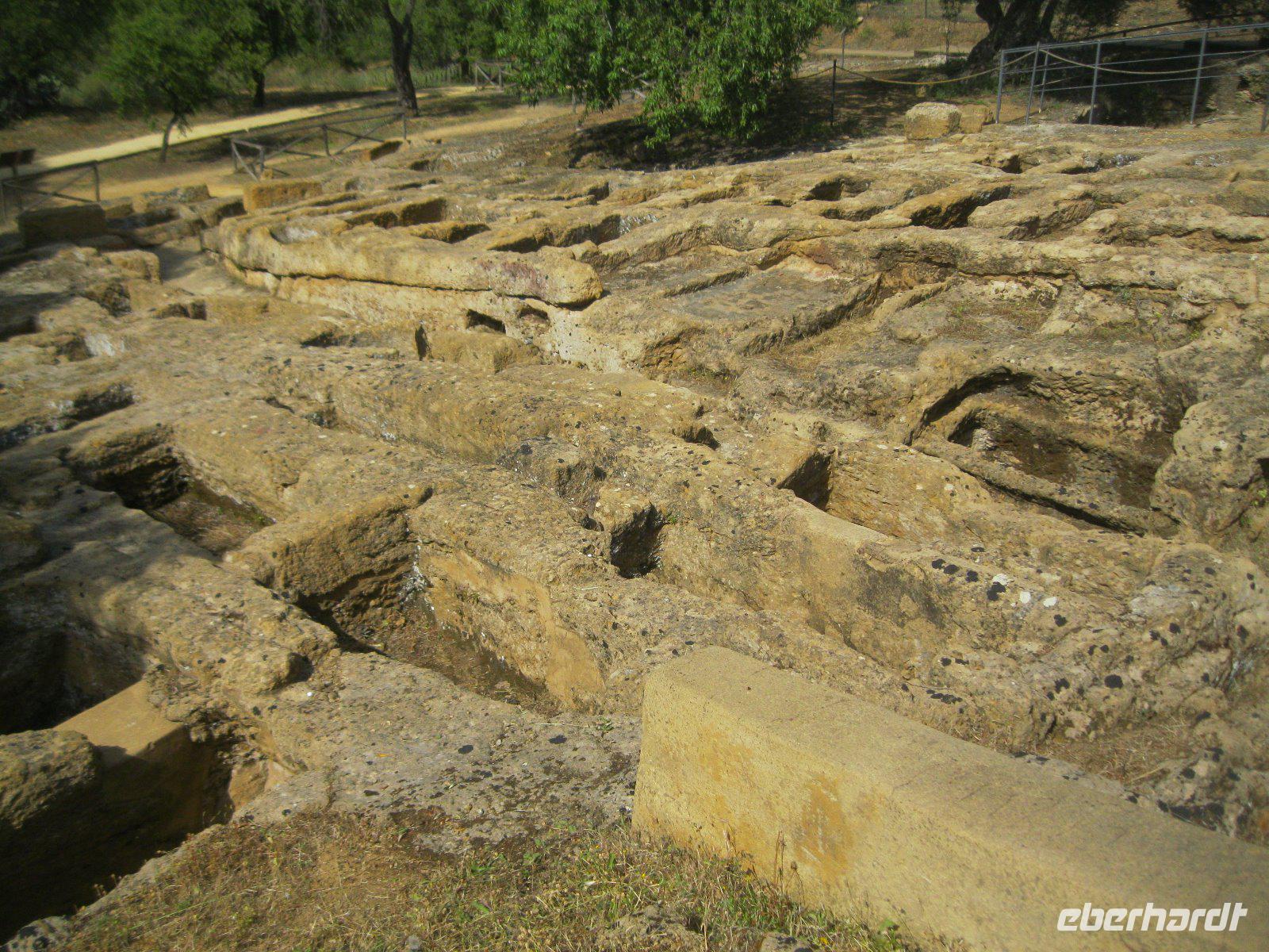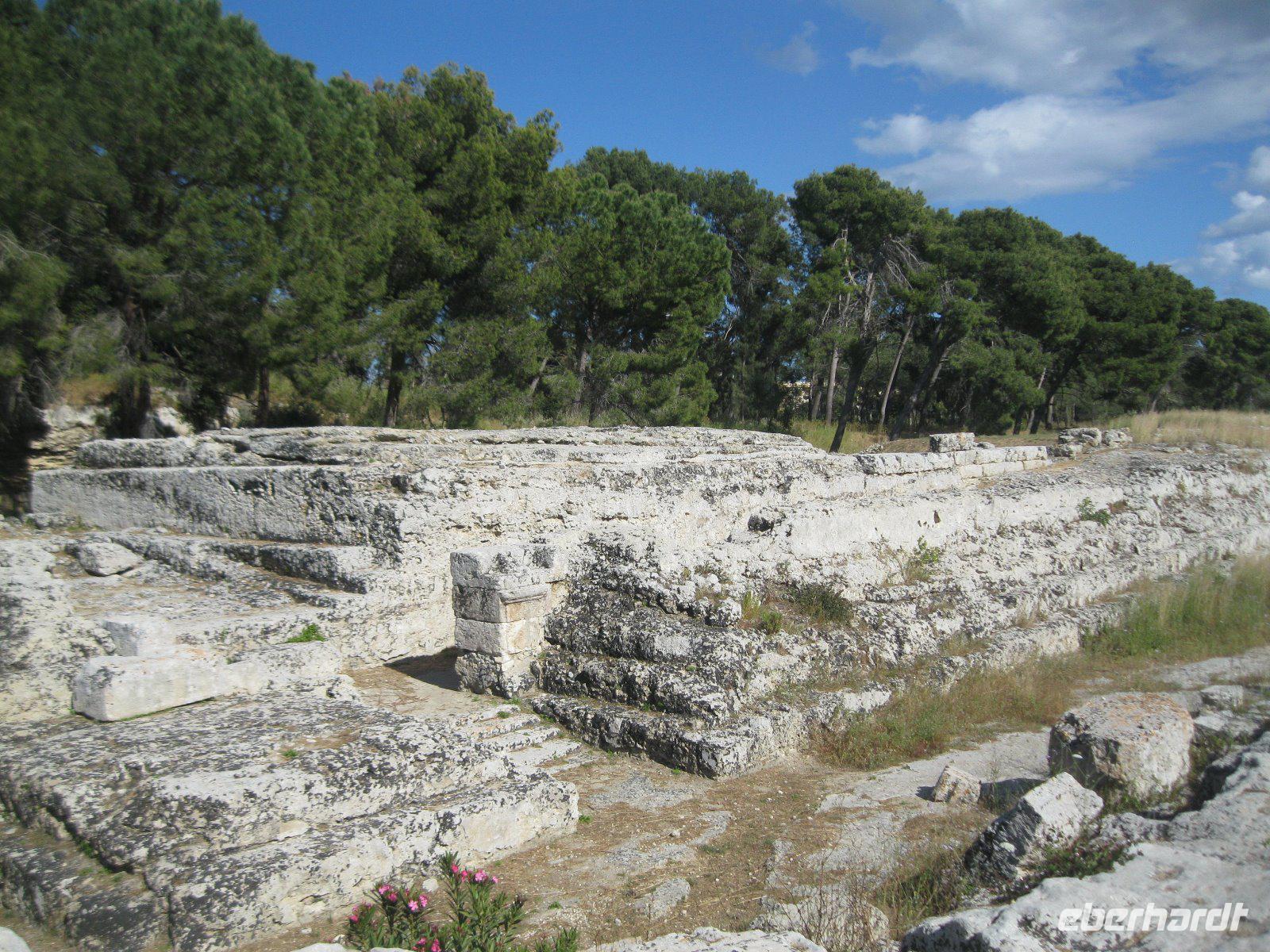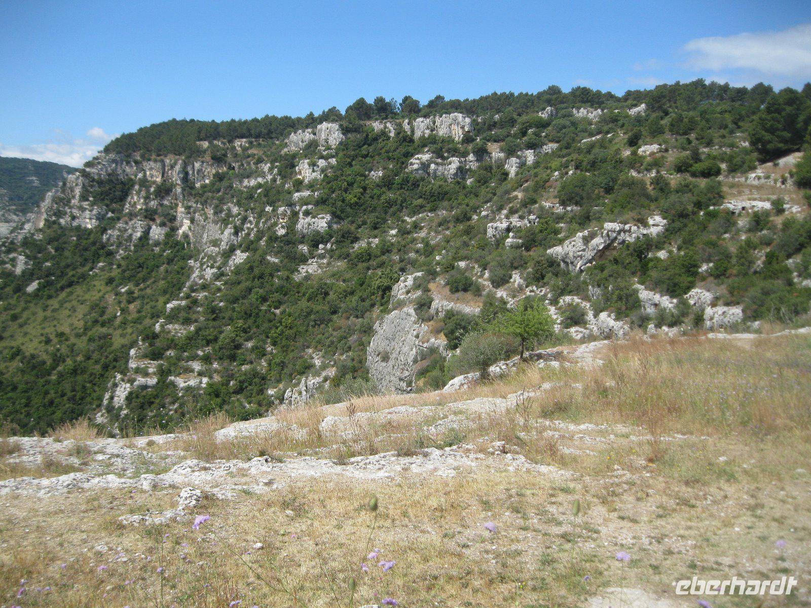 Necropoli di Pantalica, seit 2005 Weltkulturerbe, stand heute auf unserem Plan. In den Felshängen des Pantalia Plateaus breitete sich eine uralte Totenstadt aus. Etwa 5000 Kammern wurden in die Felswände geschlagen, wodurch die größte Gräbergruppe Siziliens entstand (ADAC). Entlang der ehemaligen Eisenbahnlinie gelangten wir hinab in die Anapo Schlucht und verzehrten unser Mitgebrachtes Essen. In den Zitro Plantagen am Weg war die Ernte, per Hand, im vollen Gange. Der Bus wartete in Sortino auf uns und nach einer Reparatur, die Marco bestens meisterte, erreichten wir den Parco Archeologico della Neapolis. Dort besuchten wir das größte Theater der griechischen Welt - mit Platz für 15000 Zuschauern. Geschaffen von tausenden Sklaven, die ihr Leben dafür ließen. "Der erste Lauschangriff" der Geschichte fand im -Ohr des Dionysios- statt. Danach bummelten wir durch die Altstadt Ortigia, vom Hafen bis zur Fonte Aretusa. In der Kirche Santa Lucia bestaunten wir das Caravacio Gemälde und die aus puren Silber bestehende Prozessionsstatue der heiligen Lucia.
