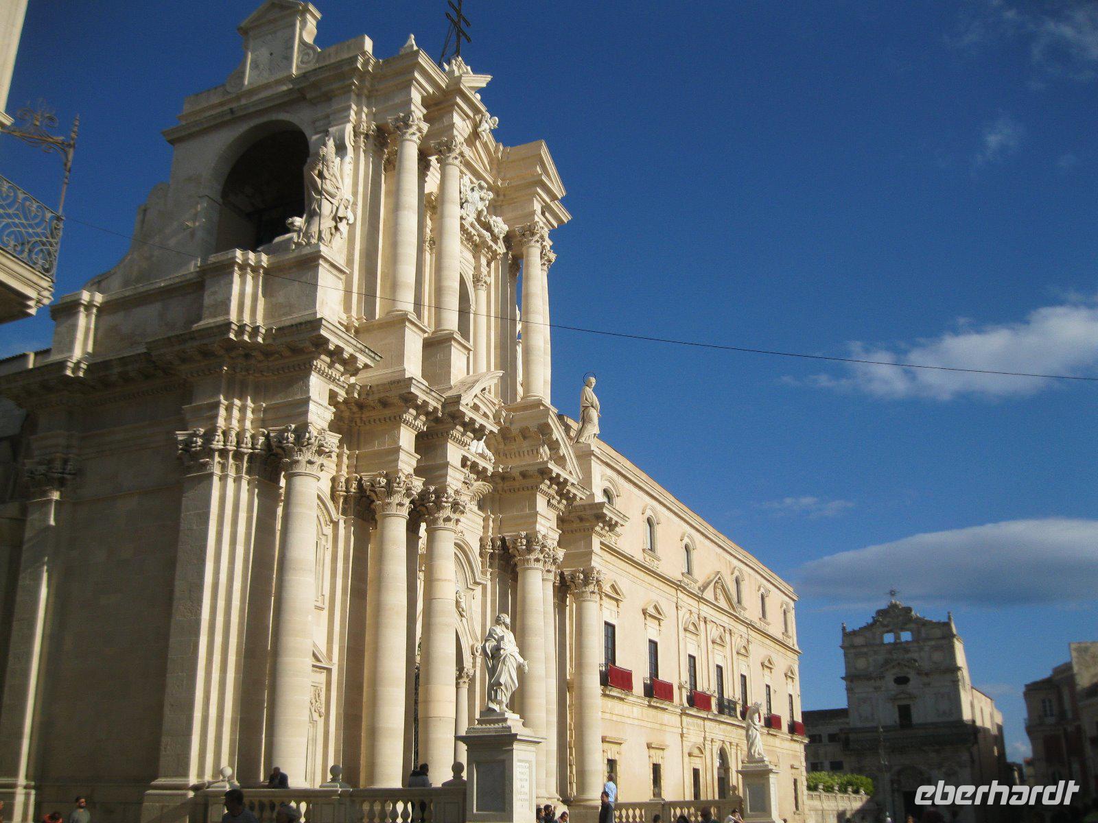 Ein letzter Blick zum Ätna, der besagte uns dass es in der Nacht Neuschnee gab und schon rollte unser Bus Richtung Noto. Ein Rundgang durch die barocke Stadt, vermittelte uns die Baukunst nach dem zerstörerischen Erdbeben von 1693. Heute sollte es zur Kultur noch eine Portion Natur geben. Der 1984 unter Naturschutz gestellte 8 km lange Küstenstreifen Vendicari war unser Ziel. Leider wurden wir immer wieder von Regenschauern verfolgt. Er hielt uns aber nicht von einer Wanderung zu der alten Thunfischverarbeitungs - Fabrik ab. Die verlassenen Ruinen gaben uns sogar Wind und Regenschutz. An den kleinen Dünenseen konnten wir von den Unterständen aus Wat- und Stelzvögel, sowie Flamingos und Brandenten - das Wahrzeichen vom Riserva Naturale di Vendicari - beobachten. Obwohl das türkisblaue Wasser und der feinsandige Strand zum Baden einluden, ließen wir die Badehosen im Rücksack, es war einfach zu frisch. Die Zehen statteten aber dem Meer einen Besuch ab. Nach einer kurzen Fahrt erreichten wir unser Hotel in Syrakus. Bis zum Abendessen war noch Zeit und so bummelten einige Gäste zur Isola di Ortigia, dem historischen Stadtteil.