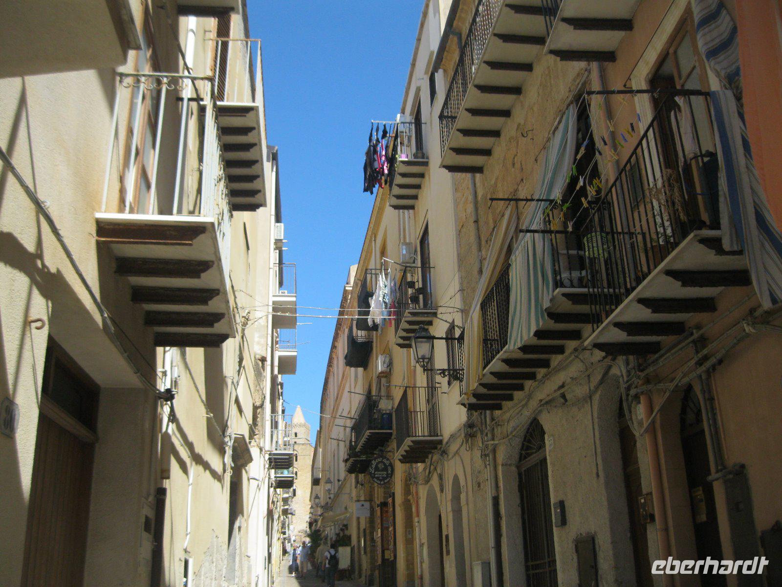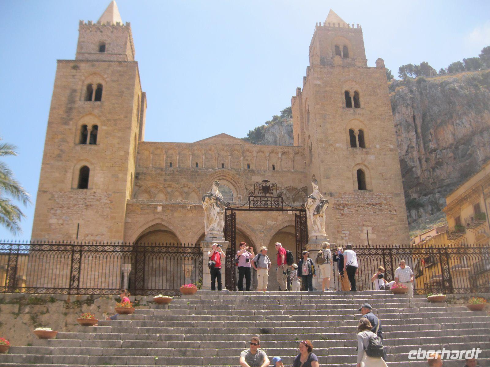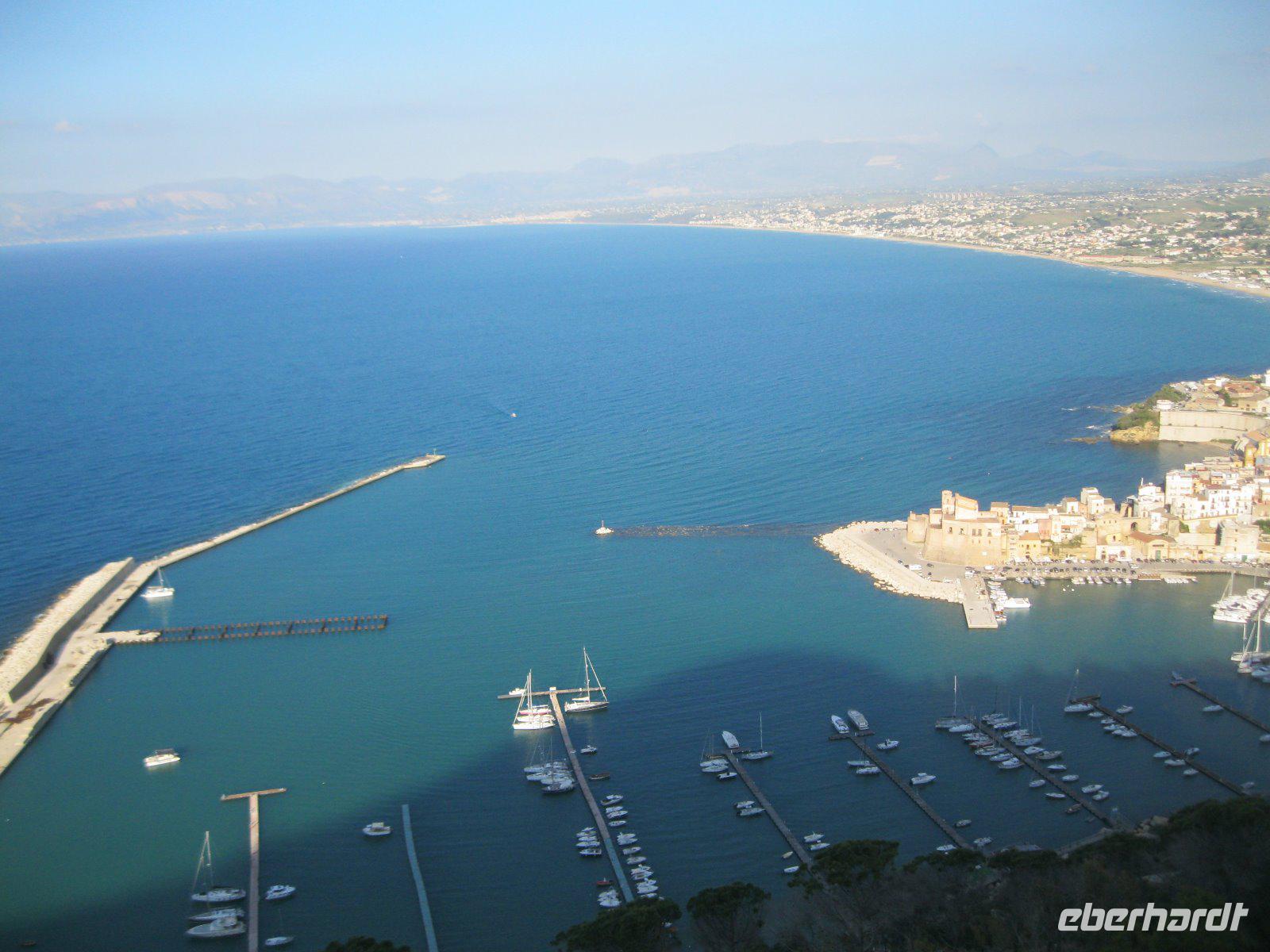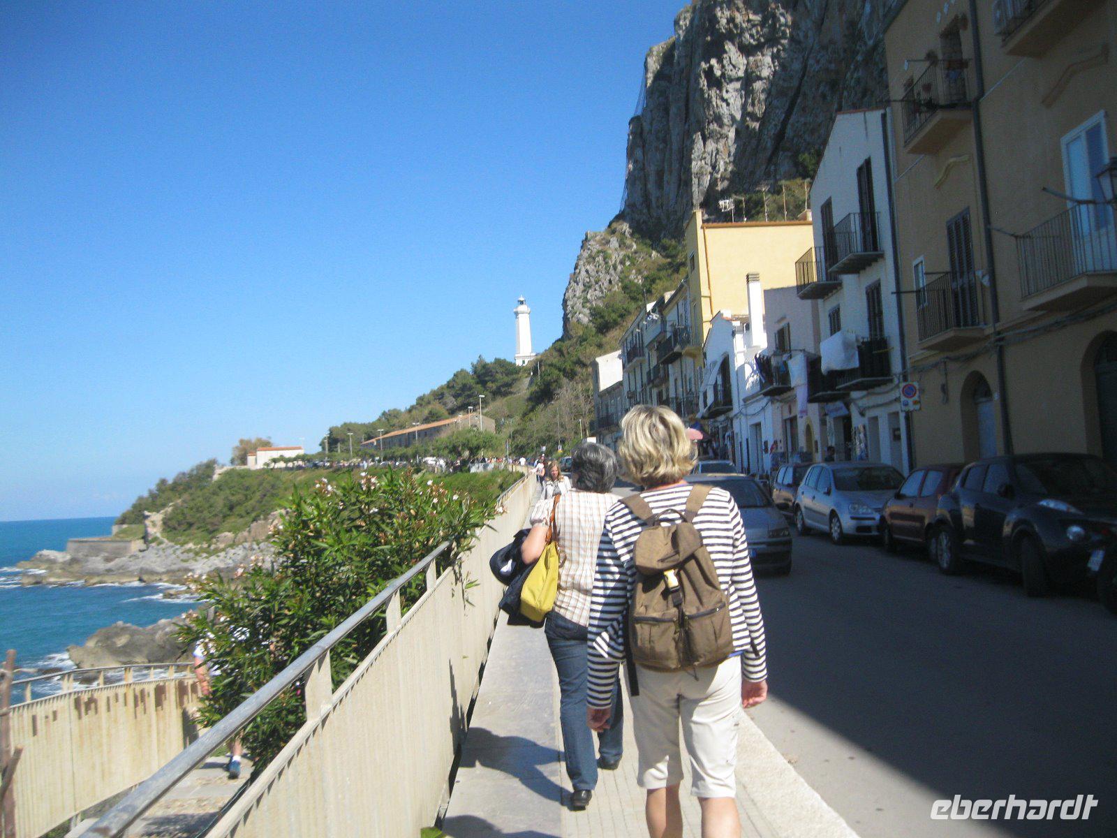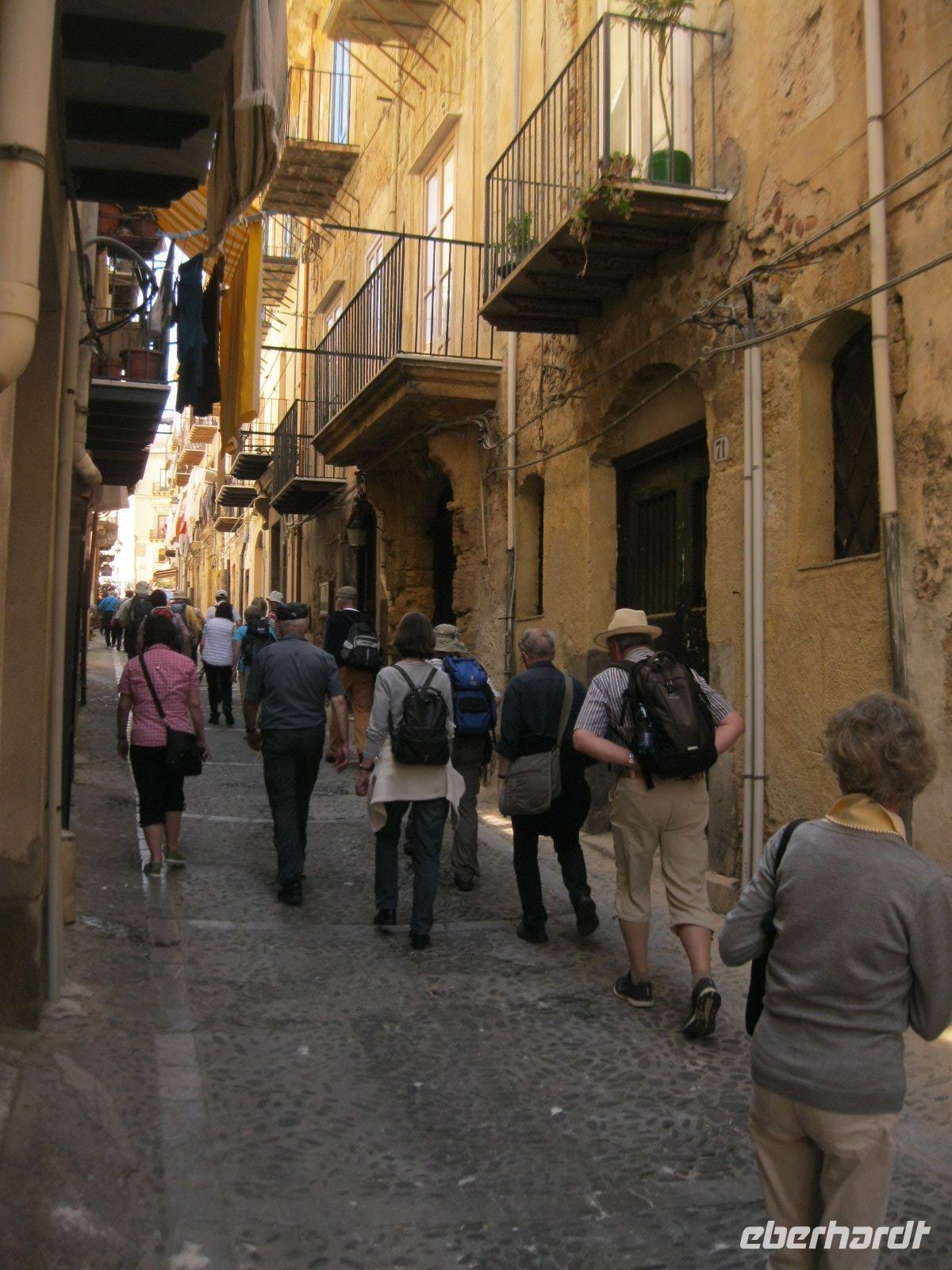 Vom Mittelmeer zum Tyrrhenischen Meer, von Süd nach Nord, einmal quer über die Insel, ging es nach Cefalu. Durch kleine, enge mit Wäsche behangenen Gassen erreichten wir den, 1131 von Roger II erbauten, Dom. Der Chorbereich fasziniert mit seinem goldgrundigen, mit Mosaiken gestalteten ,Christus Bildnis. Er schaut streng auf seine Gläubigen hinab mit aufgeschlagenem Buch, dessen Text lautet. "Ich bin das Licht der Welt". Weiter zog es uns zur vorzeitlichen "Waschmaschine", den Lavatoio- Waschplatz, mit Steinbecken und Wasserrinnen. Dieser wurde noch bis ins 20. Jhr.von den Frauen des Ortes als Treff zum waschen genutzt. Das Wahrzeichen der Rocca di Cefalu lockte uns zur Burg, in der Karl von Anjou während der "Sizilianischen Vesper"1284 gefangen gehalten wurde, hinauf. Ein Ausblick bis zu den Liparischen Inseln war die Belohnung. Am Ende dieses schönen Tages fuhren wir am Palermo vorbei und wurden auf der Autobahn an die Mafia (Cosa Nostra) Morde des Richters Giovanni Falcone und dem Staatsanwalt Paolo Borsellino erinnert. Auch heute noch ein großes Thema in Sizilien. Wir folgten der Strada del Vino Erice, vorbei an den einzigen Marmorbrüchen der Insel und erreichten unser neues Hotel in der Nähe von Trapani.