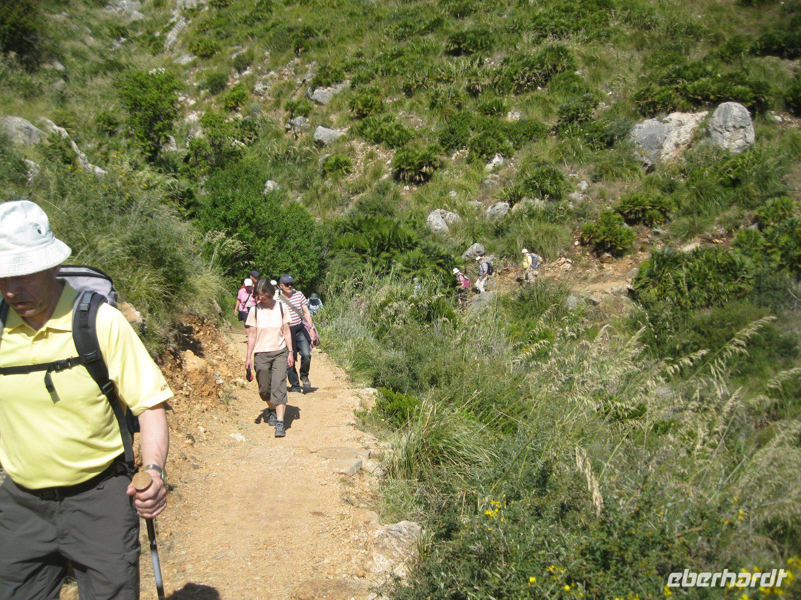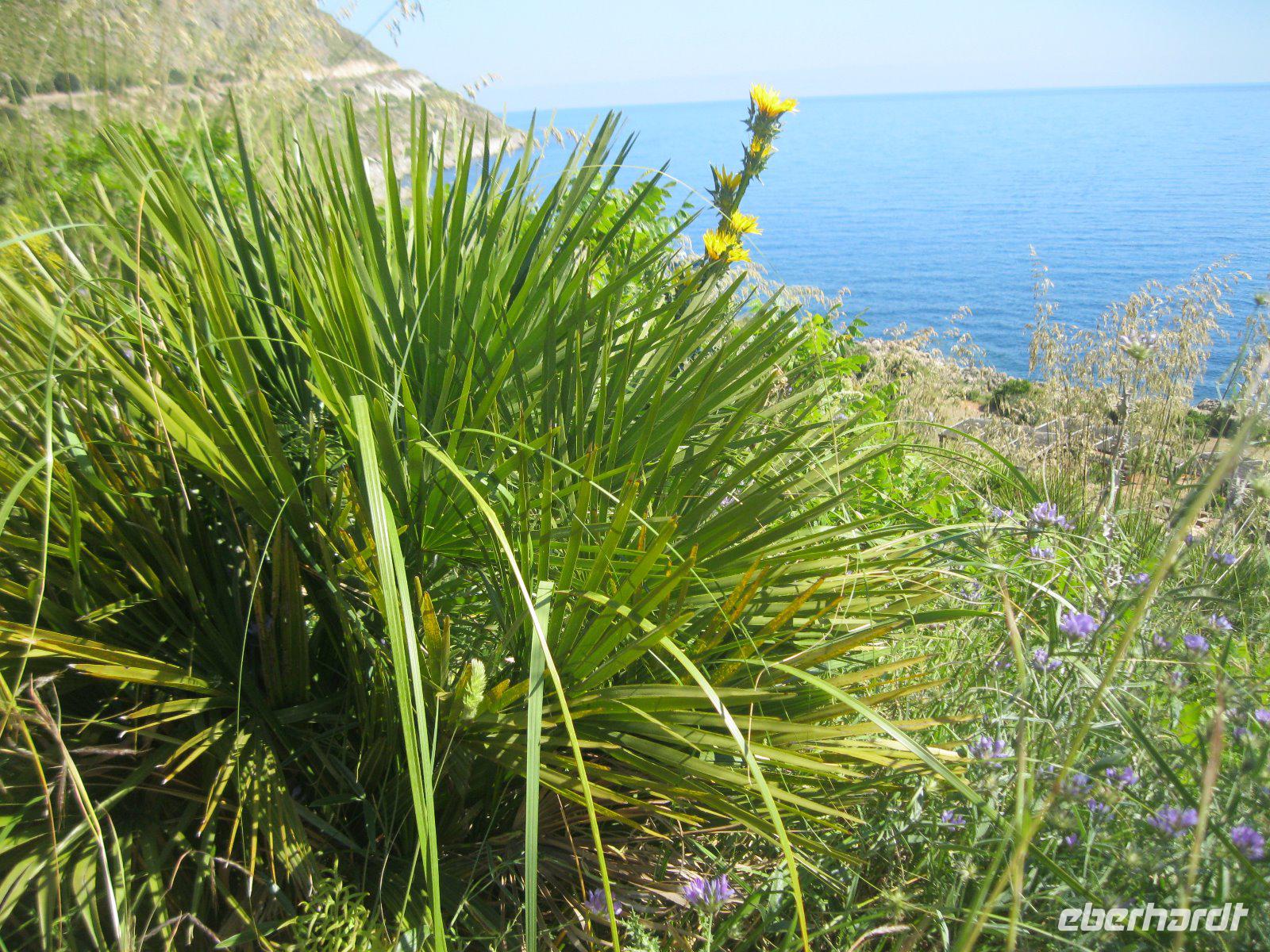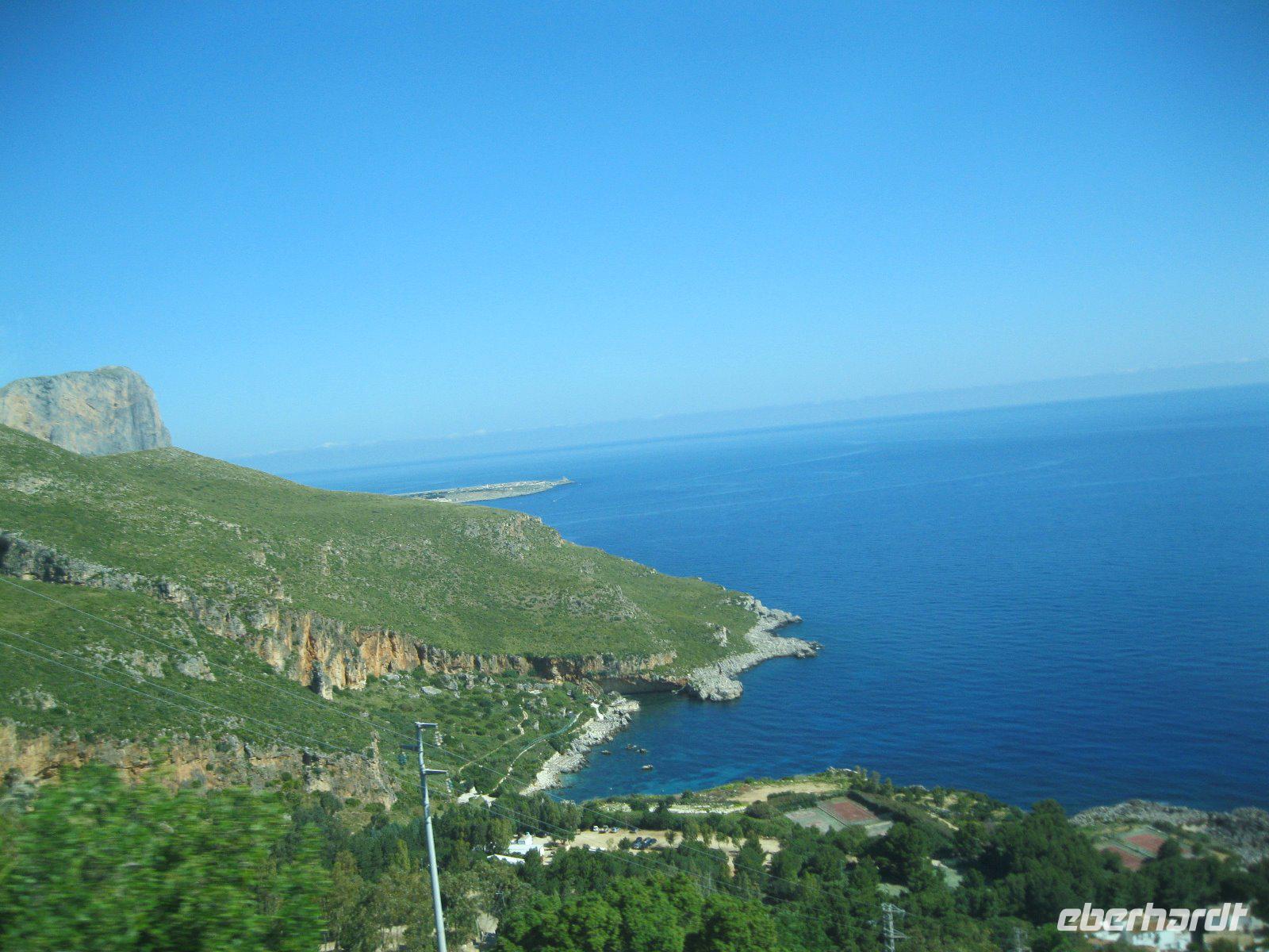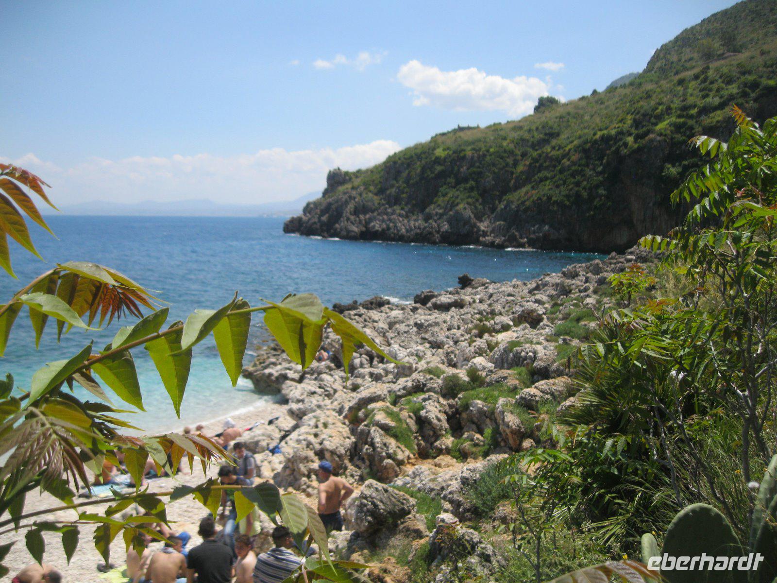 Zuerst ein Verpflegungsstop - so viel Zeit muss sein. Über eine Panorama Höhenstraße, entlang der zerklüfteten Westküste erreichten wir den ersten sizilianischen Naturpark. Riserva Naturale Orientata dello Zingara, etwa 16oo ha umfasssend und als Wahrzeichen die Zwergpalme. Am Nordeingang bis zur Grotte dell Uzzo war unser gemeinsamer Weg, dann teilten wir uns in drei Gruppen auf. Die einen stiegen fast 500m zum Borgo Cusenza hinauf. Die anderen liefen vom Nord- zum Südtor und der Rest wollte den Küstenweg erkunden. Am Ende trafen wir uns alle an der Cala Tonnarella zum sonnen oder einem kühlenden Bad im Meer. Diesen traumhaften Tag, zwischen Bergen, weißen Stränden und türkisblauem Meer, ließen wir am Lungo Mare in San Vito Lo Capo bei dem besten Eis der Insel ausklingen.