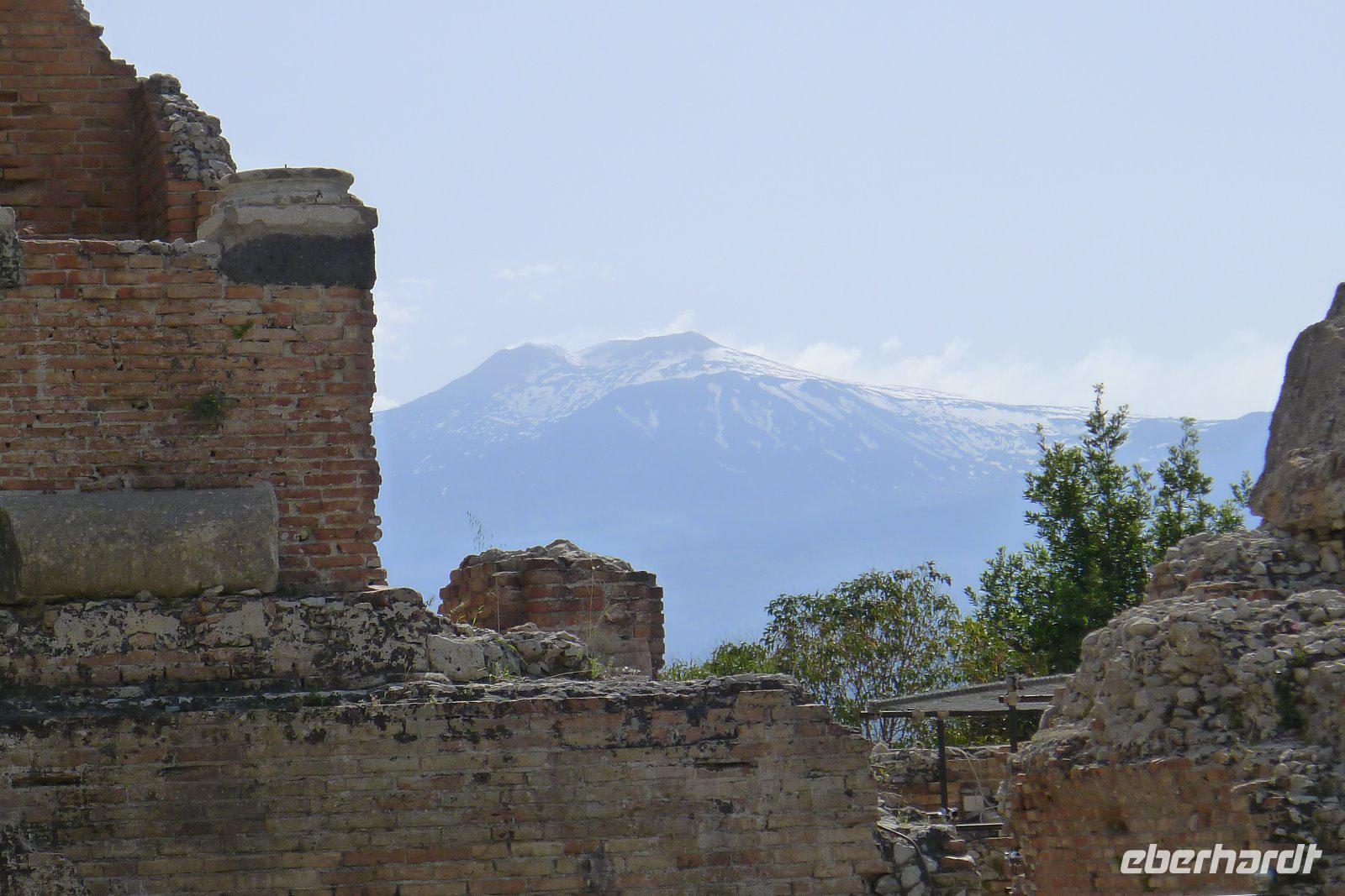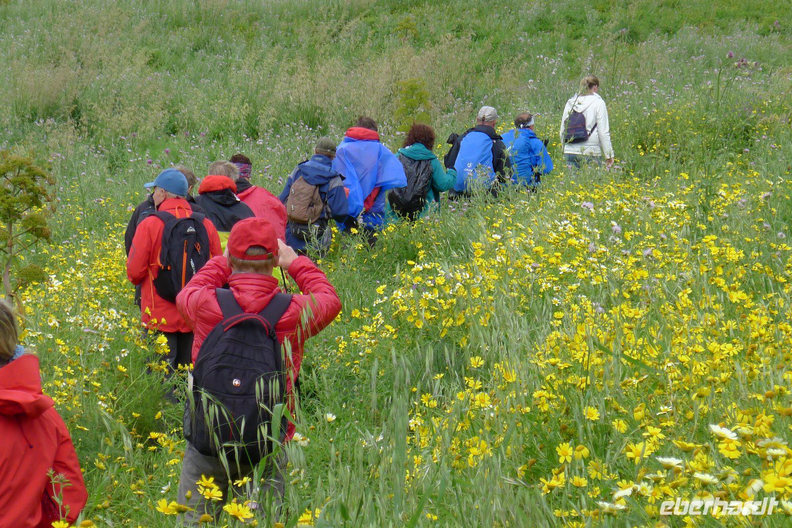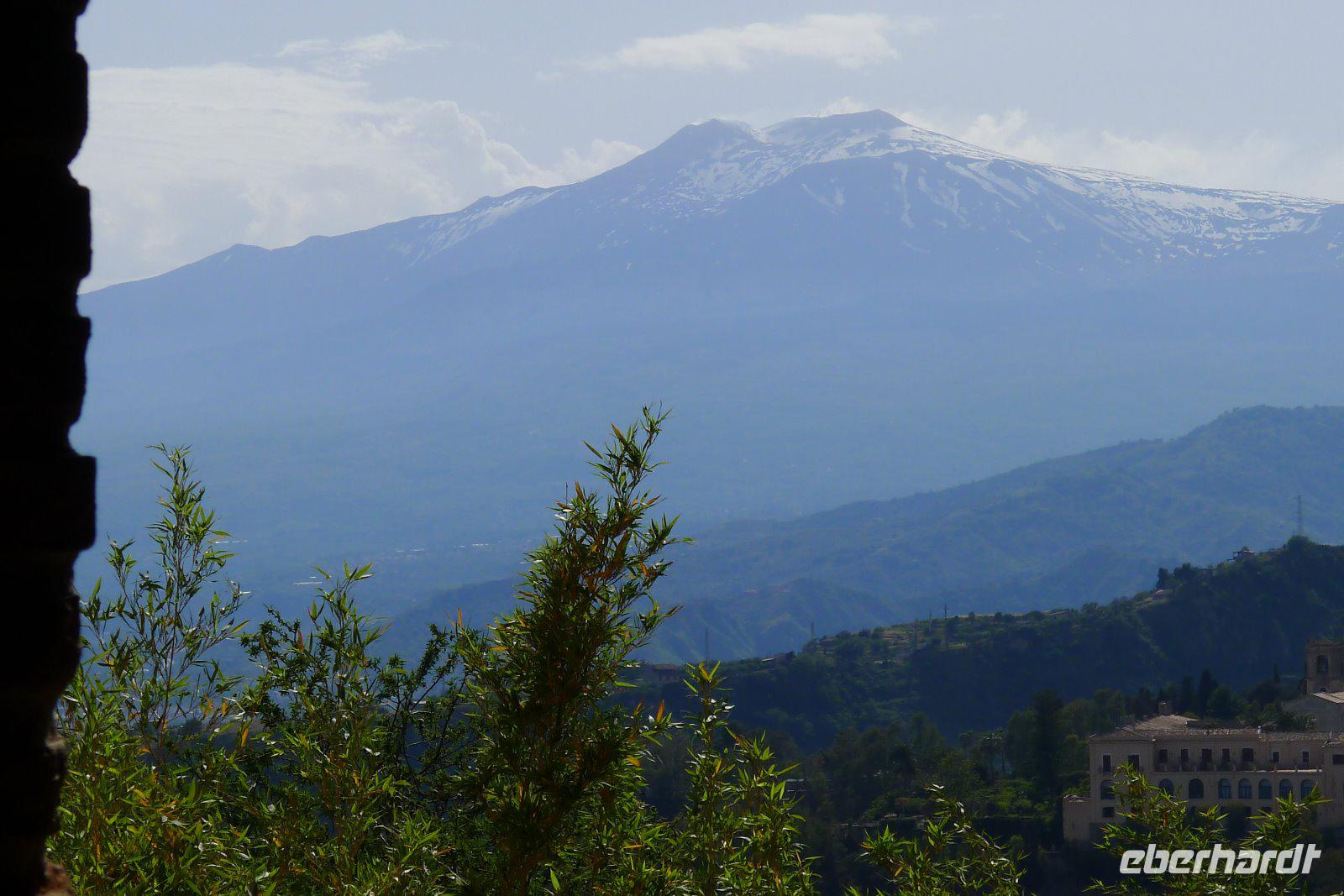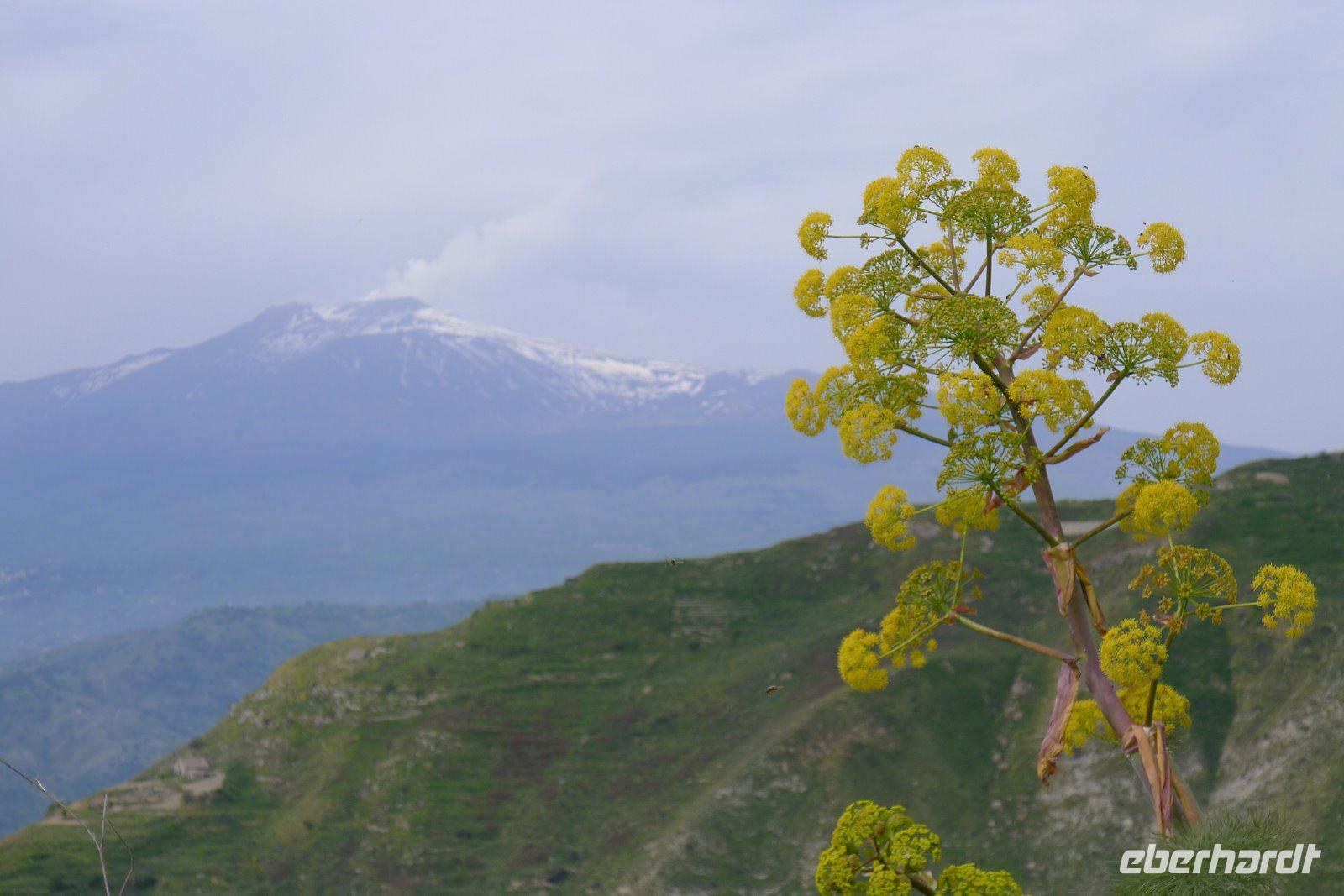 Ausgeschlafen und voller Tatendrang fanden wir uns nach dem Frühstück an der Rezeption ein, wo wir uns zusammen Marcello und dem Busfahrer Francesco auf den Weg nach Castelmola machten. Schon die Fahrt war ein Erlebnis, denn es ging immer höher hinauf bis wir schließlich hoch über dem Meer in Castelmola angekommen waren. Und dann ging es auch schon los mit unserer ersten Wanderung. Ein herrlicher Tag, angenehme Temperaturen und wir erklommen die Höhen. Für den etwas anstrengende Anstieg wurden wir mit atemberaubenden Ausblicken belohnt und auch mit einer großen Vielfalt an Blumen und verschiedenen Gewächsen, über die uns Marcello gerne aufklärte. Von ihm erfuhren wir auch, was es mit dem echten und dem falschen Fenchel auf sich hatte und wie man die beiden voneinander unterscheiden kann. Inmitten von Wiesen und üppigem Grün führte unser Weg stetig bergauf. Oben angekommen gönnten wir uns eine Pause, allerdings nur eine kurze, denn der Himmel hatte sich bedrohlich zugezogen und wir wollten nicht schon am ersten Tag nass werden. Bis wir zurück in Castelmola waren, hatten sich die grauen Wolken bereits wieder verzogen und wir spazierten durch den Ort zu ‚unserem' Lokal mitten in der verwinkelten Altstadt. Auf einer Terrasse mit Blick hinunter zum Dorfplatz verbrachten wir unsere Mittagspause und nach unserer Wanderung hatte sich auch bei den meisten etwas Hunger eingestellt. Der Nachmittag war Taormina vorbehalten. Das griechische Theater, der quirlige Corso Umberto mit seinen vielen Geschäften, Cafés und Eisdielen, ein strahlend blauer Himmel, im Hintergrund die schneebedeckten Gipfel des Ätna - was will man mehr? Nach einem gemeinsamen Rundgang durch das antike Theater gab es noch Freizeit für individuelle Unternehmungen und alle schwärmten aus. Ein echt italienisches Gelato musste es bei den meisten schon mindestens sein!