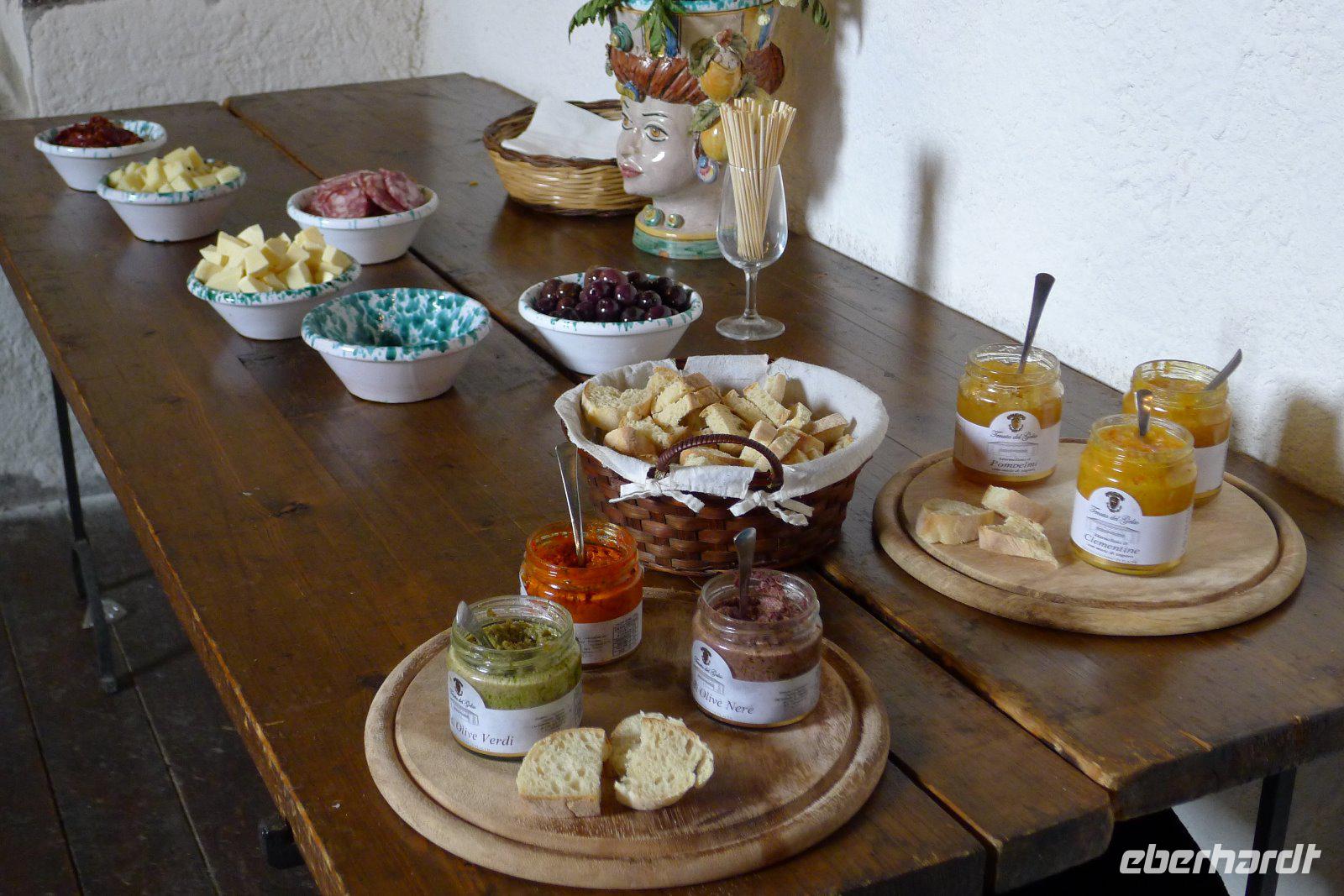 Die Köchin, so eine richtige italienische ‚mamma' wie man sie sich vorstellt, hat ihr Bestes gegeben und uns mit sehr schmackhaften und typisch sizilianischen Gerichten verwöhnt. Dazu ein Glas des hiesigen Weines und schon waren die düsteren Wetterprognosen vergessen - jedenfalls in diesem Moment!