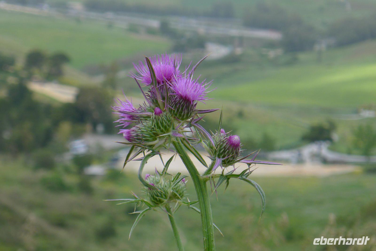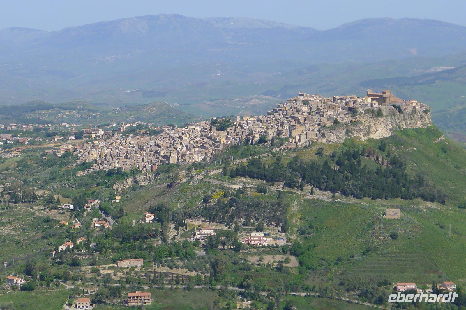 Früh machten wir uns auf den Weg von Siracusa in Richtung Enna. Von Catania ging es auf der Autobahn quer durch die Insel. Und wieder einmal stellten wir fest, was für eine schöne Reisezeit der Frühling ist. Grüne Hügel soweit das Auge reichte und Wiesen, übersäht mit blühenden Frühlingsblumen. Die weiten Zitrusplantagen ließen wir langsam hinter uns. Das Landschaftsbild änderte sich. Nun dominierten Olivenbäume und Getreidefelder. Schon von Weitem erblickten wir Enna. Hoch oben auf ca. 1000 Metern thronte das Städtchen auf einem Felsen. Die Unterstadt, Enna bassa, interessierte uns nicht so sehr. Wir wollten hoch hinauf, dorthin, wo das Castello auf dem höchsten Punkt die Stadt überragte. Eine atemberaubende Aussicht in alle Himmelsrichtungen ließ uns das Herz aufgehen. Selbst den Ätna konnten wir nochmals erblicken. Es sollte der letzte Blick auf seinen schneebedeckten Gipfel sein.