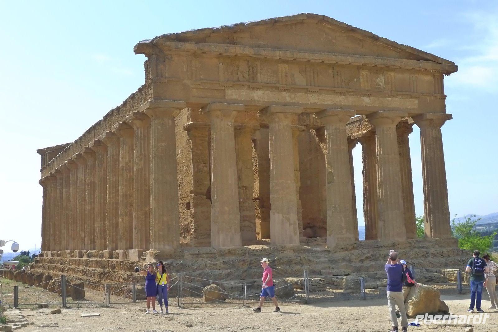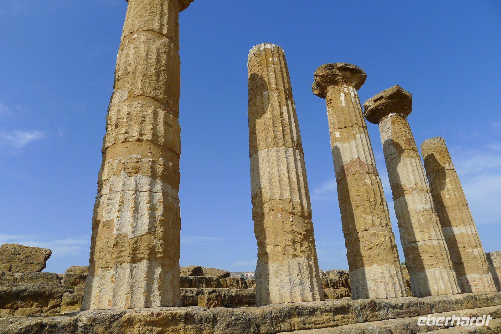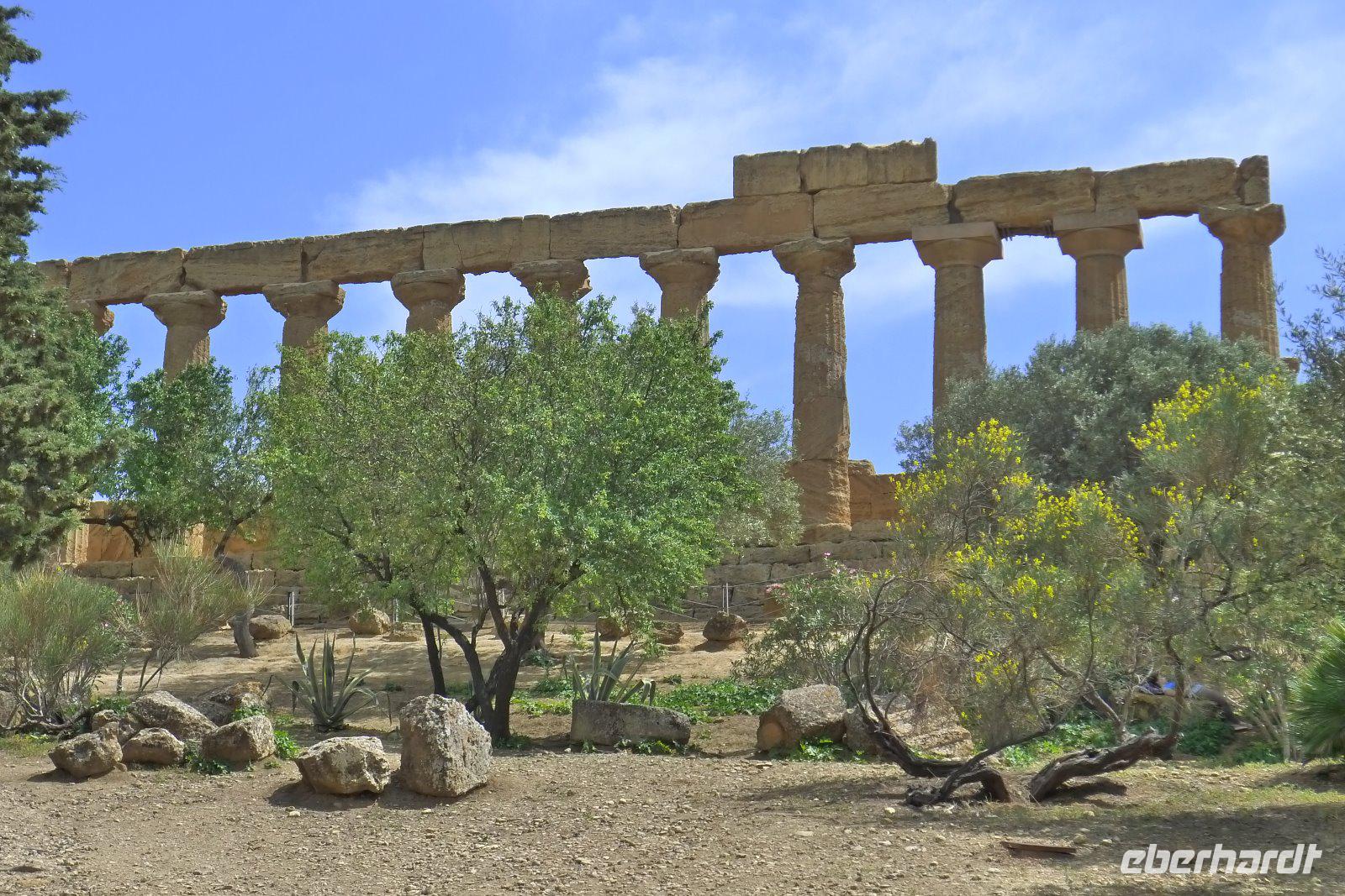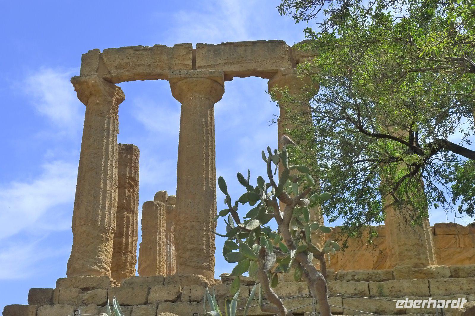 Und weiter ging die Fahrt nach Süden. Es stand ja noch einer der großen Höhepunkte der Reise auf dem Programm, ein Besuch des ‚Valle dei Templi', des Tempeltales, in Agrigento. Es überraschte uns immer wieder wie schnell sich die Landschaft änderte. Welch eine Vielfalt! Und dann - das Valle dei Templi, das Tempeltal, tat sich vor unseren Augen auf! Und die temperamentvolle Liliana stieg in unseren Bus ein. Wir begannen unsere Führung nämlich beim höchst gelegenen Tempel, um dann entlang der Prozessionsstraße zurück in Richtung Bus zu spazieren.