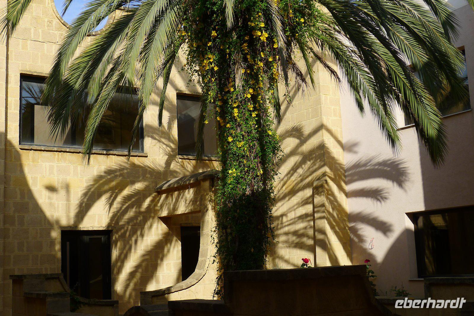 Ein interessanter und kurzweiliger Nachmittag, an dem wir viel über die Griechen und ihre Tempel lernten. Ein Thema vertieften wir ganz besonders, nämlich das Thema der ‚Anschwellung' der dorischen Säulen und der damit verbundenen optischen Verstärkung der Verjüngung der Säulen. Oh, das klingt ja schon ziemlich kompliziert, nicht wahr? Fast wie eine wissenschaftliche Abhandlung.Liebe Gäste, Sie erinnern sich doch sicher noch daran oder? Wir haben die arme Liliana damit fast zur Verzweiflung gebracht, aber wenn man es eben ganz genau wissen will.........Liliana hat sich die größte Mühe gegeben, uns zu erläutern, was es damit auf sich hat, aber einige besonders Wissbegierige haben nicht locker gelassen. So hat die arme Liliana schließlich zum ‚letzten' Mittel gegriffen. Sie meinte, dass es genauso wie bei einem Männerbauch sei. Das, was über der ‚Anschwellung' des Bauches liegt, also in Richtung Kopf, das erscheine unserem Auge ‚schlanker'. Und genauso sei es eben auch bei den Säulen. Alles klar? Ich muss jetzt noch schmunzeln, wenn ich daran denke.Gegen Abend erwartete uns eine geschmackvolle Hotelanlage, dekoriert mit vielen Grünpflanzen. Einige von uns erfrischten sich nach einem sommerlich heißen Tag noch im Swimmingpool. Beim Abendessen ging es etwas laut zu und die Verständigung war nicht ganz einfach, da einige Gruppen im Hotel zu Gast waren und sich in ihren jeweiligen Sprachen lauthals unterhielten. Wir konnten da nicht so recht mithalten. Aber wir nahmen es mit Humor! Buona notte und sogni d'oro, gute Nacht und süße Träume.