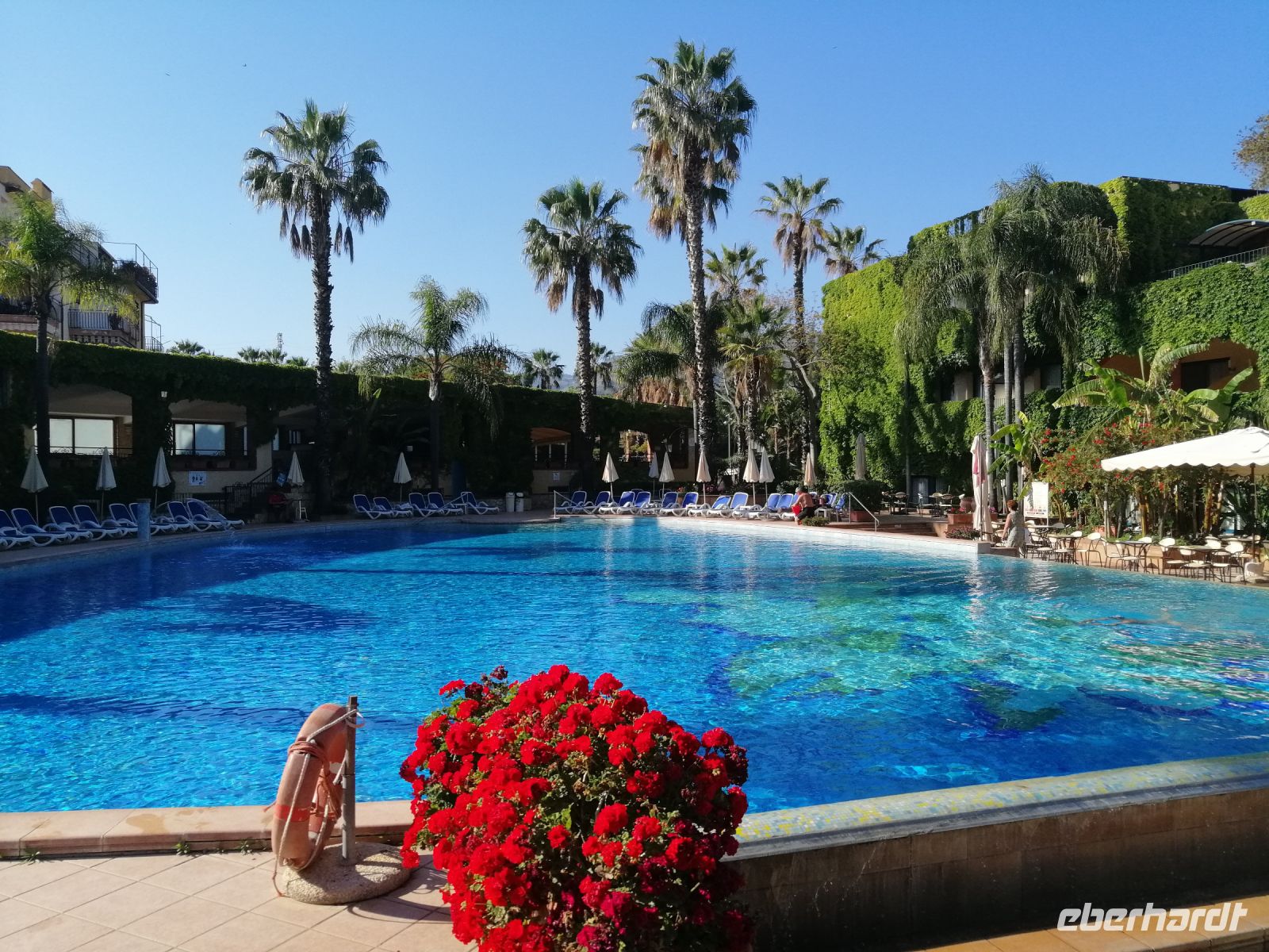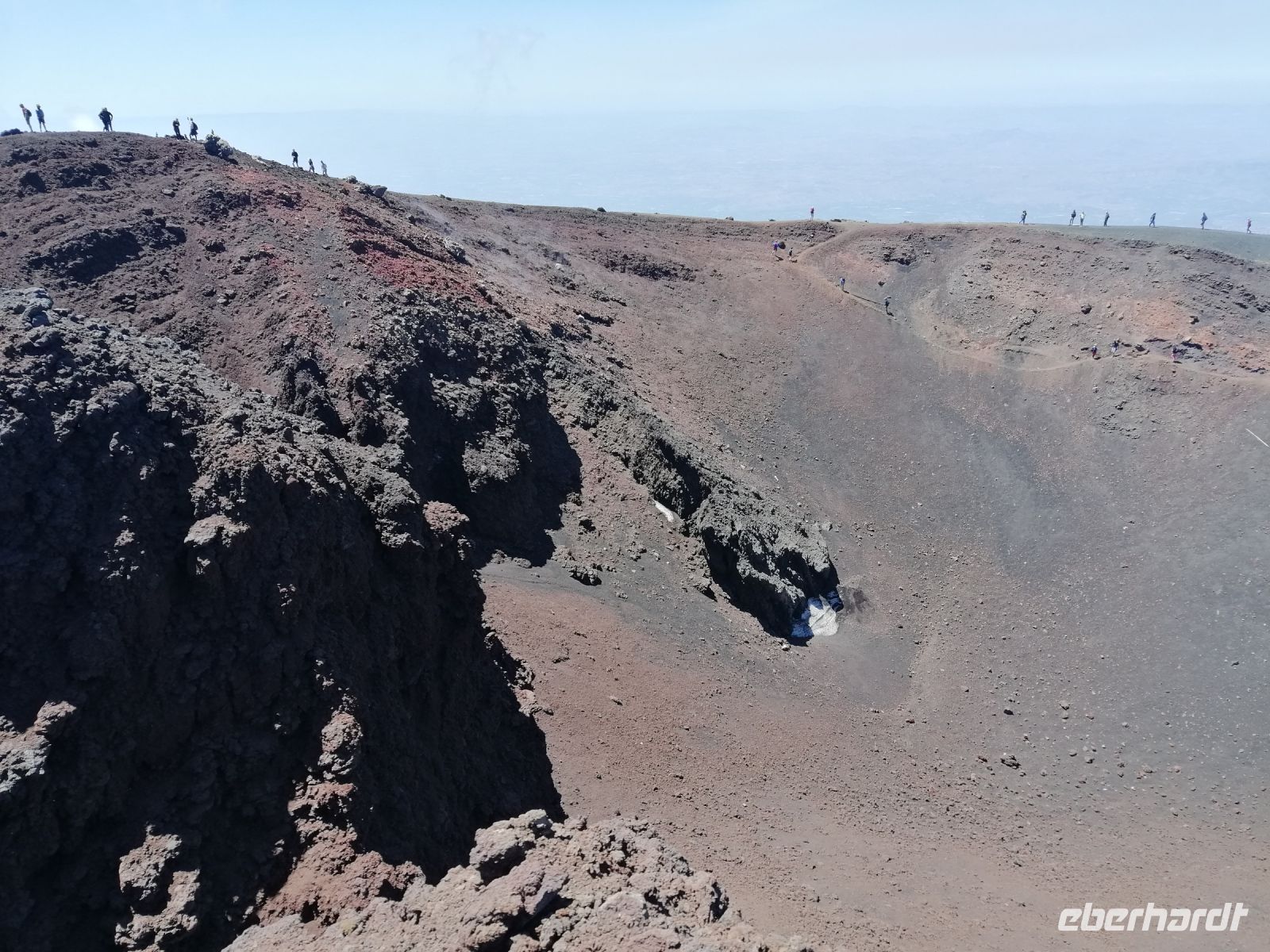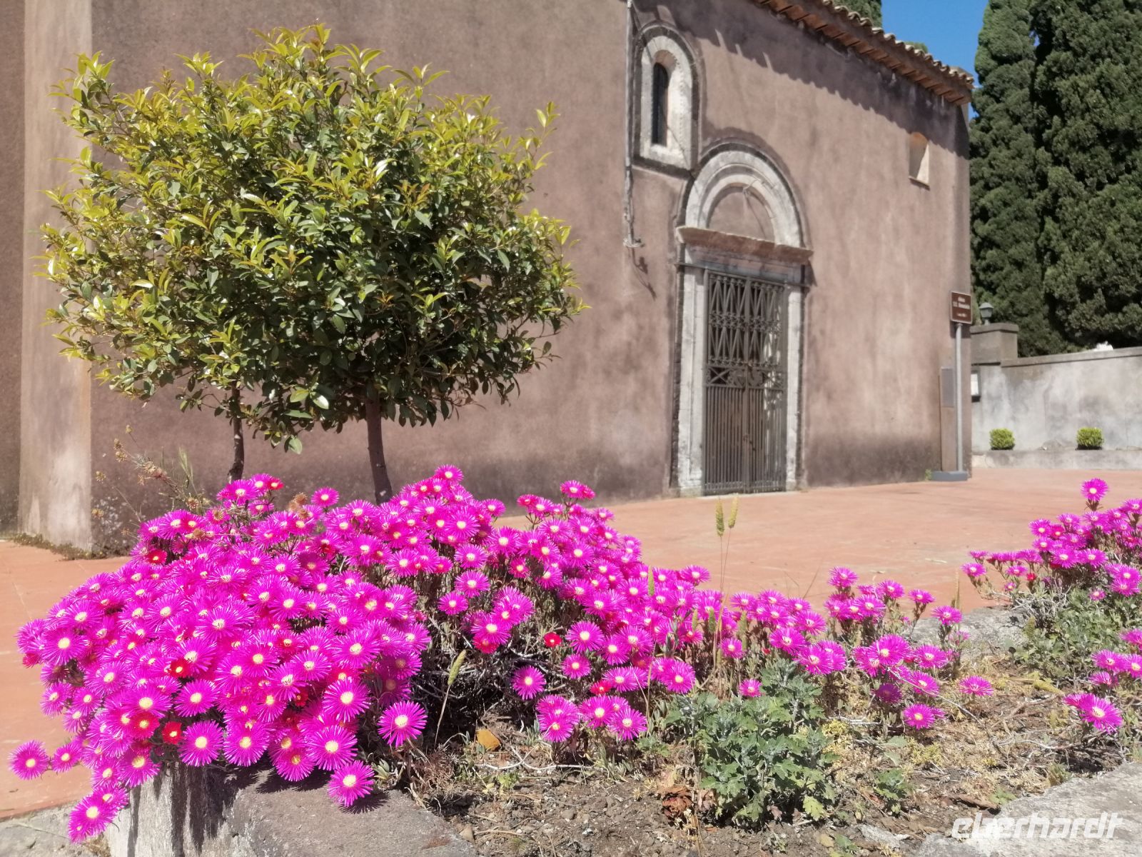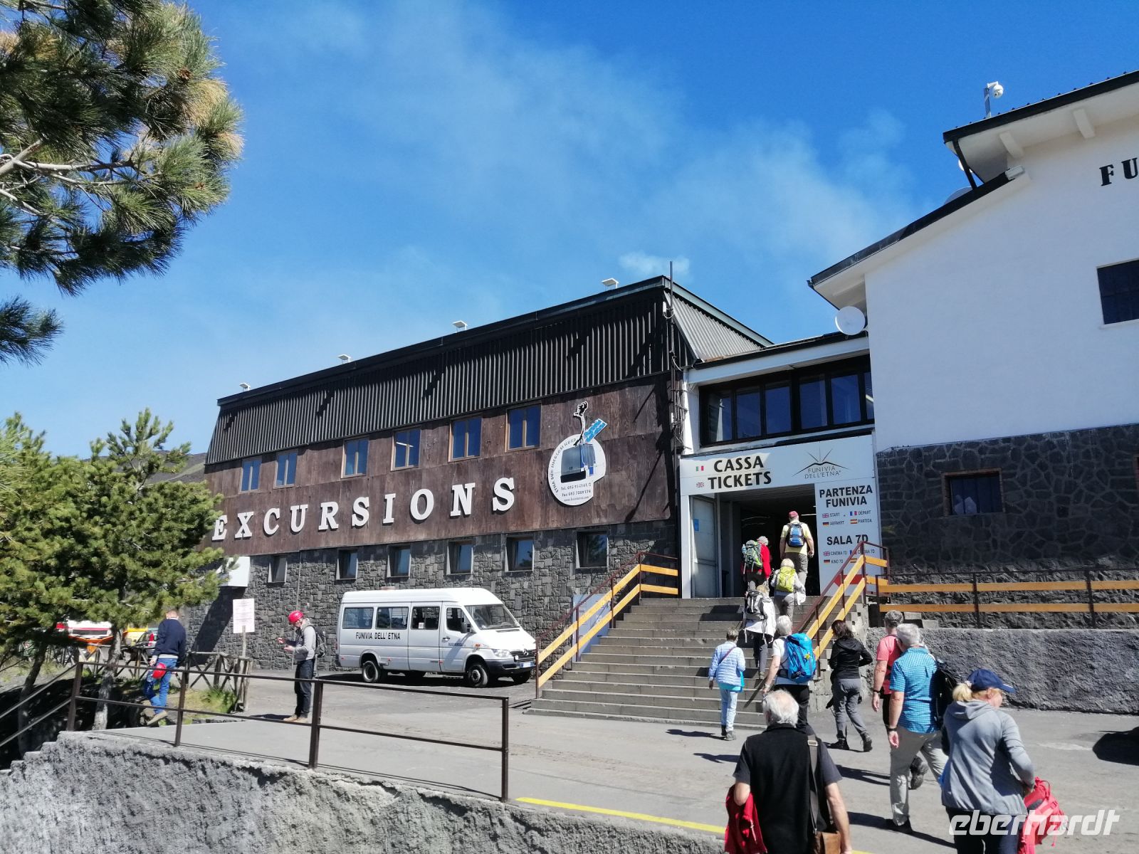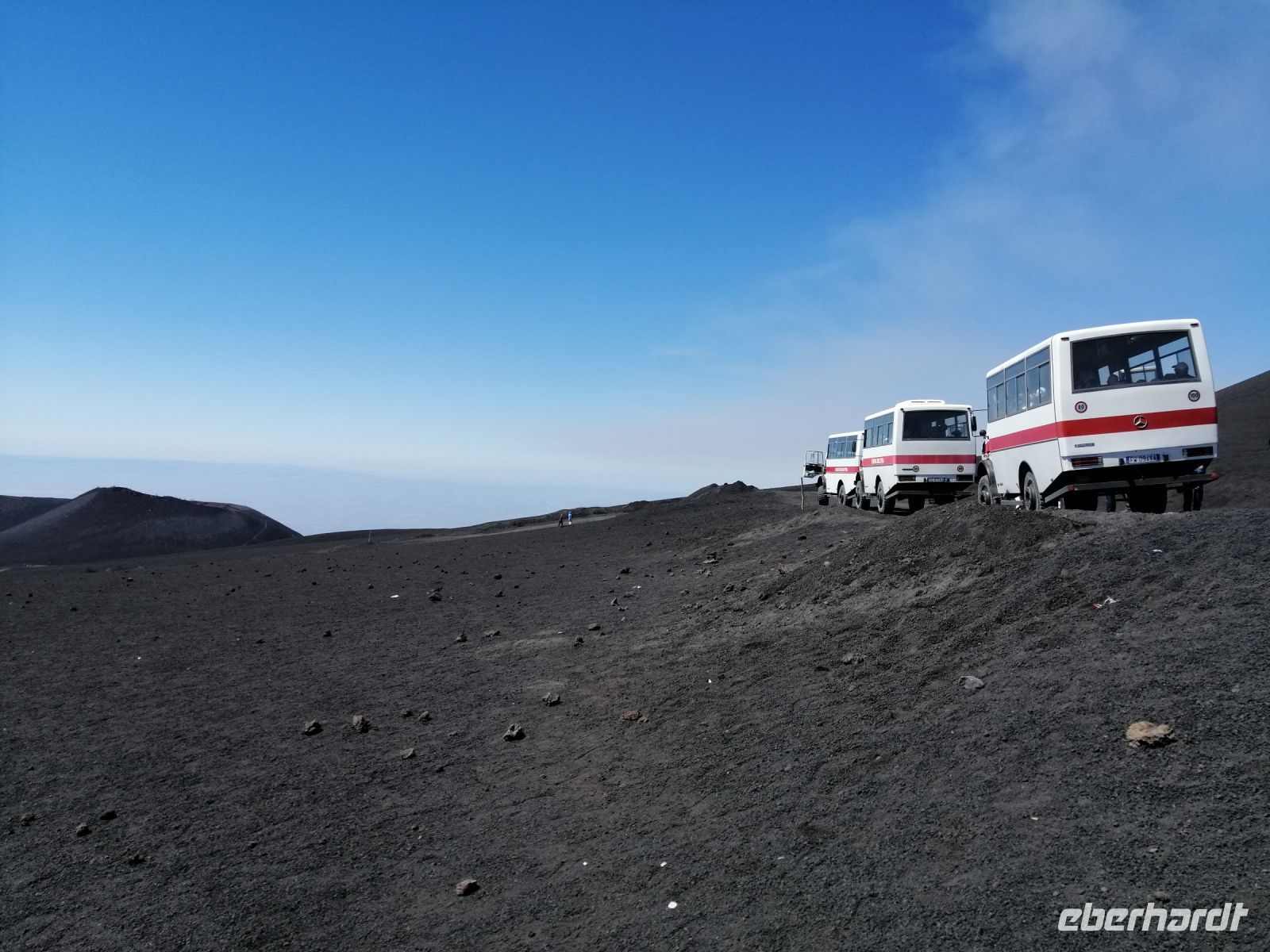 Heute erwartete uns ein sehr spannendes und intensives Programm, deshalb starteten wir eine halbe Stunde eher los als gestern! Zuerst fuhren wir mit unserem neuen Busfahrer Ignazio zum Vulkan Ätna! Auf der Serpentinstrasse zu Ätna machten wir einen kurzen Stopp und bewunderten den Eingang in einen alten Lava-Tunnel von Ätna! Unterwegs, erzählte uns Vincenzo über den großen Vulkanausbruch von 1669, der damals sehr viel Zertörung einrichtete. An der Seilbahnstation angekommen, fuhren wir damit auf die Höhe von 2.504 m hoch. Hier stiegen wir in einen Geländebus um und fuhren bis ca. 2.900 m hoch, um Ätna noch näher zu sein. Der ganze Hang war inzwischen sehr gut von Touristen besucht, die entweder mit den Geländebussen oder zu Fuß unterwegs waren, was bei dem fantastischen Wetter keine Überraschung war. Lokale Guides erklärten den Touristen an bestimmten Sammelstellen Geologie und Geschichte von Ätna. Da Ätna vor wenigen Tagen wieder etwas aktiver geworden ist, hörten wir immer wieder Eruptionen: gewaltiges Naturschauspiel. Als wir zum Nebenkrater aufgestiegen sind, konnten wir richtig in die "Chemie" eines Vulkans eintauchen: es brodelte ringsrum aus Fumarolen und roch nach Schwefel! Mit vielen Eindrücken und inzwischen ein bisschen Hunger, sind wir mit der Seilbahn zum Parkplatz abgestiegen. Als nächster Programmpunkt für heute stand die Weinverkostung. In einer gemütlichen kleinen Weinwirtschaft in Viagrande wurden wir schon erwartet. Die sehr nette Hausherrin begeisterte uns mit drei verschiedenen Weinsorten (Etna Rosato, Palmento Carricante, Etna Roso) aus der eigenen Produktion. Außerdem wurden wir mit verschiedenen hausgemachten kulinarischen Spezialitäten verwöhnt: Pizza, Käse und Salami, Oliven mit getrockneten Tomaten, Olivenbrot und dazu leckere Aufstriche und Marmelade! Selbstverständlich kauften einige Reisegäste Wein als Geschenck mit nach Hause. Nach der Weinverkostung fuhren wir dann zur Alcantara-Schlucht weiter. Der Abstieg in die Schlucht ging zwar über viele Stufen, daurte aber nicht lange. Der Wasserstand war nicht hoch, deshalb konnten wir mit den Füßes in den Fluß steigen und einen kleinen "Spaziergang" durch die Schlucht machen. Auch hier, in der Alcantara-Schlucht, spürten wir die Kraft und die Fanzination der Natur ähnlich wie auf Ätna ganz deutlich! Im Hotel angekommen, konnten wir uns entwerder an der Bar oder im Pool von einem erlebnisreichen Tag bis zum Abendessen etwas ausruhen. Morgen reisen wir durch Sizilien weiter!