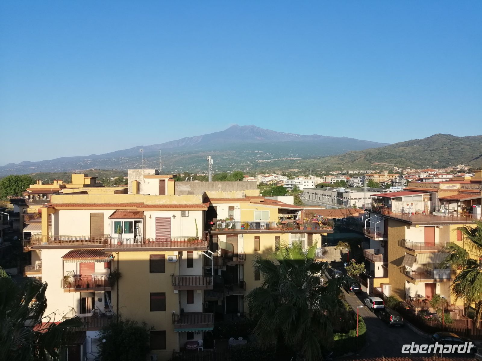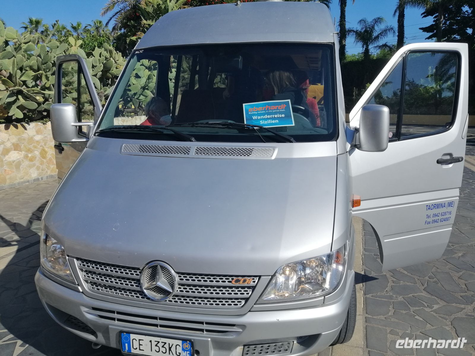 Wie so oft, begann auch diese Reise am Dresdener Flughafen: heute allerdings sehr zeitig. Unsere Reisegruppe ist fast vollständig, nur vier Reisegäste reisten von anderen Flughäfen an. Mit einer Zwischenlandung und Umstieg in München, kammen wir ohne Probleme in Catania an. Am Flughafen wurden wir von unserem lokalen Reiseleiter Vincenzo herzlich in Empfang genommen und fuhren gemeinsam nach Giardini Naxos in unser Hotel. Unterwegs erzählte uns Vincenzo über den aktuellen Ätna-Ausbruch und zeigte die große Vulkanwolke aus dem Bus, an der wir gerade vorbei fuhren. Aber auch Geologie und Pflanzenwelt beleuchtete er während der Busfahrt. Im Hotel angekommen, konnten wir uns zuerstmal nach der langen Anreise ausruhen und trafen uns dann abends auch mit den anderen Reisegästen zum gemeinsamen Abendessen. Nach dem Essen gab es eine gemütliche Vorstellungsrunde bei einem Glas Prosecco und Einstimmung auf die bervorstehende Wanderreise.