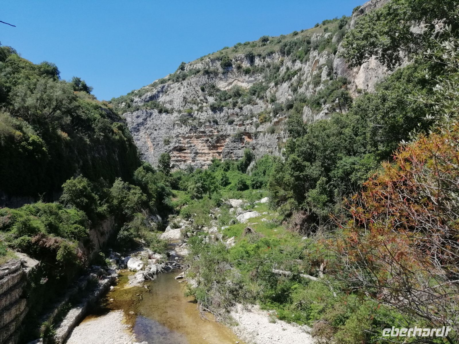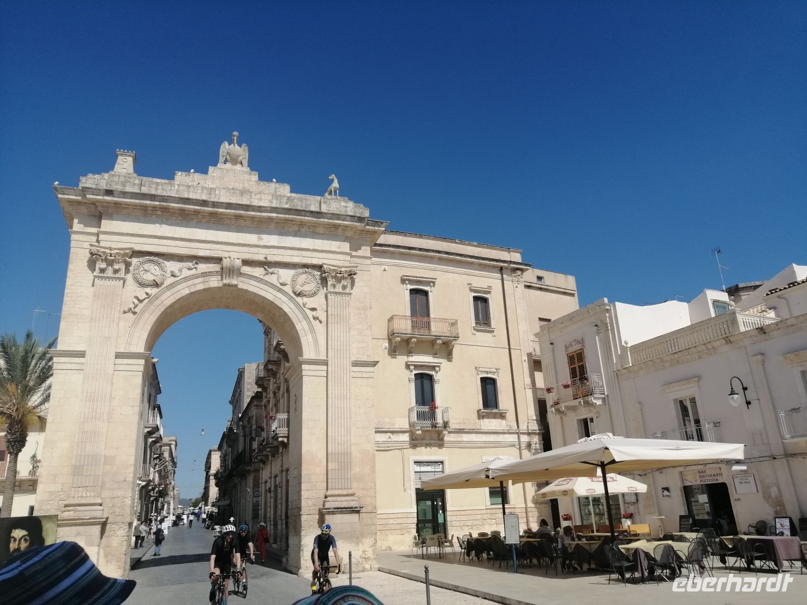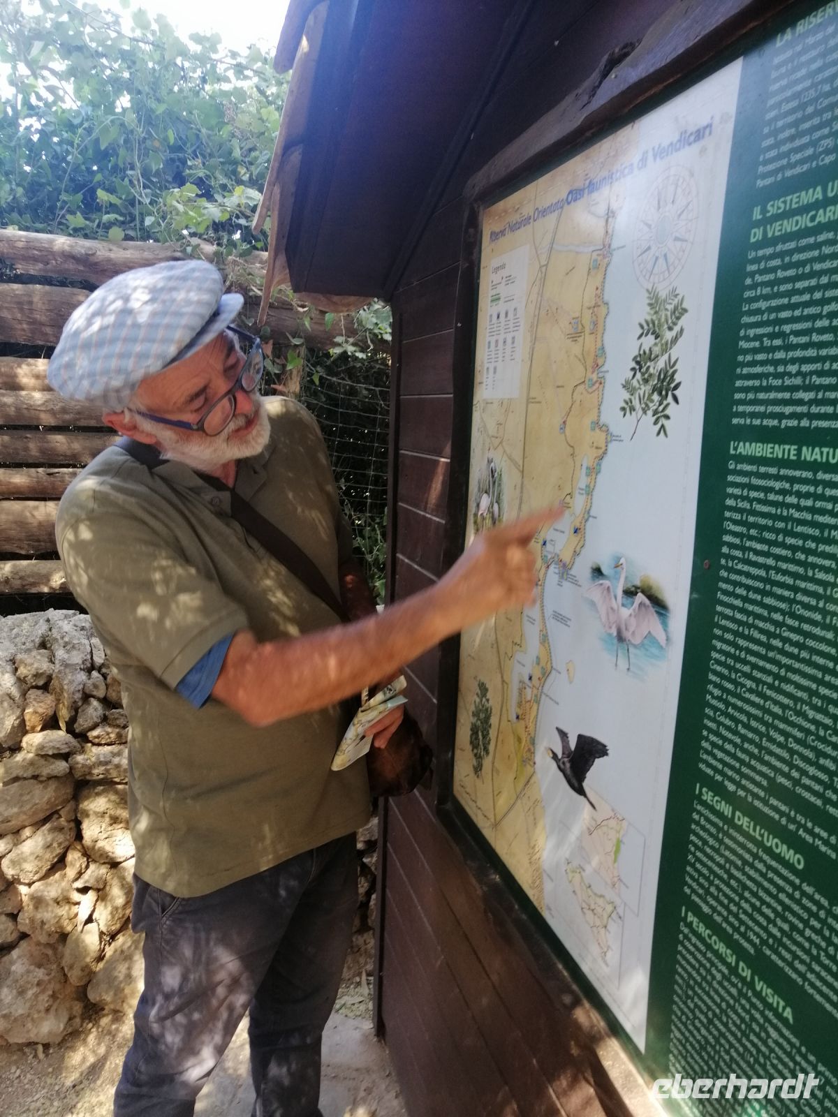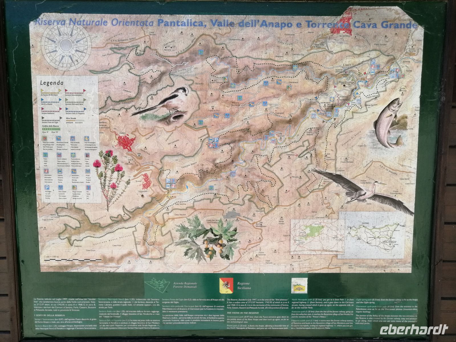 Nach dem Früstück und Auschecken aus dem Hotel, fuhr uns Ignazio nach Sortino, eine Kleinstadt auf der Hochebene von Pantálica. In einem Lebensmittelgeschäft kaufte ich mit Vincenzo für unseren Picknick heute typisches italienisches Essen ein und wir fuhren zum Startpunkt der heutigen Wanderung. Unsere Wanderung verlief entlang des Anapo-Flußes, auf einer alten Bahnstrecke mit vielen Tunneln und Brücken, die Mitte der 50. Jahre eingestellt wurde. Das es heute sehr heiß wurde, merkten wir, als wir aus dem schattigen Flußtal zum "Königlichen Palace" auf die Hochebene bergauf aufsteigen mussten. Nachdem Vincenzo uns mit der Geschichte der Nekropole (Höhlengräber aus dem 13. Jahrhundert) vertraut gemacht hat, gab es ein leckeres Picknick im Schatten der Bäume. Anschließend wanderten wir den geschichtprächtigen und naturbelassenen Wanderweg weiter und genossen nicht nur die tollen Aussichten, sondern auch die blühende Vegetation. Zum vereinbarten Treffepunkt kam Ignazio etwas verspätet, hat uns als Entschuldigung aber unterwegs und relativ spontan ein kaltes Bier ausgegeben, was seine Schuld erheblich reduziert hatte:-) Nach der Wanderung fuhren wir nach Syrakus zum archäologischen Park Neapolis. Seine Führung durch den archäologischen Park mit uns, begann Vincenzo mit der großen, alten Feige, die sich wie in einem Märchenwald auf ihre eigene Äste gestützt hat. Danach gingen wir in den hinteren Teil des Parks und besichtigten die Grotticelle Necropolis und das angebliche Grab von Archimedes. In der Nekropole befinden sich Gräber aus der griechischen und römischen Zeit, von denen nur noch die römischen kaiserlichen Kammergräber sichtbar sind. Unter diesen Kammergräbern befindet sich das angebliche "Grab des Archimedes". Wir liefen an einem Steinbruch vorbei, aus dem die Baumaterialien für das griechische Theater gewonnen wurden. Es wurden Höhlen gegraben, um den gut bearbeitbaren Kalkstein herauszuschneiden. Anschließend besuchten wir mit Vincenzo die Nymphengrotte. Diese befand sich sich im höchsten Teils des kleinen Bergreliefs, auf einer Terrasse, die oberhalb des griechischen Theaters verläuft, mit dem Wasserfall, der durch das Aquädukt Galermi gespeist wurde. Im griechischen Theater wurde gerade geprobt: wir konnten kurz zuschauen. Das Teatro Greco von Syrakus stammt aus dem 5. Jh. vor Christus und war mit einem Durchmesser von knapp 140 m eines der größten griechischen Theater. Es befand sich günstig gelegen am Hang des Temenite-Hügels. Der größte Teil der 67 Zuschauerreihen war direkt aus dem Stein herausgehauen worden. Die Zuschauerblöcke waren in 9 Sektoren unterteilt. Und zum Schluß zeigte uns Vincenzo das römische Amphitheater. Es war eines der attraktivsten in römischer Zeit und ebenfalls größtenteils direkt in den Stein gehauen. Mit seinen 140 m Länge und 119 m Breite gehörte es zu den großen Amphitheatern. Es hatte zwei Zugänge und im Untergrund auch die Möglichkeit der Flutung, um zusätzlich zu Gladiatorenkämpfen und Tierkämpfen auch Seeschlachten austragen zu können. Glücklich und müde fuhren wir dann zu unserem neuen Landhotel, wo wir uns frisch machen konnten. Abends trafen wir uns zum 3. Gänge-Abendbrot und liesen den erlebnisreichen Tag bei einheimichen Weinen gemütlich ausklingen.
