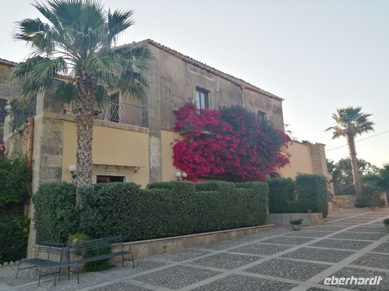 Heute durften wir uns länger ausruhen und starteten unsere Fahrt in die Stadt Noto eine halbe Stunde später als sonst. Ignazio fuhr uns bis zum Hauptplatz der Stadt und wir vereinbaren gleich die Abfahrtzeit, damit jeder seine Freizeit nach der Stadtführung besser planen konnte. Unsere Stadtführung begann Vincenzo direkt am Tor in die Altstadt und erklärte uns wofür die Figuren auf dem Stadttor symbolisch stehen. Der Hund symbolisiert die "Treue", der Turm steht für "Standhaftigkeit" und der Pelikan bezeichnet "Versorgung der Familie". Wir gingen weiter in die Stadt und Vincenzo erzählte uns über das Erdbeben von 1693, bei dem die Stadt komplett zestört wurde und alles wieder neu allerdings schon im Barokstill aufgebaut werden musste. Wir bewunderten außerdem die "schönsten Balkone Siziliens", zu denen Aufbau und Gestaltung Vincenzo uns wieder eine detaillierte Erklärung liefete. Nach der Stadtführung konnten wir in alle Ruhe die Altstadt weiter erkunden oder in einem Restaurant etwas Leckeres essen. Zum vereinbarten Zeitpunkt trafen wir uns wieder am Bus. Die Gruppe entschiedt sich vor der Küstenwanderung die Tageshitze im Landhotel abzuwarten und Ignazio fuhr uns zum Hotel zurück. Unterwegs kaufte ich noch etwas zum Picknicken ein. Das Hotelgelände wirkte wie eine Parkanlage und da entstand plötzlich die Idee unseren Picknick vorzuziehen und nicht unter der prallen Sonne am Strand, sondern hier im Schaten der Sträuche zusammen gemütlich zu picknicken. Nur eins hatten wir nicht berücksichtigt: die Hotelverwaltung hielt es für keine gute Idee, dass wir das selbstgebrachte Essen auf dem Hotelgelände speisen... Aber die Abhilfe kam promt: ein Gästepaar bat ihr Appartment mit ausreichend Platz an und wir konnten dort ungestört und in einer sehr lustigen Runde alle zusammen unseren Picknick geniessen:-) Danach ging es für die Mehrheit zum Ionischen Meer, nur zwei Gäste entschieden sich im Hotelpool zu bleiben. Ingazio fuhr uns ein Stückchen raus und wir wanderten entlang der Meeresküste bis zur wunderschöne Badebucht Calamosche. Unterwegs beobachteten wir unzählige Flamingos und andere Vogelarten von verschiedenen Beobachtungsstationen aus. Leider war die Badebucht für uns aufgrund der Flüchtlinge abgesperrt und wir konnten dort nicht ins Wasser. Vinzenco bereicherte unsere Wanderung durch seine Erzählungen über die Flora und Fauna der Region. Nach de Wanderung fuhren wir wieder ins Hotel und trafen uns abends zum 3. Gänge-Abendessen wieder zusammen.