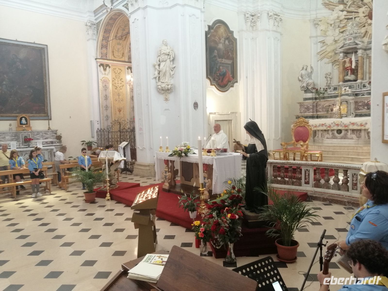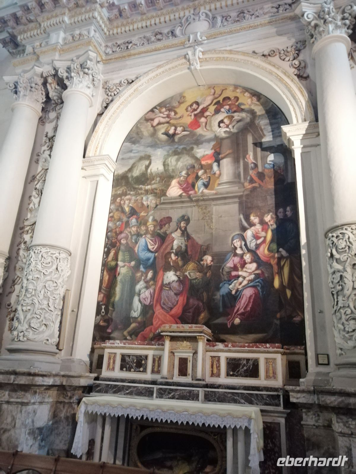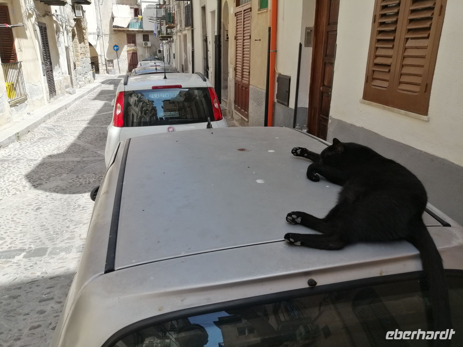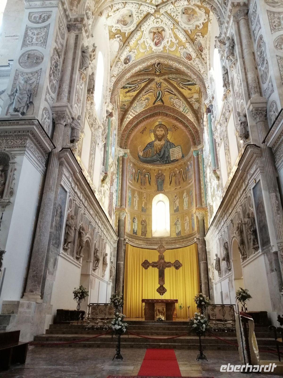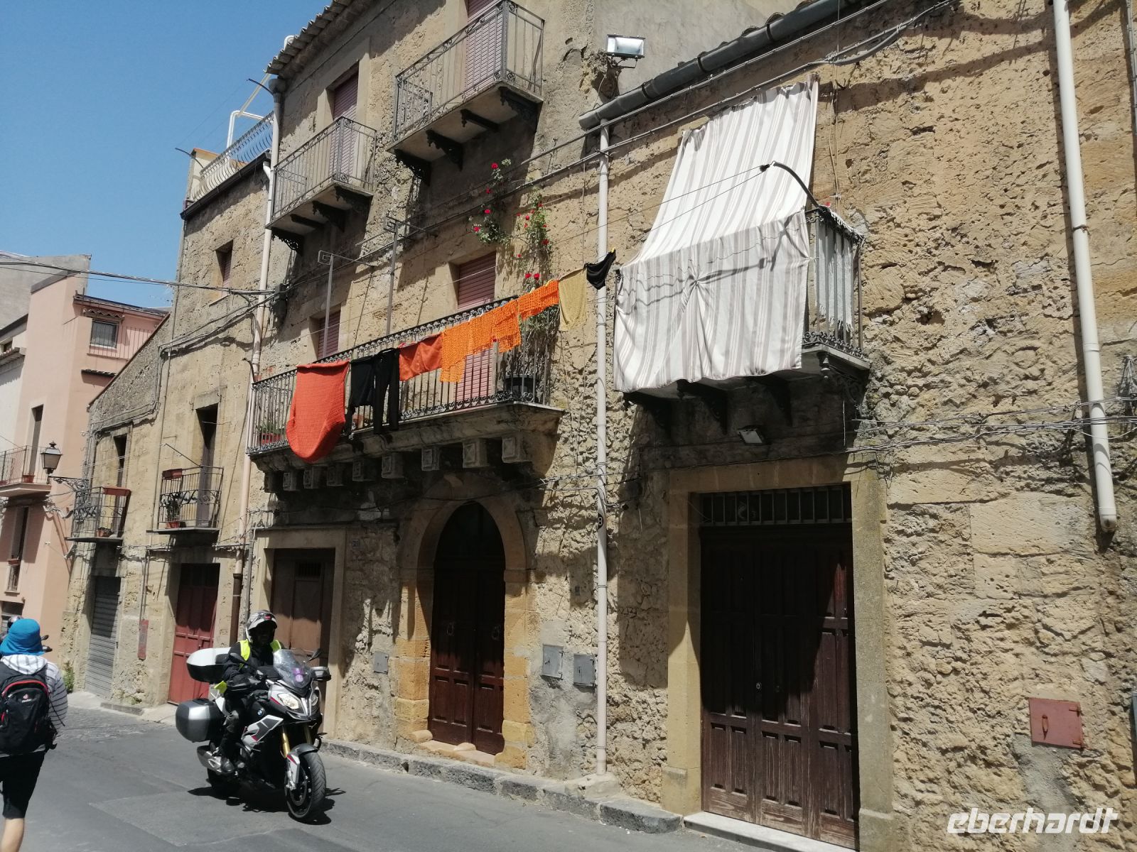 Nach dem Früstück und Ausschecken im Hotel fuhr uns unser neue Busfahrer Juseppe an die Nordküste Siziliens nach Cefalú. In Cefalú unternehmen wir einen Spaziergang durch die Altstadt und besichtigten anschließend den Normannen-Dom. Im Dom machte Vincenzo für uns eine Führung und erzählte uns eine Legende: Der normannische Dom wurde 1130 von Roger II gegründet, der einer Sage zufolge geschworen hatte, eine Kirche zu bauen, wenn er mit seiner Flotte auf dem Weg von Palermo aus heil aus einem Sturm zurückkehren würde. Er wurde an den Strand bei Cefalú ans Land gespült, wo der König wie versprochen den Grundstein dieses beeindruckenden Gebäudes legte. Es ist zweifelsohne eine der schönsten Kathedralen der Welt und ein perfektes Beispiel für den mediterranischen, romanischen Stil. Die Fassade mit den ein- und zweibögigen Fenstern wird von zwei Flankentürmen dominiert, die 1240 gebaut wurden. 1472 wurde ein dritter Säulengang hinzufügt. Die Kirche hat drei Schiffe und zwei Reihen mit Marmorsäulen, darauf ein Bogengang mit sieben Bögen. Die Holzdecke des Mittelschiffes ist bemalt und ein typisches Beispiel islamischer Kunst, das rechte Schiff enthält ein Taufbecken aus dem 12. Jahrhundert. Die Apsis, das Kreuzgewölbe und die angrenzenden Wände sind mit Goldmosaiken dekoriert, deren Hauptmotiv der Schöpfer (Christus Pantocrator) ist. Unter ihm sitzen die Jungfrau Maria, die Apostel sowie einige Engel. Nach der Dom-Besichtigung stiegen wir auf den Berg Rocca di Cefalú hoch und genossen die fabelhafte Aussicht Richtung Tyrrhenische Meer. Nach dem Abstieg gab es Freizeit, die zum Baden, Mittag essen, Kaffee trinken oder Eis essen oder alles zusammen genutzt wurde. Am Nachmittag fuhr uns Juseppe nach Trapani ABER kurz nach Ortsausgang Cefalú gab es eine von mir sehr mühsam vorbereitete Übrraschung: ein kaltes Bier mit Blick auf Rocca di Cefalú:-)! Nach dem Abendessen in unserem neuen Hotel in Trapani unternahmen wir abends einen Spaziergang durch die Altstadt.