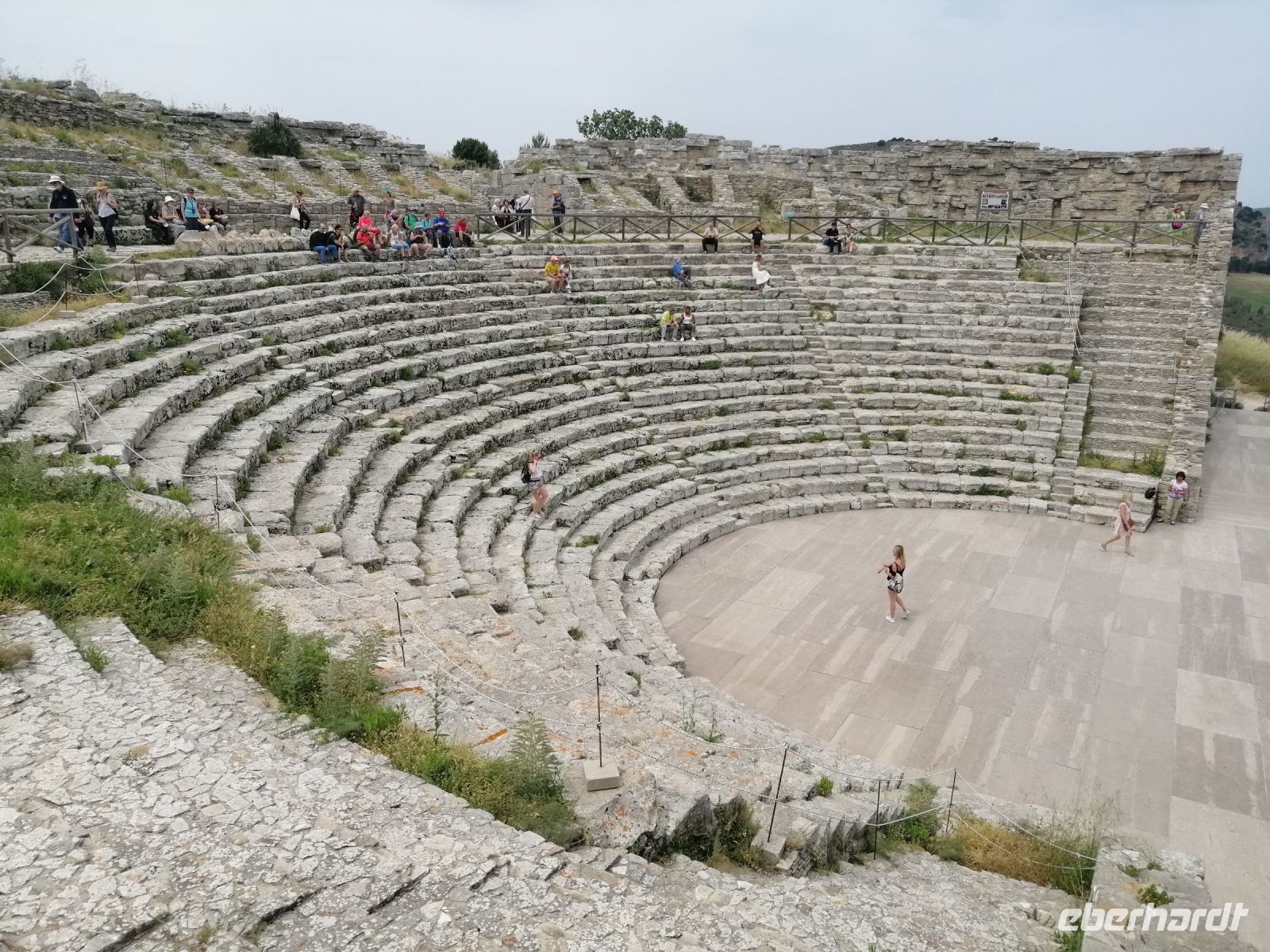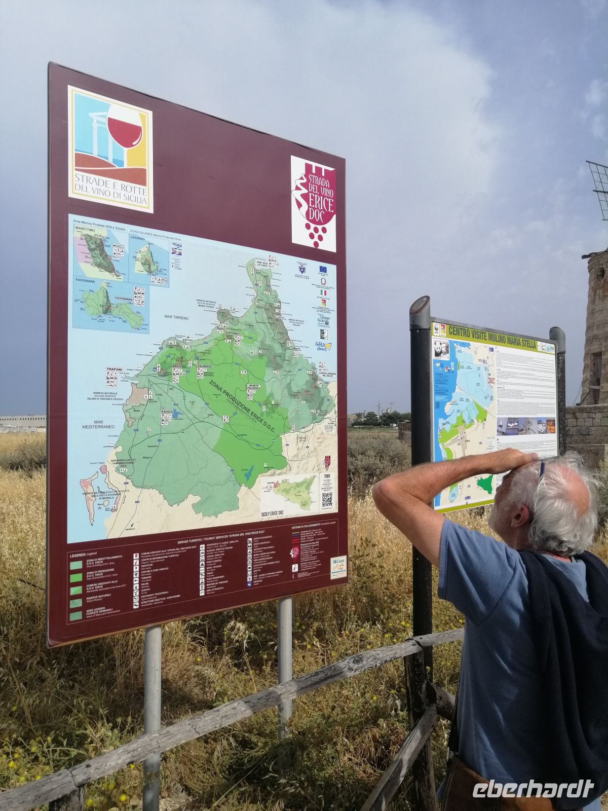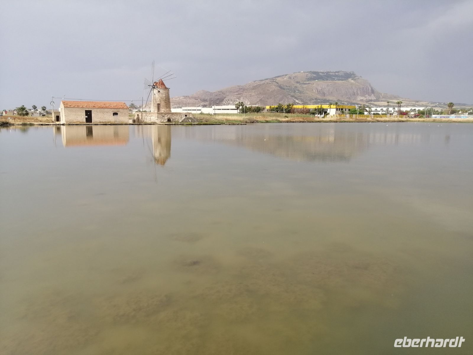 Nach dem Frühstück fuhr uns Juseppe nach Segesta. Dort besichtigten wir einen der besterhaltenen griechischen Tempel Siziliens und eines der schönsten antiken Amphitheater. Der Tempel wurde im 5.Jrh v.Chr. gebaut und hat die Form eines dorischen Perystils, mit 6 Säulen an den Fassaden und mit 14 an den langen Seiten. Er bedeckt eine Grundfläche von 61,15 x 26,25 m. Seine Stufen wurden nie vollendet. Wie überhaupt der gesamte Tempel nie vollendet wurde. Generell widerspricht er der üblichen griechischen Bauweise, wo mit der Cella begonnen wurde und der Säulengang dann drumherum errichtet wurde. In Segesta allerdings gibt keine Spuren einer Cella. Nach der Besichtigung des Tempels wanderten wir den fast zugewachsenen alten Wanderweg Berg hoch, zum Amphitheater. Durch seine Lage mit Blick auf eine Landschaft mit zum Meer hin abfallenden Hügeln kann man es wirklich als eines der schönsten antiken Theater bezeichnen. Es wurde teilweise über einer heiligen Grotte des Elymerkult gebaut. Der Eingang zur Grotte befindet sich unter dem Zuschauerraum. Das gesamte Theater ist von einer halbkreisförmigen Mauer umgeben. Wir stiegen wieder ab und gönnten uns ein Eis oder ein Glas (Plastebächer) Bier (aber VORSICHT: für 6 EUR!). Von Segesta aus fuhr uns Juseppe in die Antikestadt Erice, die auf dem gleichnamigen, rund 750 Meter hohen Berg Monte Erice thront. In Erice unternahmen wir zuerst einen Stadtrundgang. Vincenzo erzählte uns über die wichtigsten Sehenswürdigkeiten der Stadt. Erice selber ist urig, verwinkelt und einfach wunderschön. Die kleinen, engen Gassen, die ab und an recht steil sind, die kopfsteingepflasterten Marktplätze, die uralte Stadtmauer – diese Stadt verzaubert einen und man fühlt sich glatt um Jahrhunderte zurückversetzt. Nach der Stadtführung hatten wir ausreichend Freizeit, um die Stadt zu erkunden und sich kulinarisch verwöhnen zu lassen. Am späteren Nachmittag fuhren wir nach Trapani und besuchten noch die Salinen. Vincenzo erklärte uns die grobe Arbeitsabläuge der Salzgewinnung und übersetzte bei einem Salzhändler, der dirt seinen Verkaufsstand hatte. Anschließend fuhren wir mit dem Bus zum Hotel, verabschiedenet sich vom Juseppe und traffen uns zum gemeinsamen Abednessen. Nach dem Abendessen organiserte ich für unsere Gruppe ien separaten Raum und wir konnten uns bei einem Glas Prosecco unsere Wanderreise Revue passieren lassen, bedankten uns bei Vencenzo für seine tolle Reisebegleitung! Ihm ist es definitiv gelungen, ein Teil seiner Liebe zu Sizilien mit uns zu teilen, sodass wir etwas von seiner Heimat mit nach Hause nehmen können! Wir verabschiedeten uns auch von den Gästen, die morgen etwas später zum Flughafen nach Palermo fahren wollten.