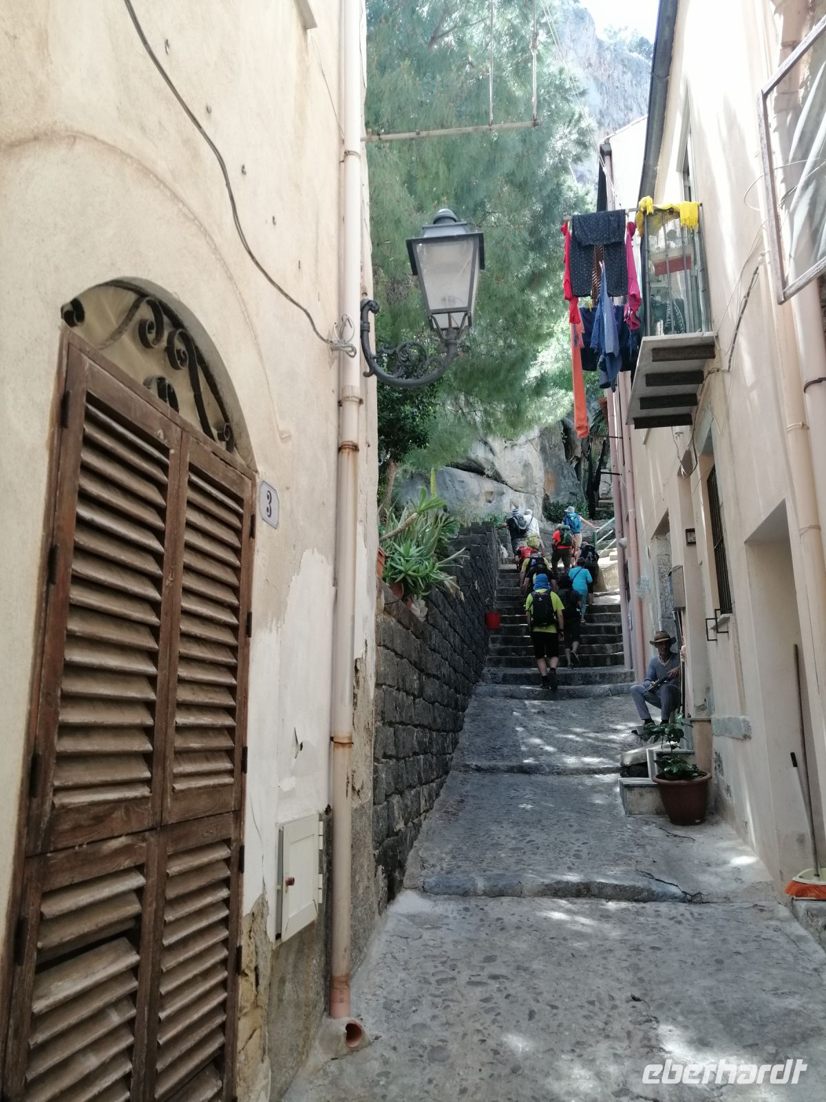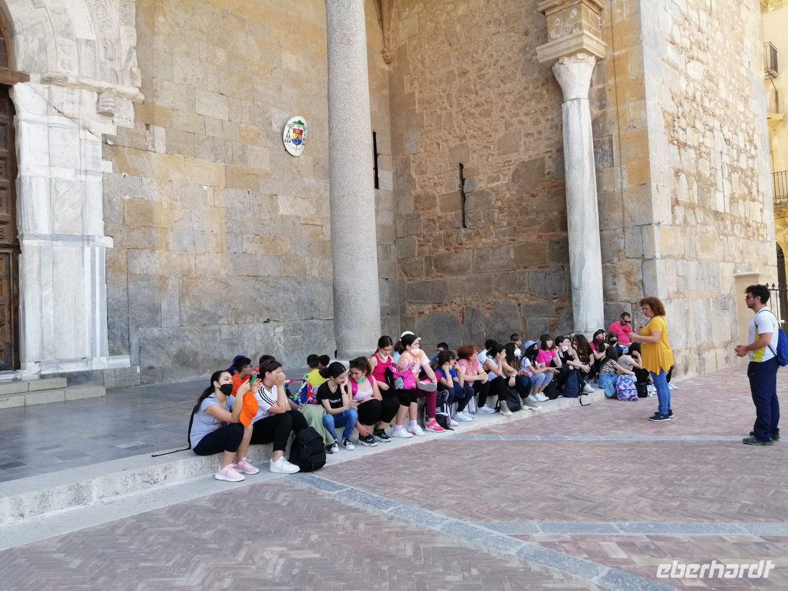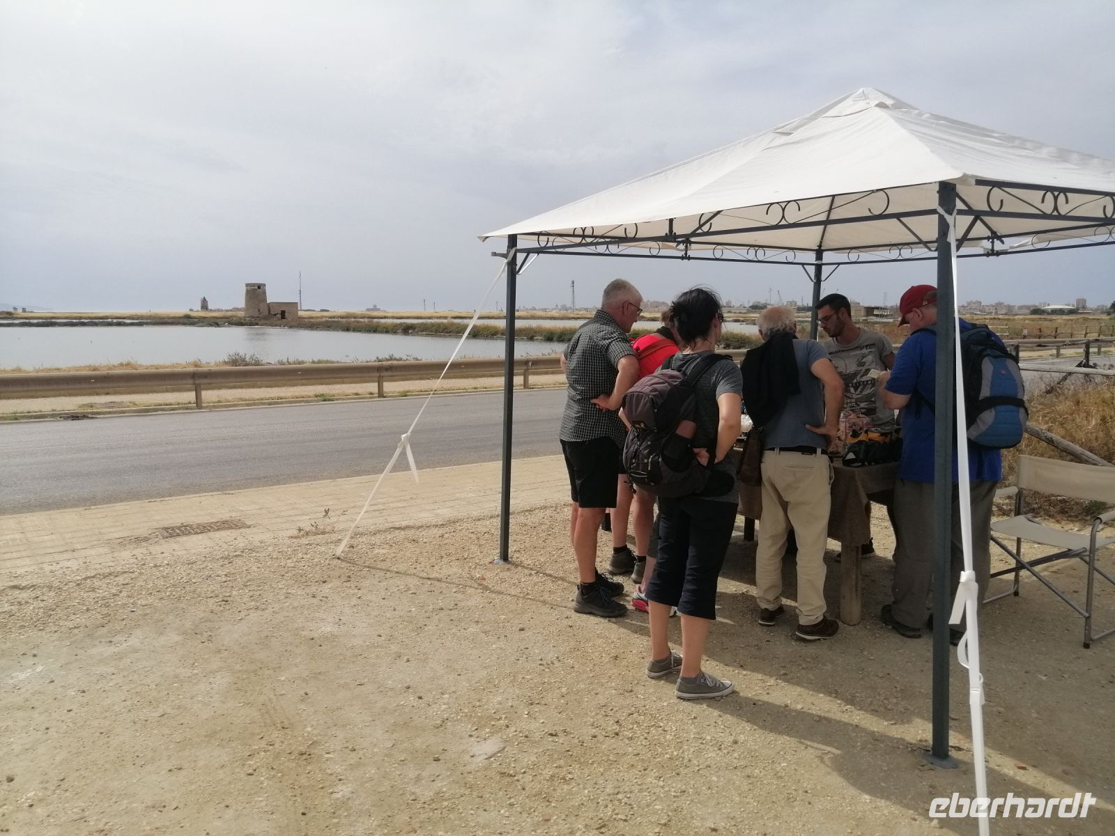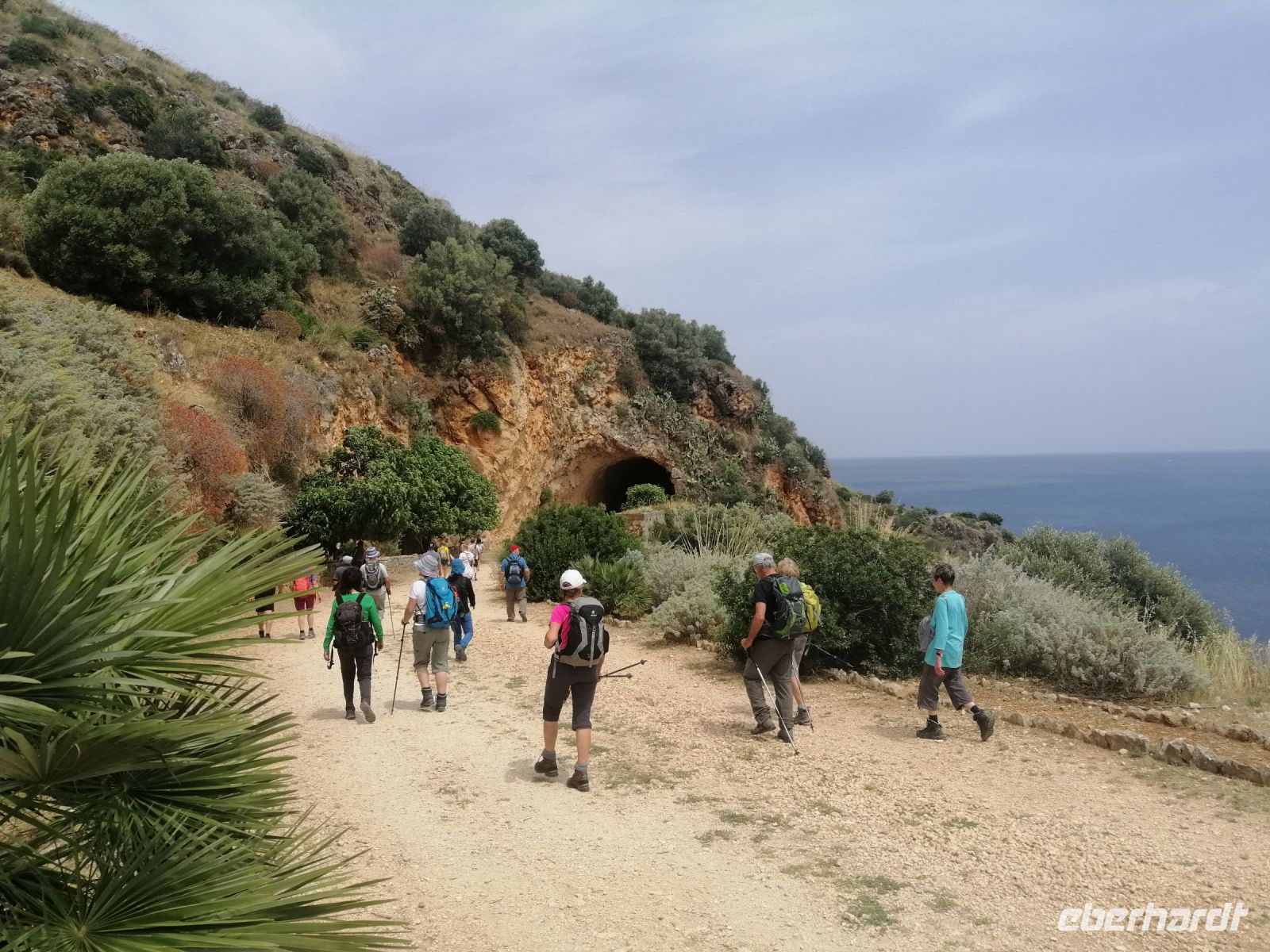 Heute starteten wir ganz entspannt und fuhren erst gegen 10 Uhr nach dem Frühstück zum Ausgangspunkt der Wanderung ins Naturschutzgebiet Zingaro. Wir haben Glück: trotz eines Brandes, wurde das Wandergebiert nicht abgesperrt und wir durften den unteren Küstenwanderweg nutzen. Nach einem kurzen Einkauf im Lebensmittelgeschäft starteten wir unsere Wanderung. Der Wanderweg ging gleich am Anfang durch einen Tunnel. Dieser in den Felsen geschlagene Tunnel sollte der Anfang einer Straße sein. Heute ist er das Symbol einer Bürgerbewegung, die 1980 in einem Protestmarsch, an dem 3000 Personen teilnahmen, ihren Höhepunkt erreicht hatte. Anschließend gingen wir den Küstenwanderweg lang, mit einem wunderschönen Blick Richtung Meer. Vincenzo erzählte uns immer wieder über die Pflanzen, die wir unterwegs trafen. In der Grotta Dell´Uzzo machten wir eine Trink- und Muschelsuchpause und stiegen anschließend zum Meer, um dort in einer wunderschönen Lagune eine längere Badepause zu machen. Nach der Badepause und dem Aufstieg zum Ausgang aus dem Naturschutzgebiert, holte uns Juseppe ab und fuhr uns nach Trapani zum Hotel. Abends genossen wir wieder die sizilianische Küche und gigngen abends gemeinsam durch die Altstadt spazieren.