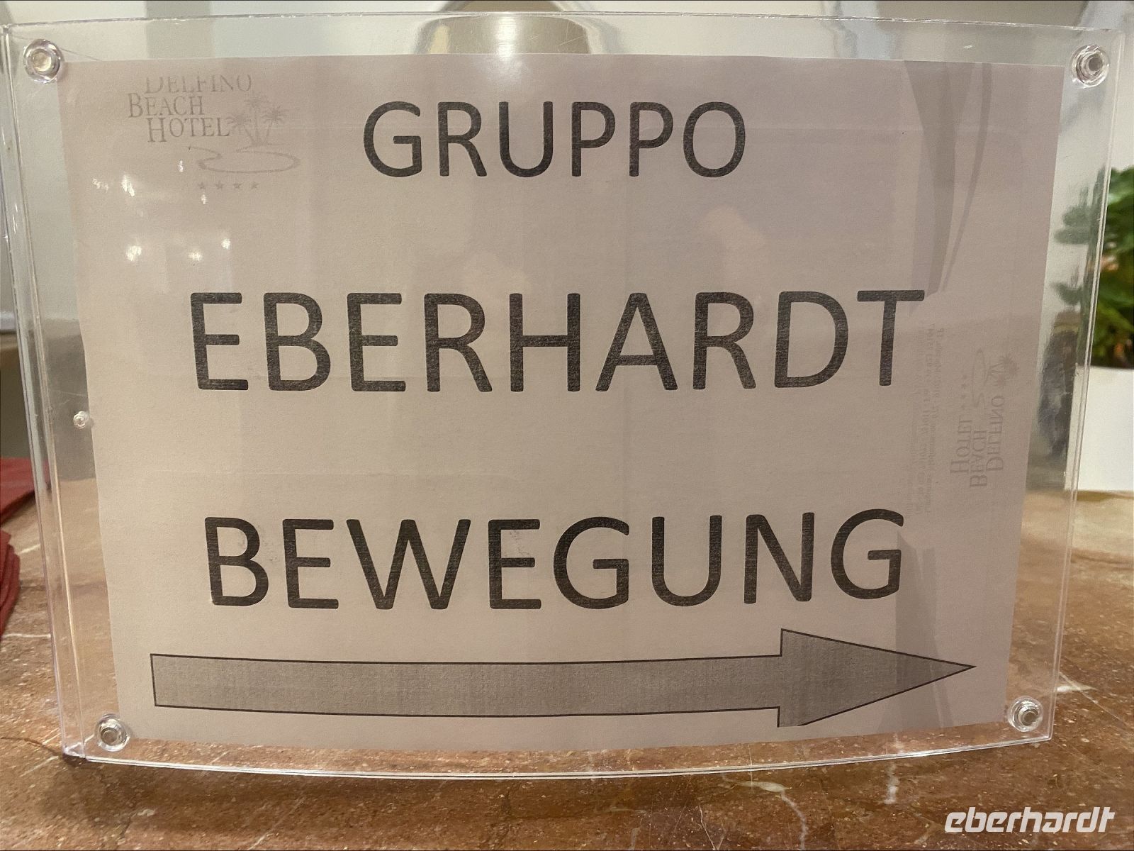 Man scheint uns zu kennen in diesem Hotel. Unser Ruf nach guter Truppe mit Laufkraft und Elan in jeden Alter eilt uns wohl voraus. Es flankieren Schilder mit der Aufschrift „Eberhardt Bewegung“ den Weg zwischen Zimmern und Speisesaal. Das Essen ist vorzüglich, danach gibt es Kaltgetränke zwischen Bar oder Pool, verschiedene Jugendgruppen im Hotel können identifiziert werden nach Ihrer Betreuung…..sportlich oder eher kirchlich. Wir sind in unserem goldenen Alter auf jeden Fall gefühlt in der Minderheit.