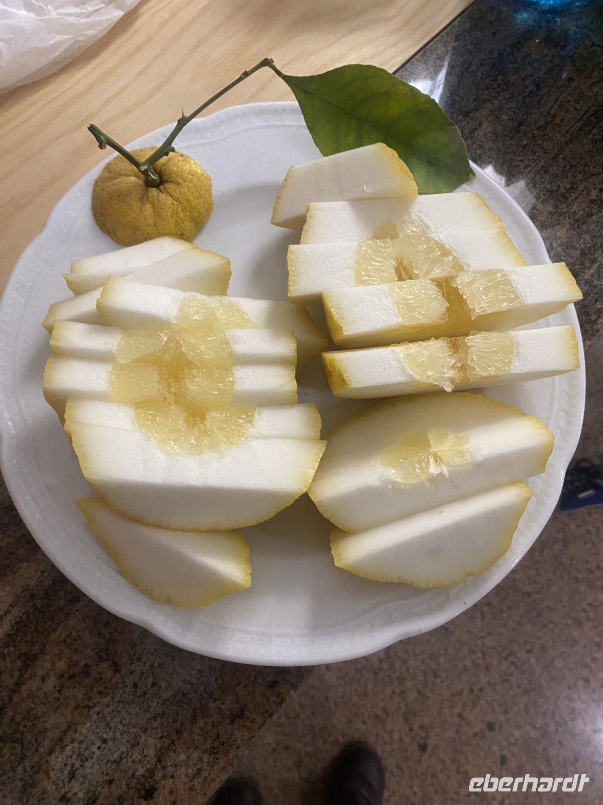 PS: wir haben heute eine überdimensionale Zitrone entdeckt und natürlich zur Probe mitgenommen: hhhmmmm…..nun ja, …die Frucht heisst Cedra und kann im Grundgeschmack zitronig bis auf die Schale voll gegessen werden.