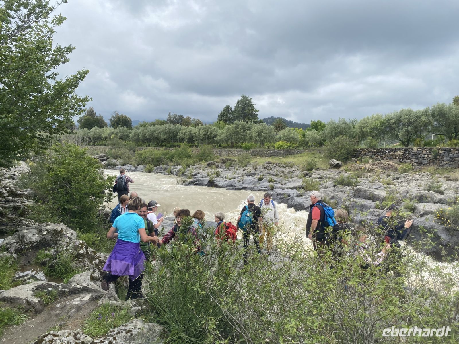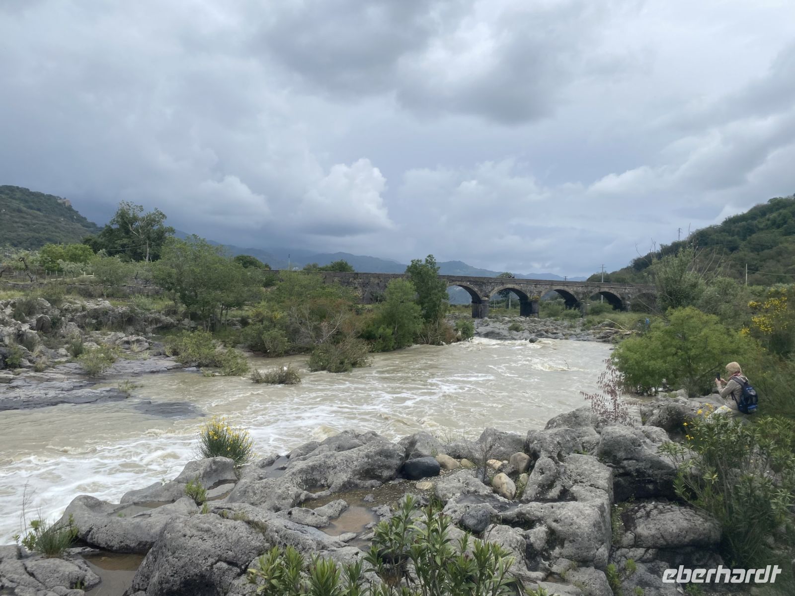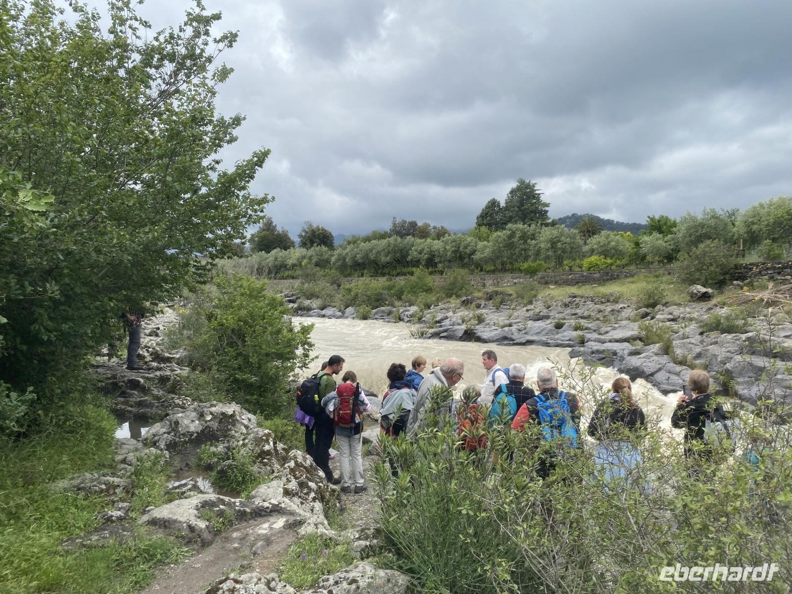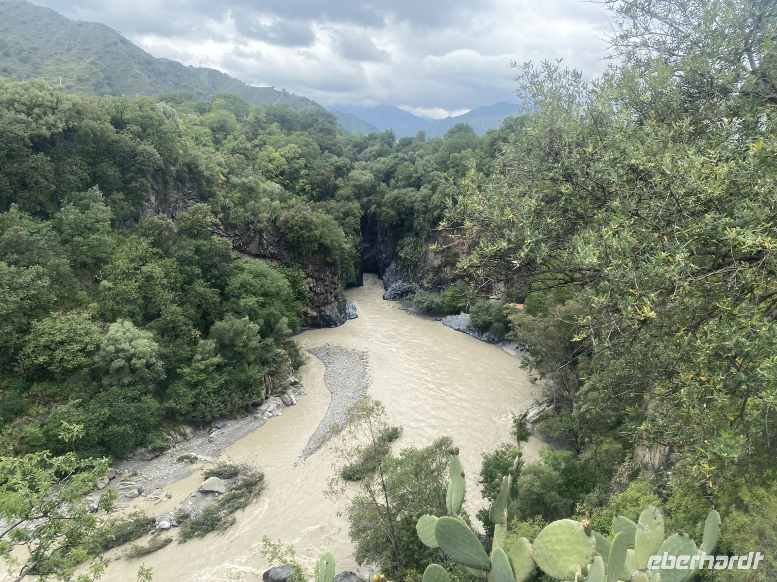 Auf den Gelände des Naturparks angekommen, hatten wir regenfreie Sicht auf die Schlucht und das Tal des Alcantara Flusses. Für „mehr Bewegung“ wählte Camillo eine flachere Region am Alcantara und wir konnten nun endlich laufen. Wir fotografierten das Tal und den hellbraun eingefärbten Fluss nach den starken Regenfällen der letzten Tage bis auch wir wieder von Regen heimgesucht wurden und beschlossen, zurück nach Giadini Naxos ins Hotel zu fahren. Camillo bot uns einen warmen Saunagang im Hotel an, bis wir den Tag mit unseren gemeinsamen Abendessen beendeten.
