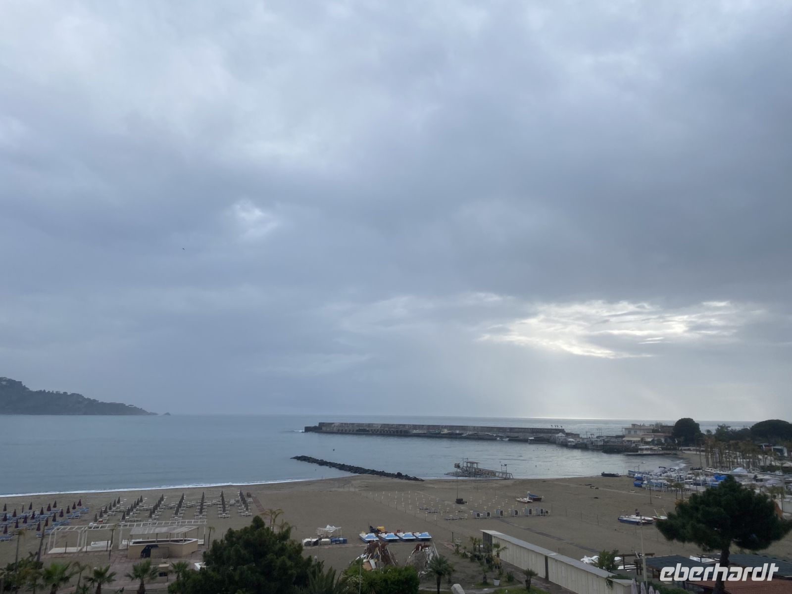 Im Hotel angekommen gibt es kaum eine andere Möglichkeit, als direkt zum Meer oder vielleicht an den Pool zu gehen bei diesem Wetter.