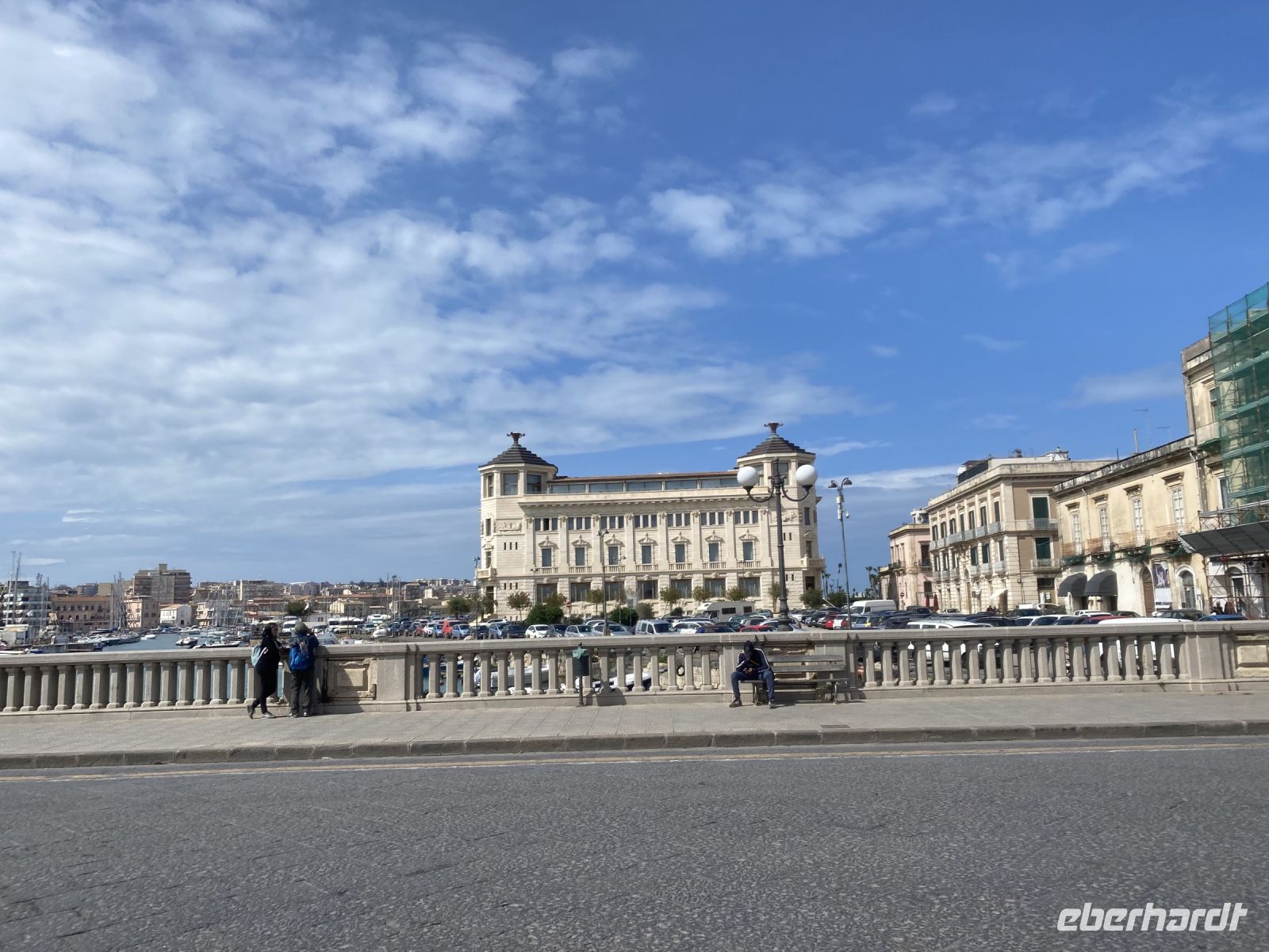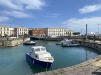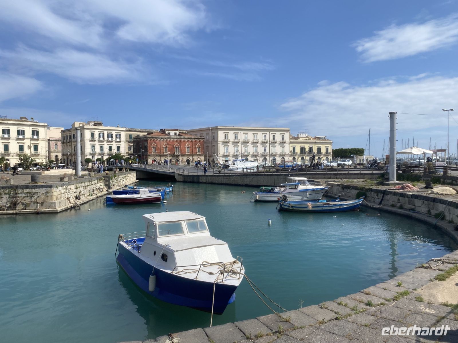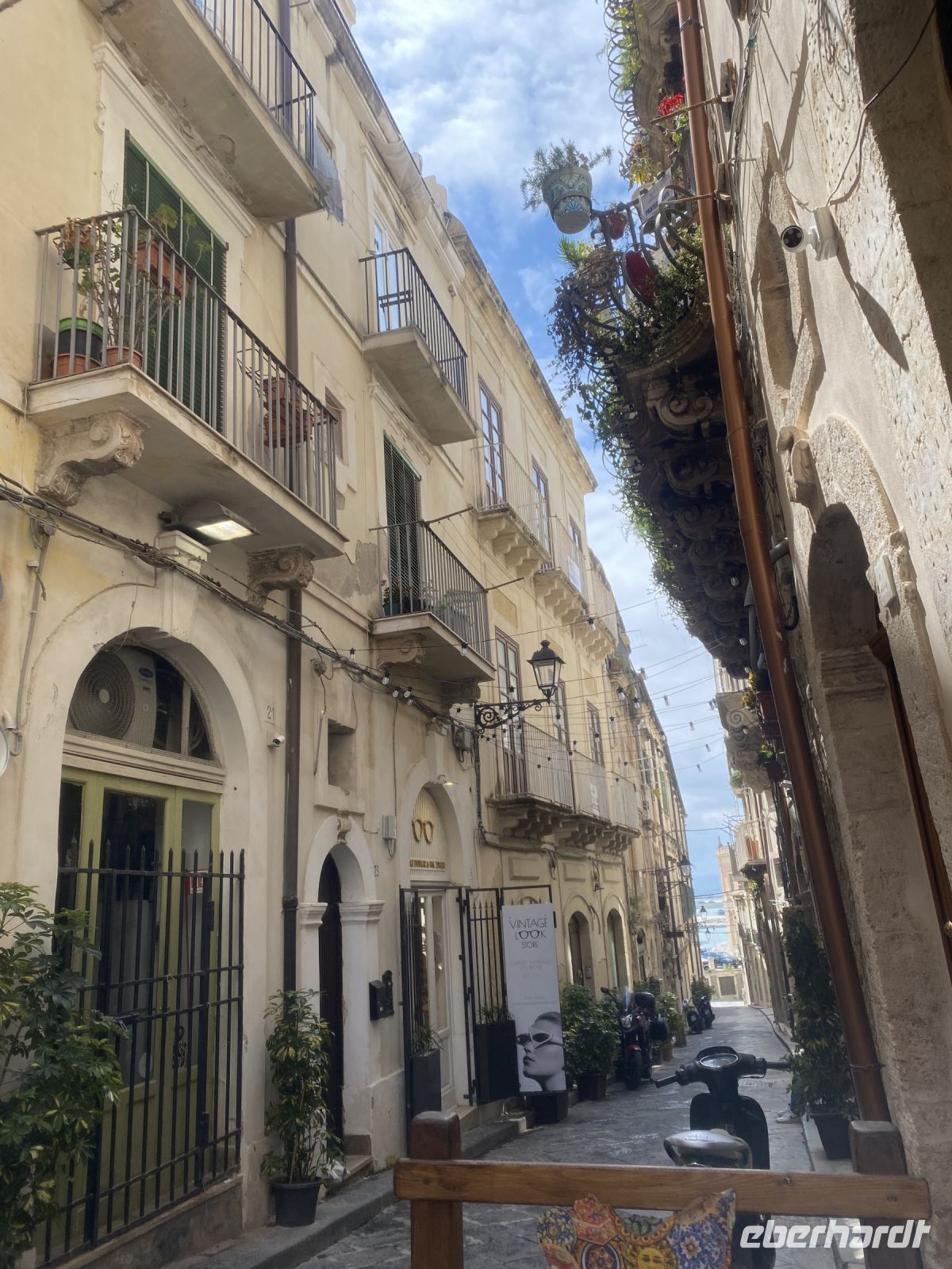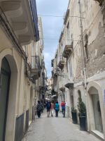 Unsere Mittagspause ein wenig nach hinten verschoben, zog es uns direkt weiter nach Syrakus. Camillo führte uns zur Insel Ortigia, auf der sich die Altstadt von Syrakus befindet. Unser Weg führte vorbei am Hafen, dem Apollo Tempel, dem Stadttor. Wir liefen durch kleine Gassen bis zur Piazza del Duomo, von wo aus wir dann die Altstadt auf eigene Faust erkunden. Wir pausieren in kleinen Strassenlokalen und stöbern hier und da, die Stadt ist voll von ausländischen Touristen.