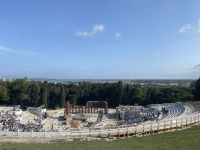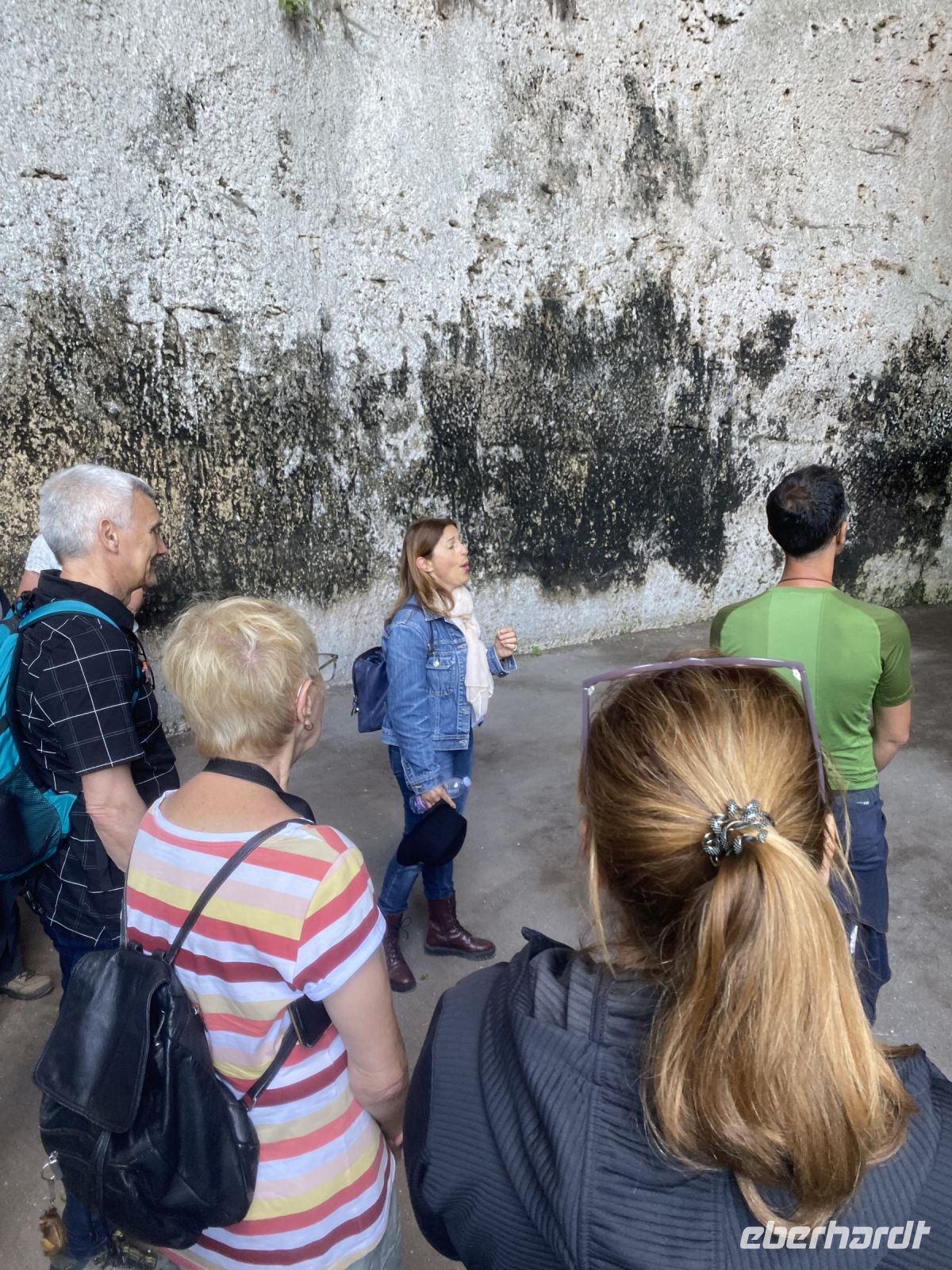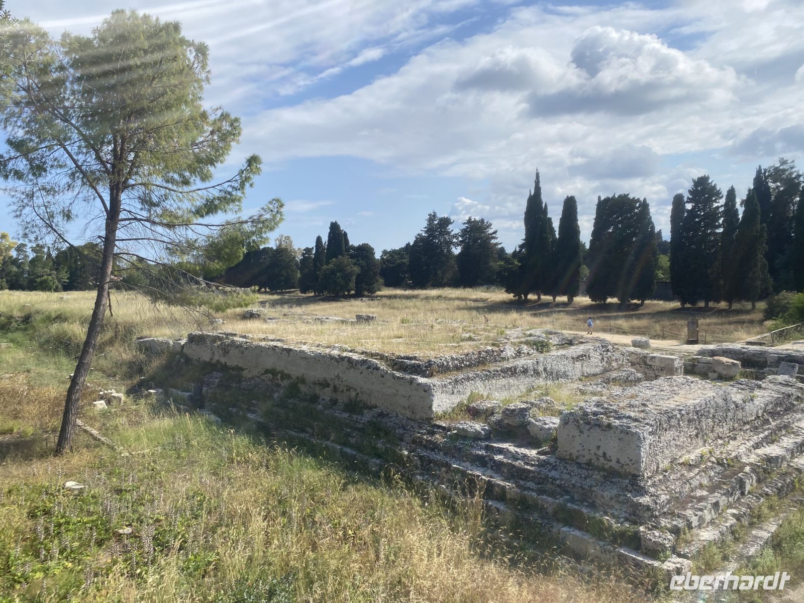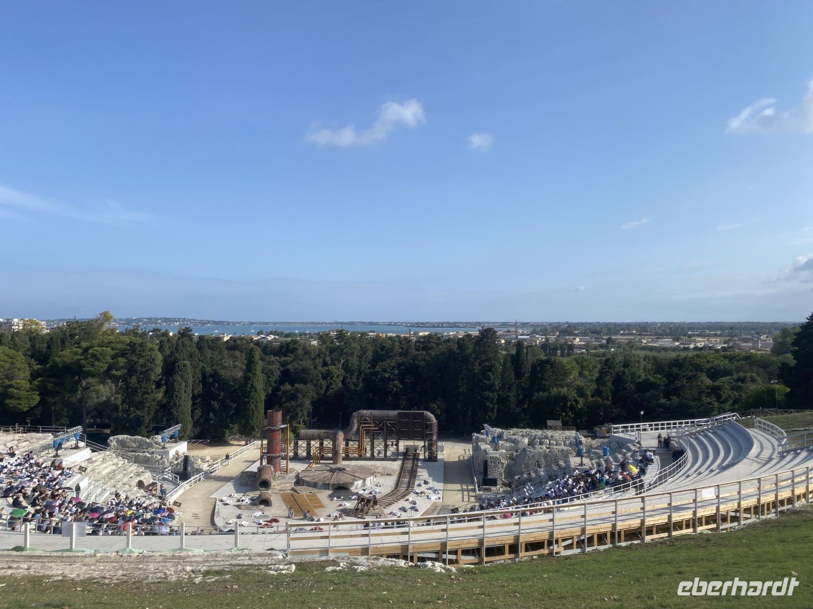 Am späten Nachmittag wartet noch eine besondere Station auf uns: der archäologische Park Neapolis und Marielena, unsere kundige Führung über das Areal. Sie lenkt unsere Aufmerksam durch römische und griechische Zeitrechnungen und singt für uns im Ohr des Dionysios. Sie erzählt uns sehr transparent vom griechischen Theater und seiner Funktion, begleitet durch eine Vorstellung junger Künstler, die zu diesem Zeitpunkt stattfindet. Und wir schwitzen, vermutlich das erste Mal recht ordentlich, hat uns hier ein ordentlicher Temperaturwechsel verglichen mit unserem Reisestart im Griff.