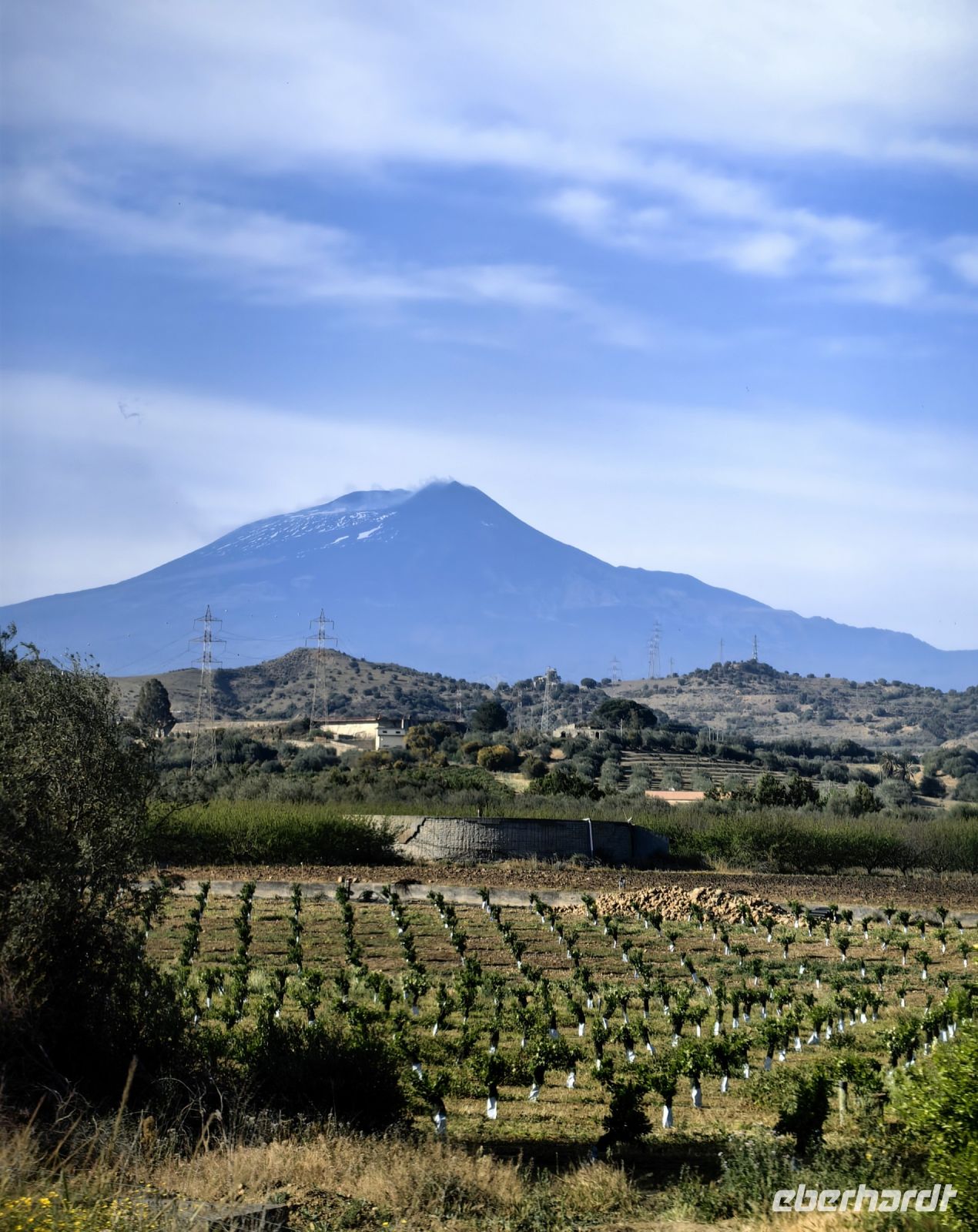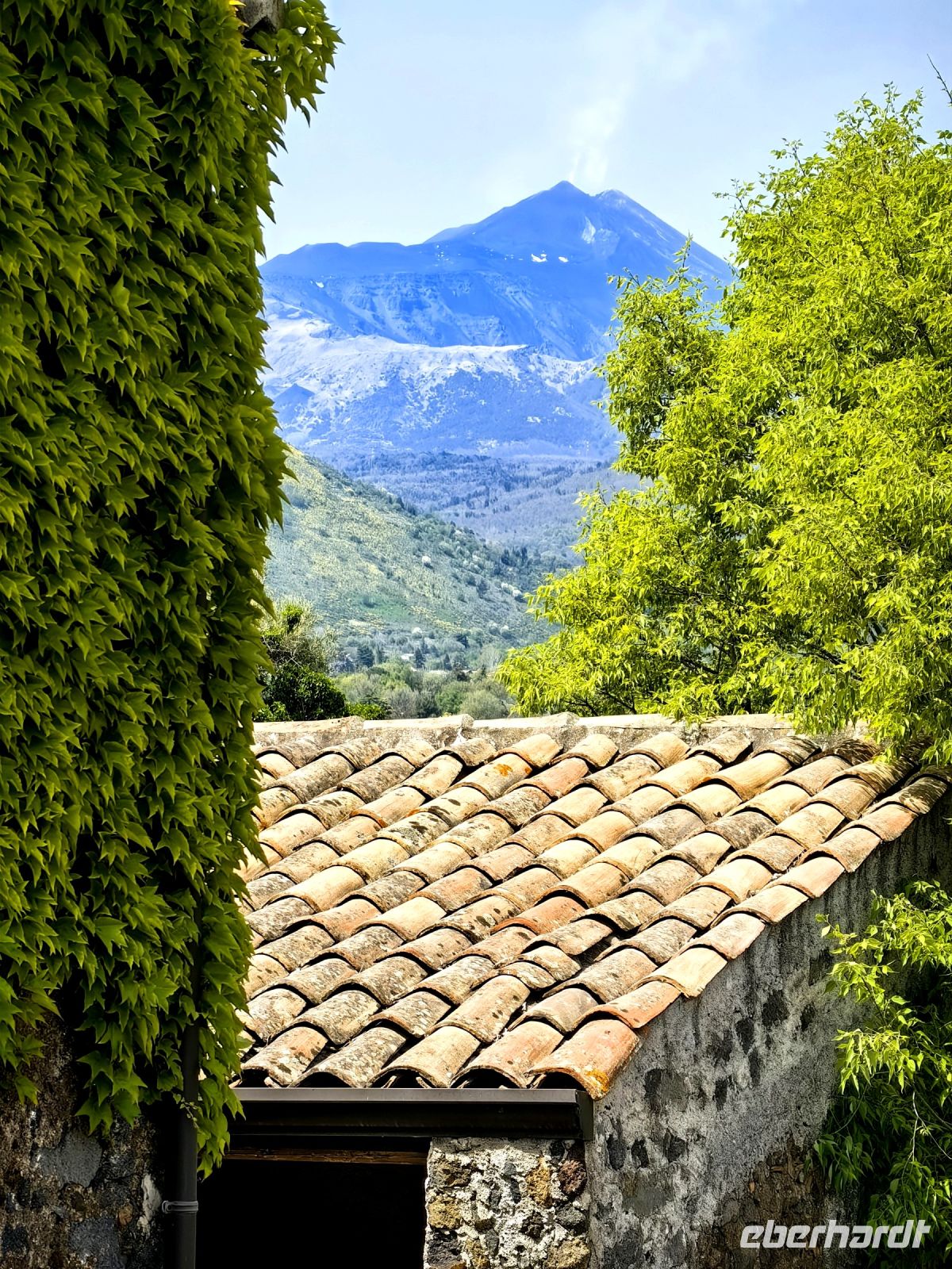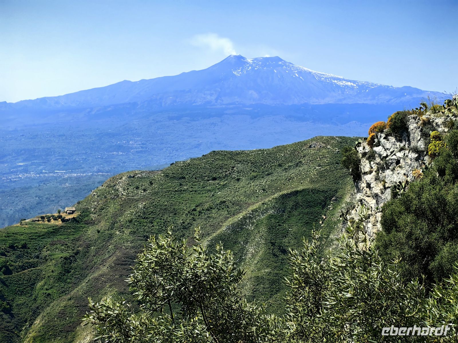 Am heutigen Morgen müssen wir Abschied von der Ätnaregion nehmen und stellen fest, daß wir in den letzten zwei Tagen Glück mit dem Wetter hatten. Der Ätna ist heute von Wolken verhangen, die Silhouette ist kaum auszumachen.