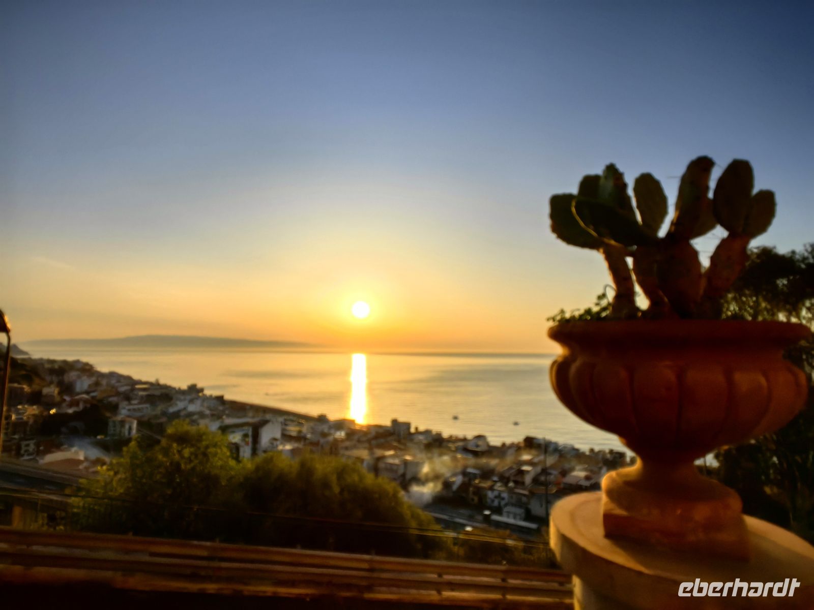 Für unseren Abstieg wählen wir einen anderen Weg, der uns an den Ruinen des Tempels von Diana entlang führt, einem megalithischen Denkmal, welches wahrscheinlich für die Anbetung heidnischer Gottheiten genutzt wurde. Der ganze Felsen ist verbunden mit dem Mythos von Daphnis. Nachdem er einer Nymphe die Treue geschworen hatte, wurde er in betrunkenem Zustand verführt und deshalb erblindete er. Daphnis beschloß, sich umzubringen, indem er sich vom Felsen von Cefalu stürzte. Wir können das gar nicht nachvollziehen, denn der Blick, der sich von der unteren Terrasse auf die Altstadt bietet, ist einmalig schön. Die ganze Küstenlinie ist zu sehen, auf den sanften Wellen bilden sich weiße Schaumkronen. Über unseren Köpfen kreisen die Möwen und zu unseren Füßen liegt majestätisch die Kathedrale mitten in den verwinkelten Gassen der pittoresken Altstadt. Diesen Anblick haben wir uns schwer erarbeitet, werden ihn aber ganz sicher nie vergessen.