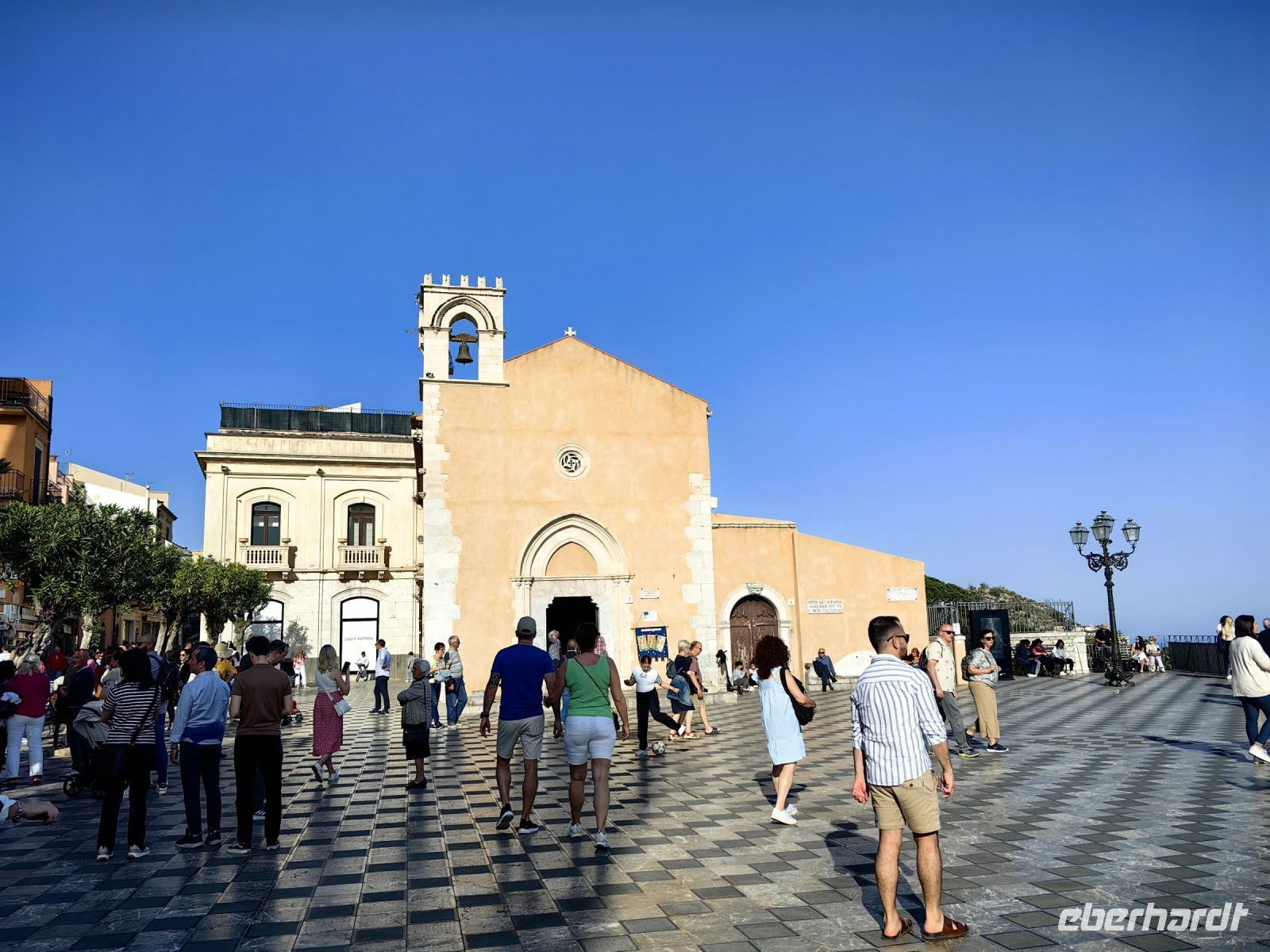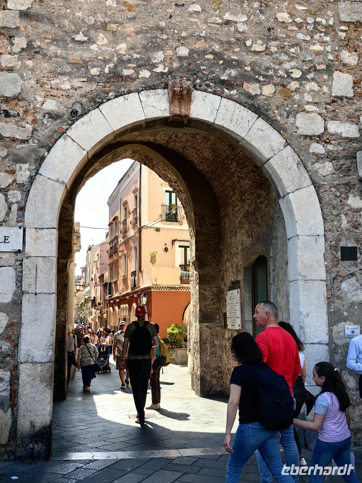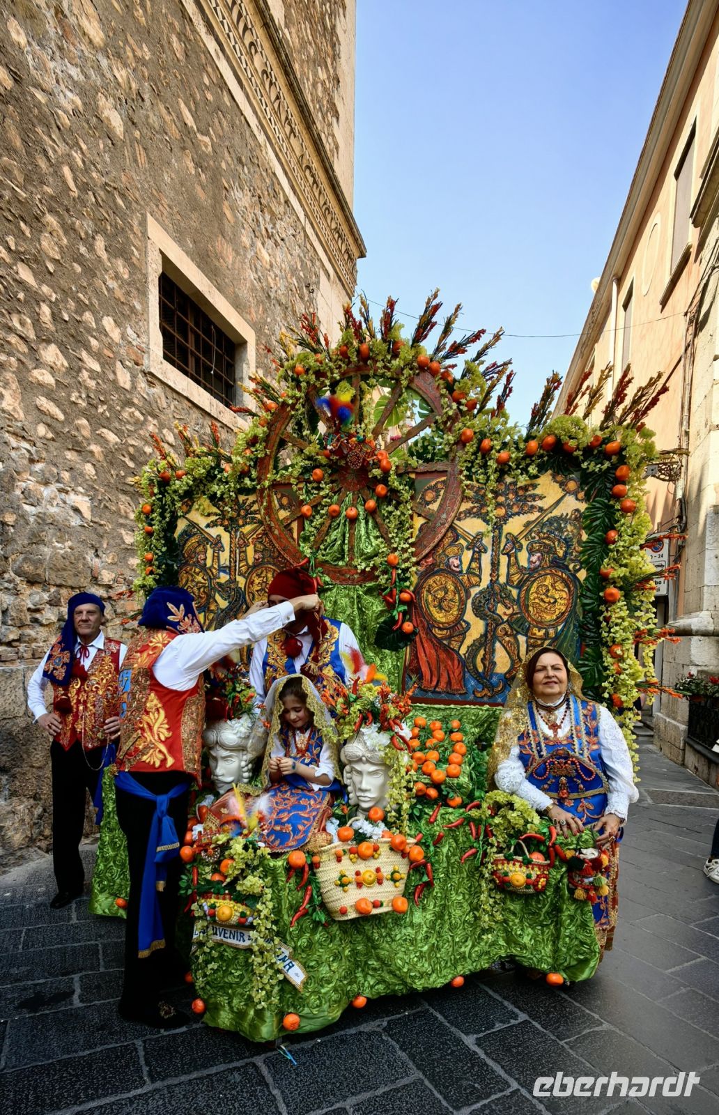 Diese wunderschöne, malerisch auf einem Hügel gelegene Stadt bietet historische Bauwerke und einen bezauberndenAusblick auf das Ionische Meer, den Ätna und die kalabrische Küstenlinie des italienischen Festlandes. Durch die Porta di Messina betreten wir die Stadt und verweilen kurz am Palazzo Corvaja, einer mittelalterlichen Festung, in der sich heute ein Museum und eine Kunstgalerie befinden. In unserer Freizeit spazieren wir durch den sehr gepflegten öffentlichen Garten, suchen uns ein lauschiges Plätzchen in einem der unzähligen Straßenrestaurants oder setzen uns einfach auf eine der Stufen und betrachten das pralle süditalienische Leben. Vor dem Palazzo findet heute eine Frühlingszeremonie statt, alle sind bunt gekleidet, Pferde sind üppig geschmückt. Es wird getanzt und viele Erinnerungsfotos entstehen.
