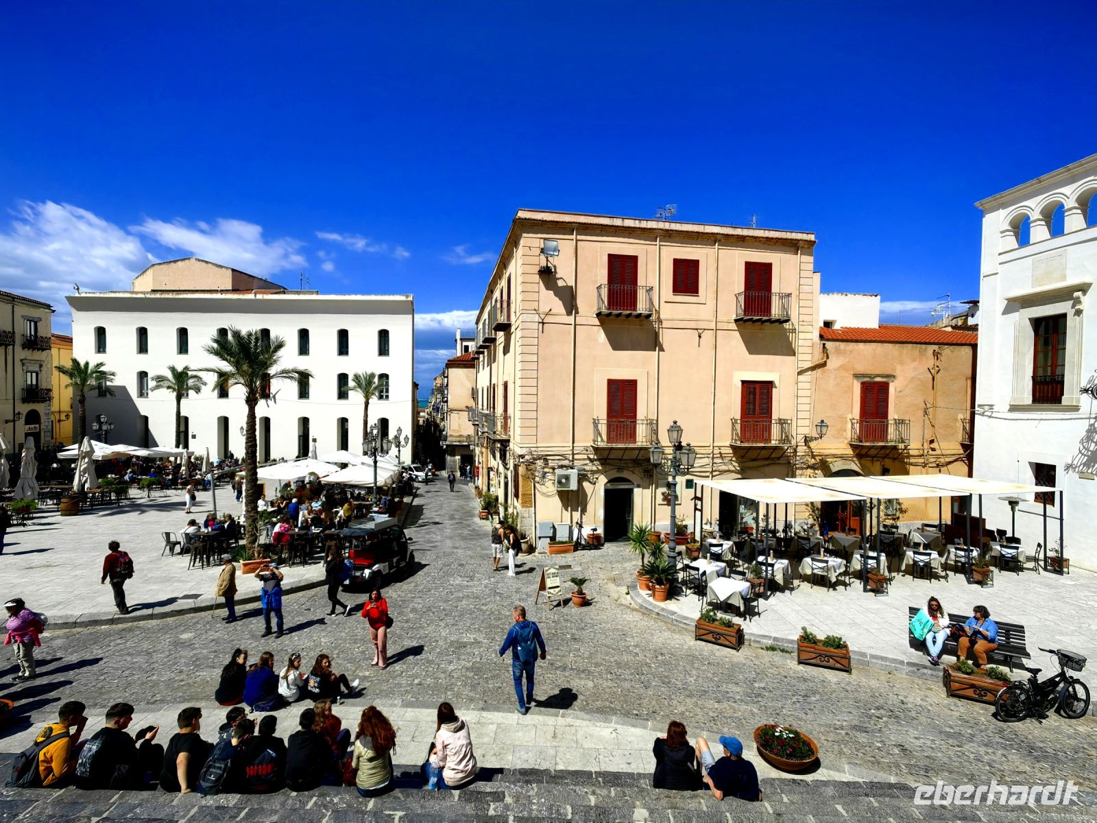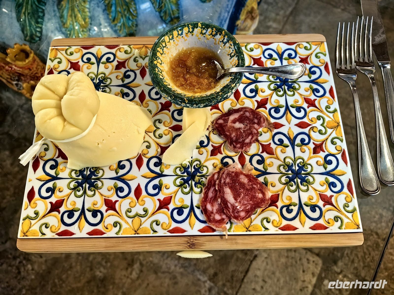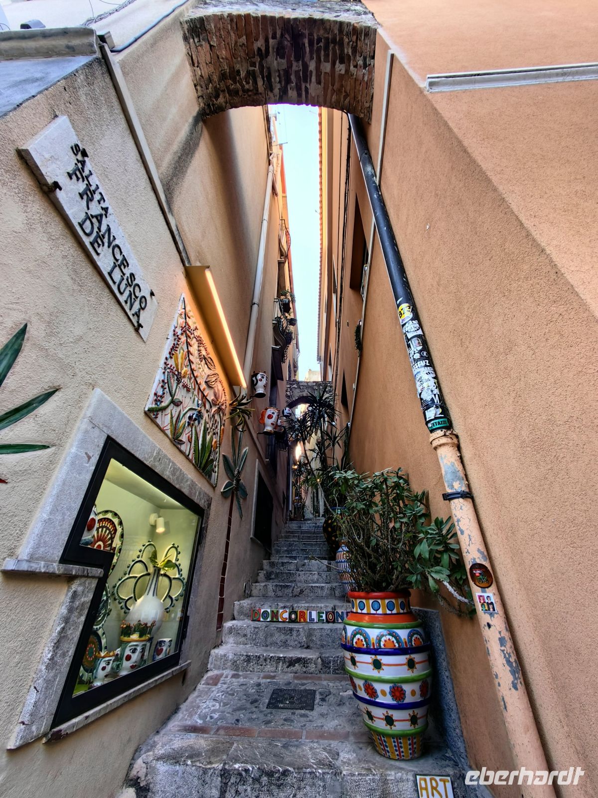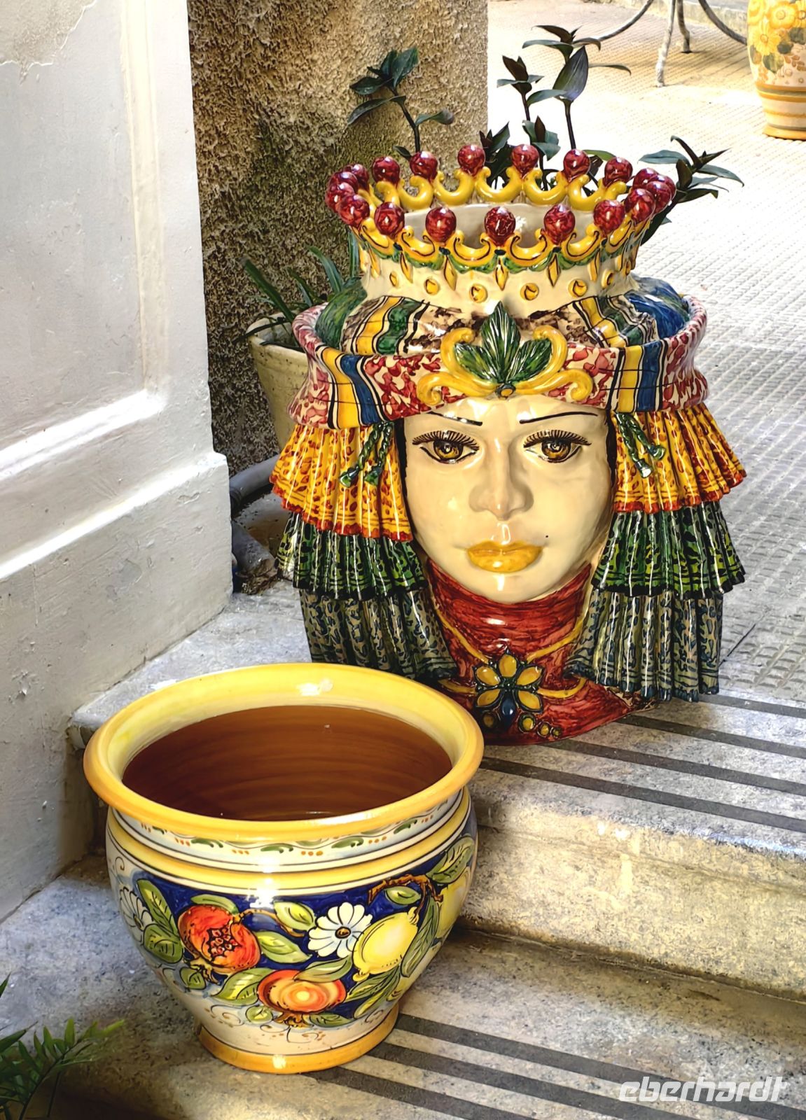 Als wir wieder die Piazza Duomo erreichen, ist es schon früher Nachmittag und ganz schnell verschwinden alle in einem der zahlreichen Restaurants mit den verlockenden Düften und einige der Damen sind ganz hingerissen von den kleinen schicken Lädchen mit der bunten Keramik und den Spezialitäten aus Sizilien.