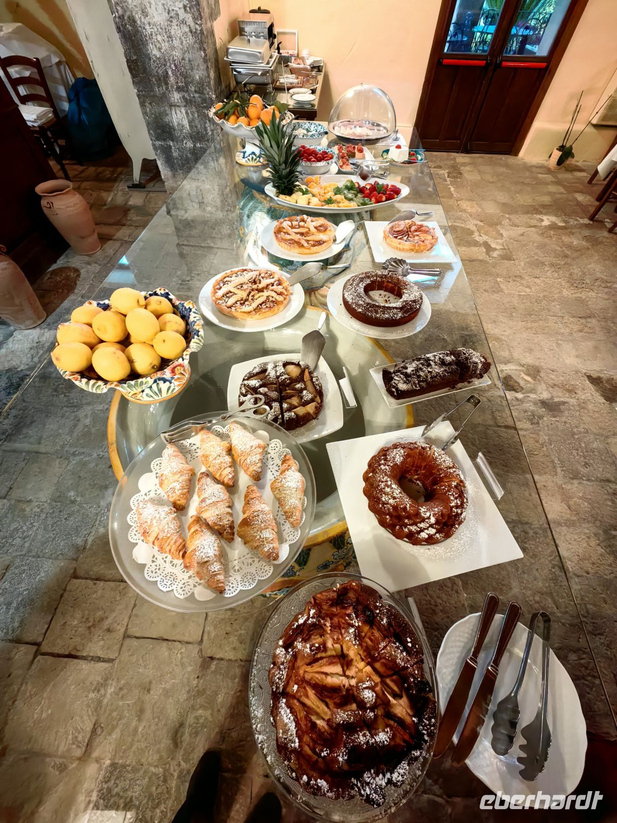 Die Sonne strahlt am Morgen vom azurblauen Himmel und das Frühstück ist fantastisch. Es fällt uns wirklich schwer, dieses traumhafte alte Weingut bei Noto zu verlassen.