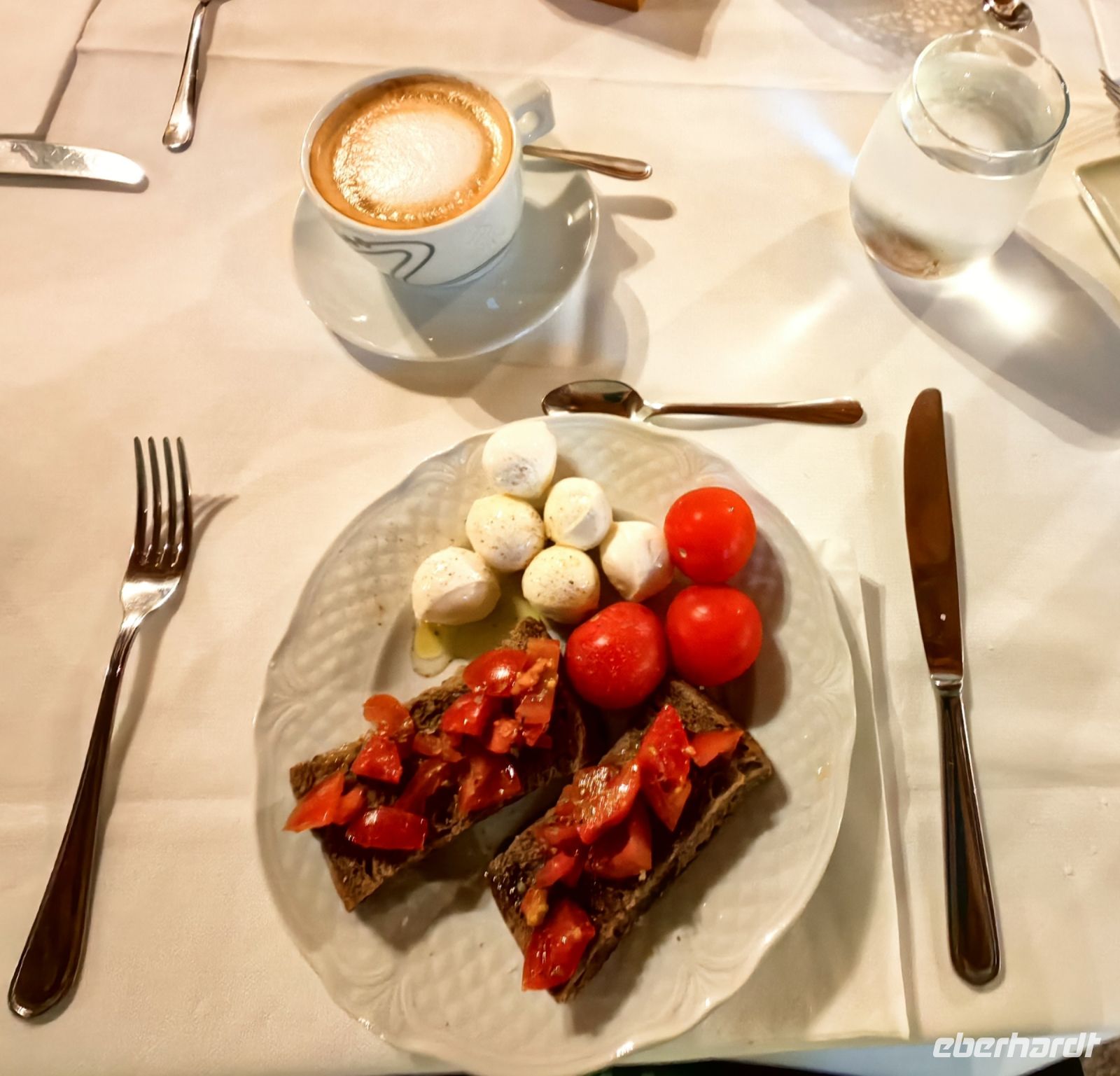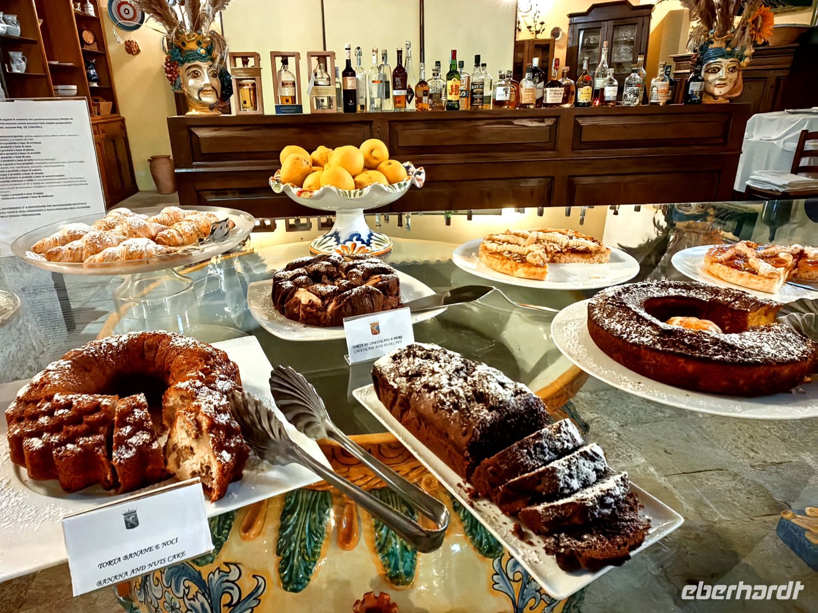 Wir haben im Hotel Villa Giulia in den bequemen Boxspringbetten hervorragend geschlafen und genießen das exzellente Frühstück mit den hausgemachten Marmeladen, Kuchen und dem Bioobst in vollen Zügen.