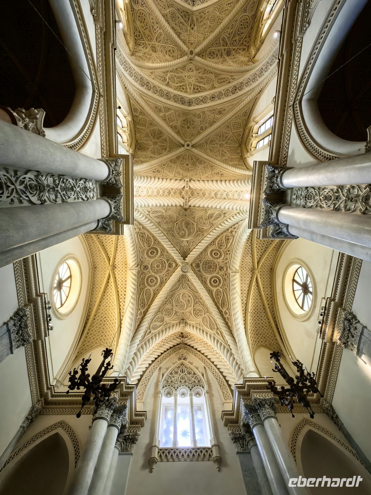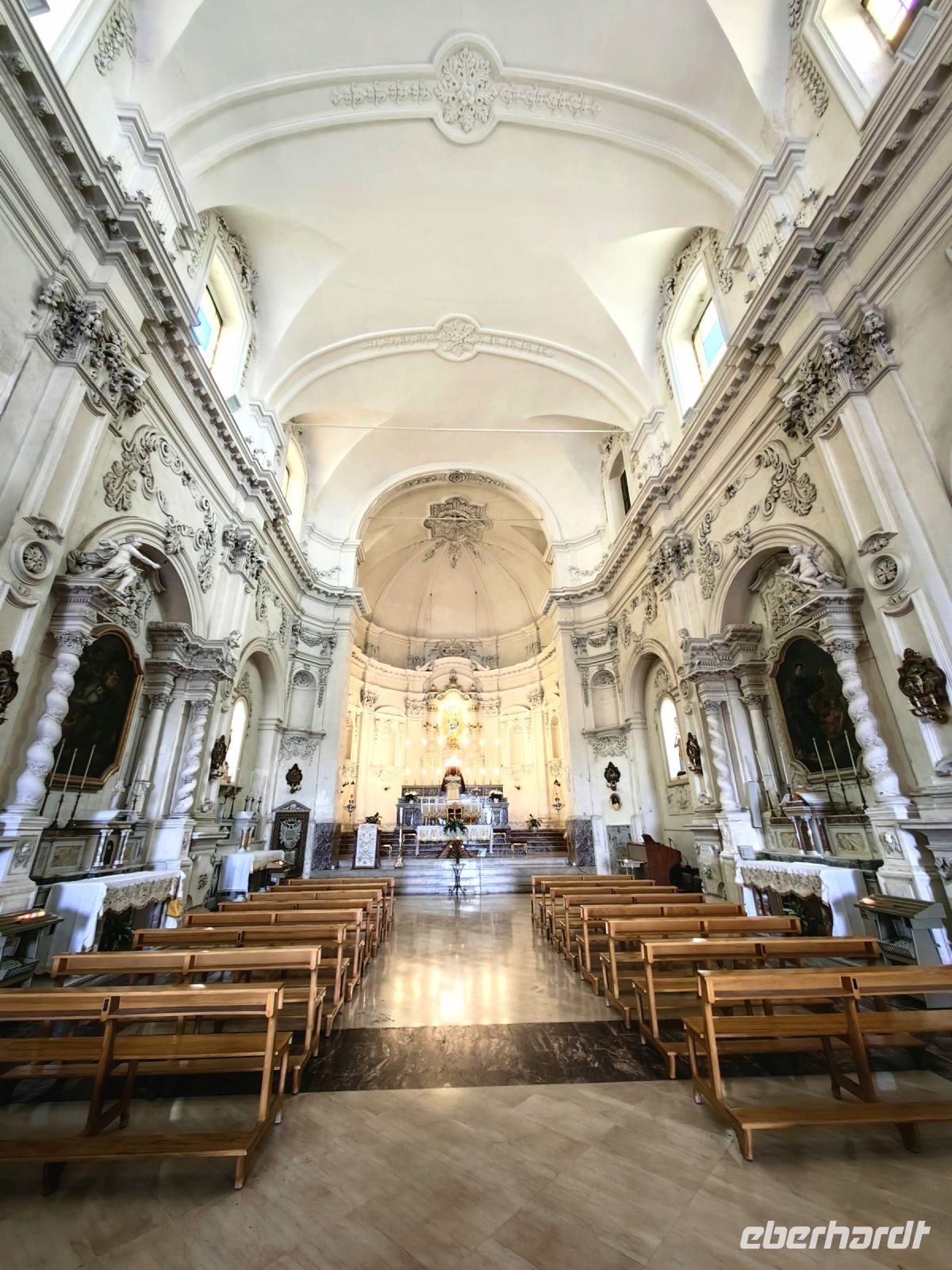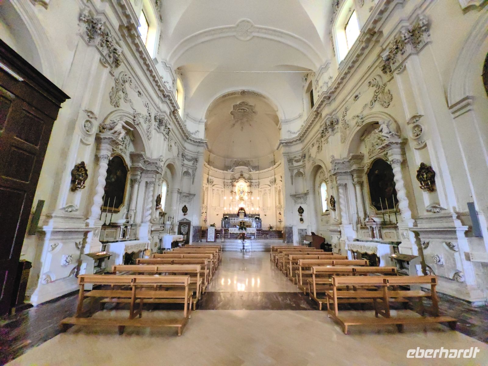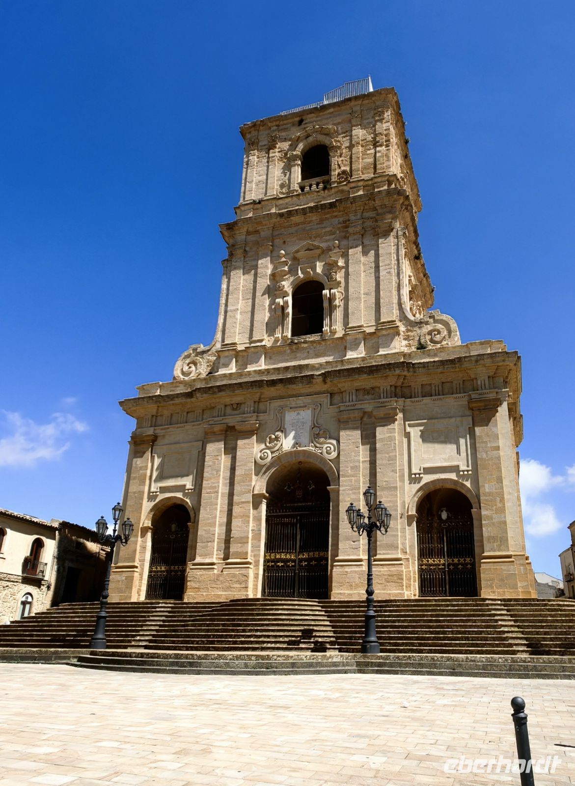 In der Oberstadt besuchen wir die imposante Kathedrale Maria Santissima della Visitazione. Die drei innen liegenden Schiffe werden vor allem durch die Holzkassettendecke geprägt und durch dicke Säulen aus schwarzem Basalt getrennt.