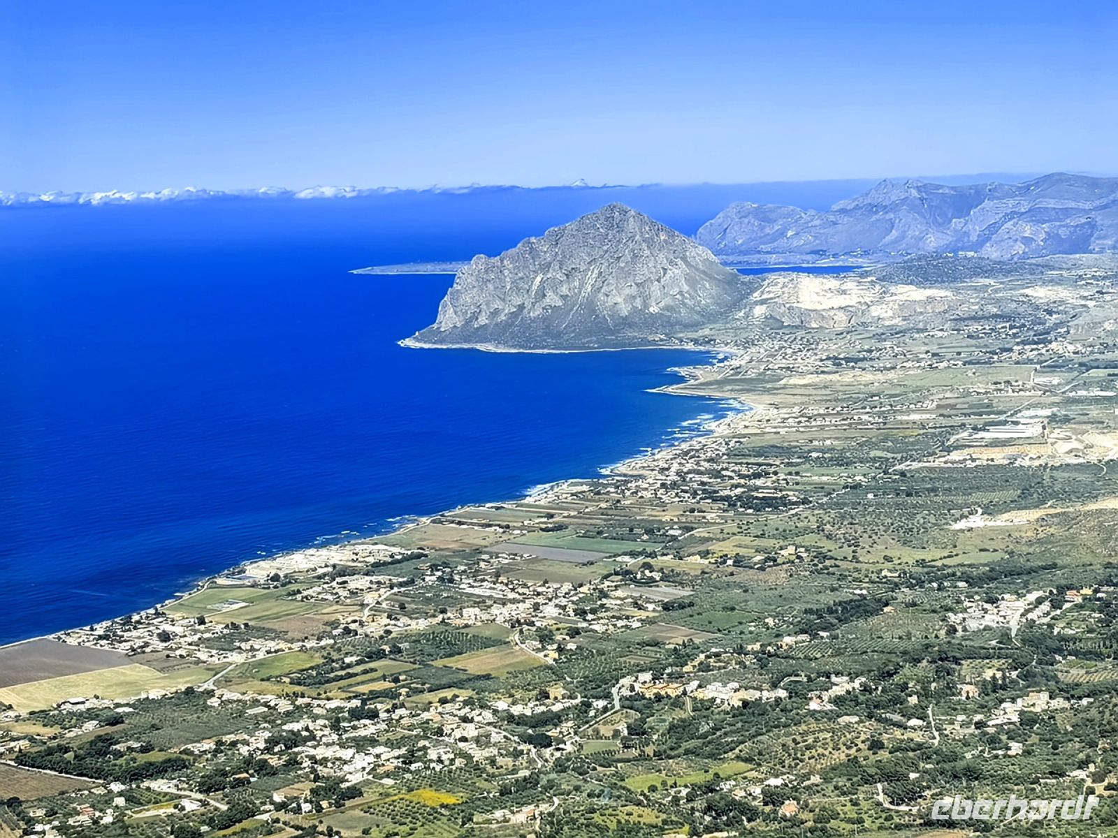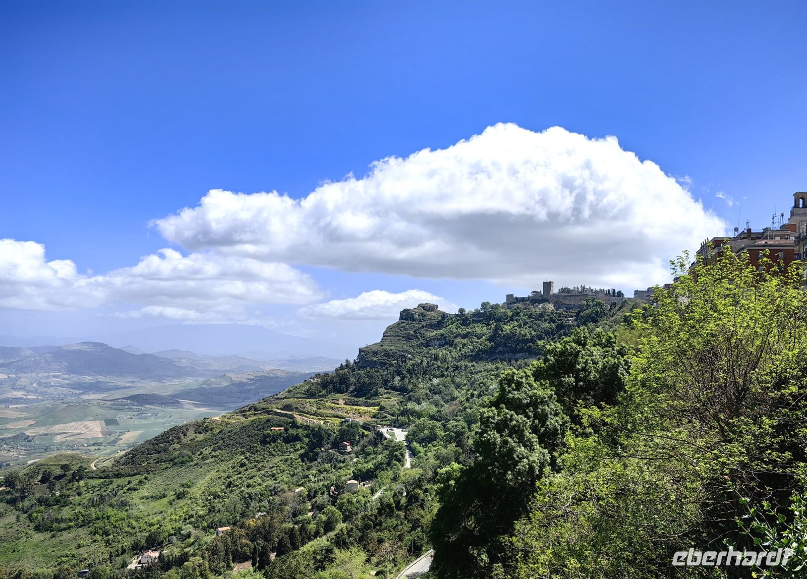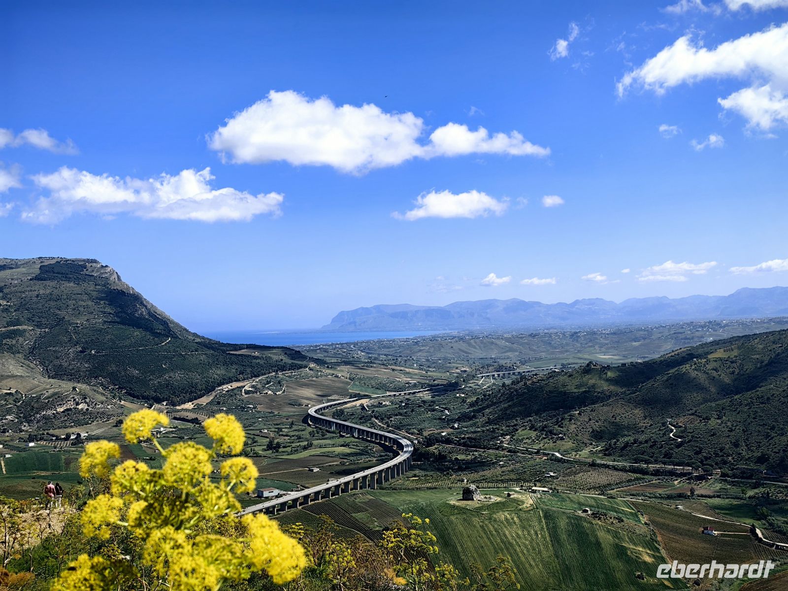 Von hier oben haben wir wiederum eine fantastische Sicht auf das Landesinnere und das Mittelmeer bis hin zu den Ägaden, der im Westen Siziliens vorgelagerten Inselgruppe, sowie auf San Vito Lo Capa, einen der schönsten Strände Siziliens. Wir beschließen, zuerst eine Mittagspause zu machen und verkosten danach typische sizilianische Süßigkeiten, die etwas an türkischen Honig erinnern.