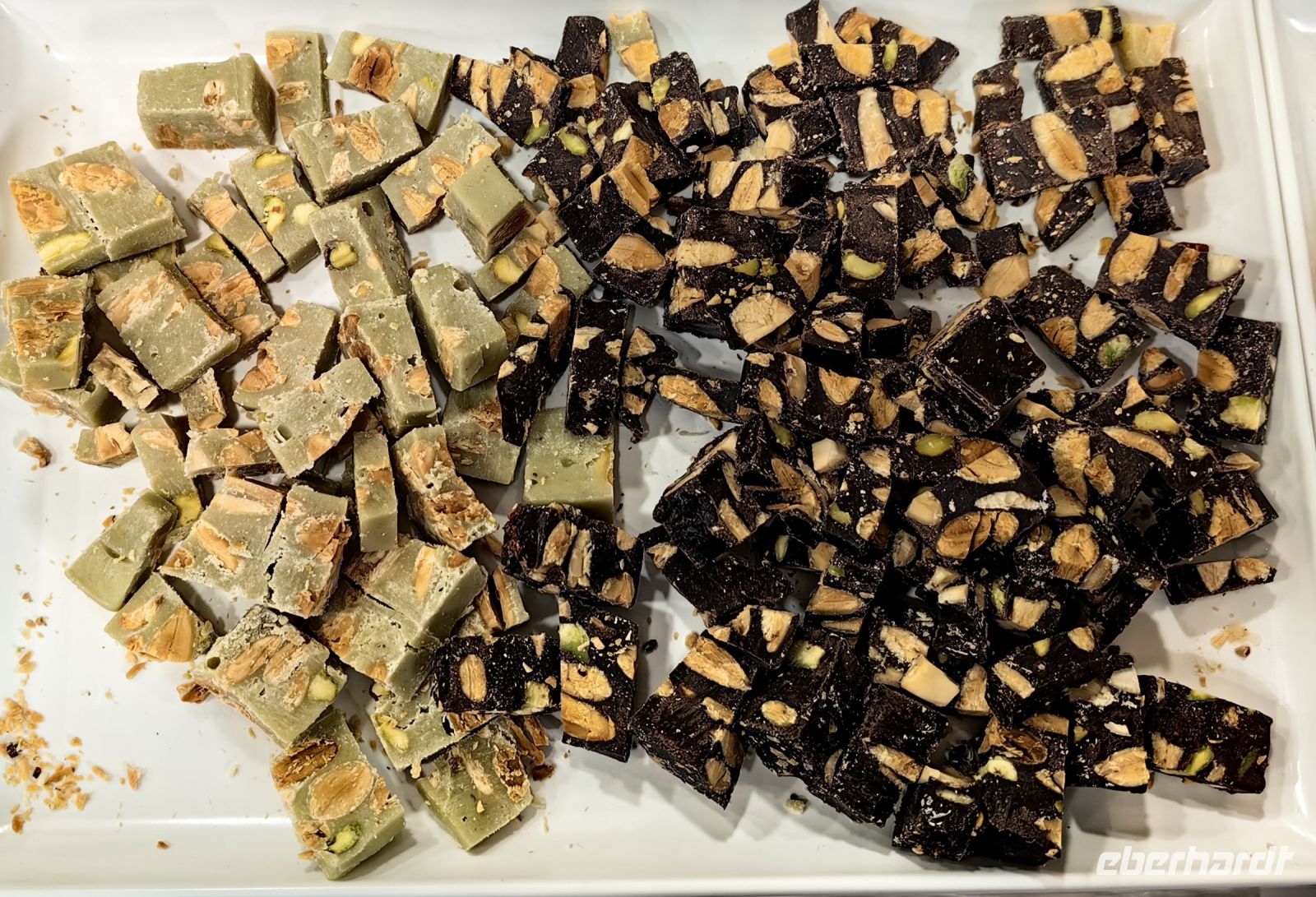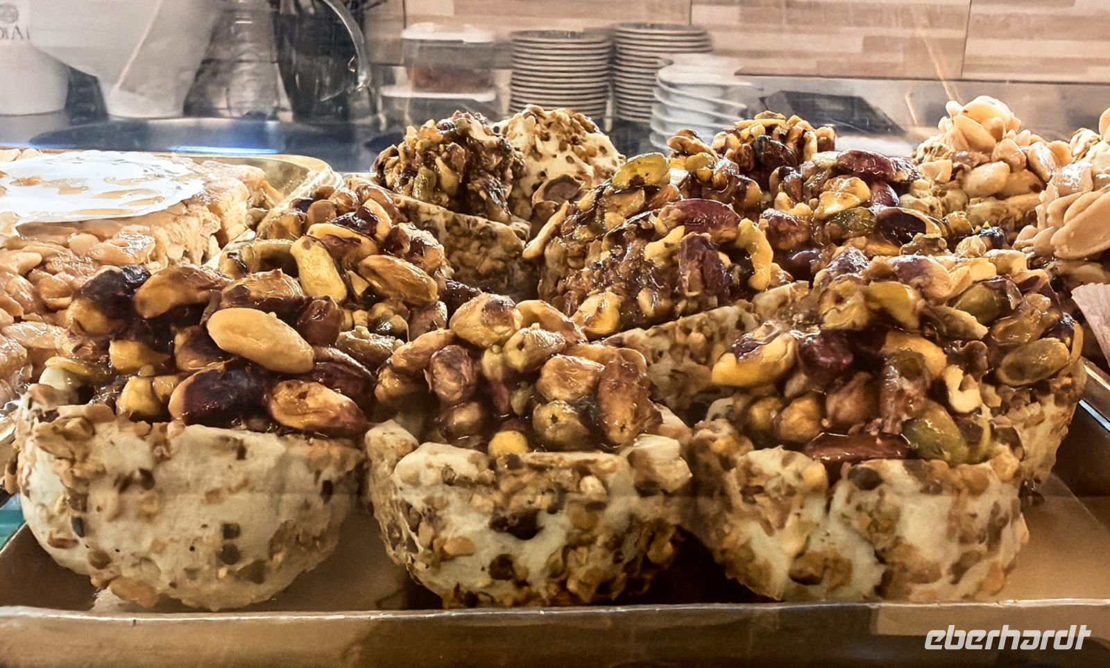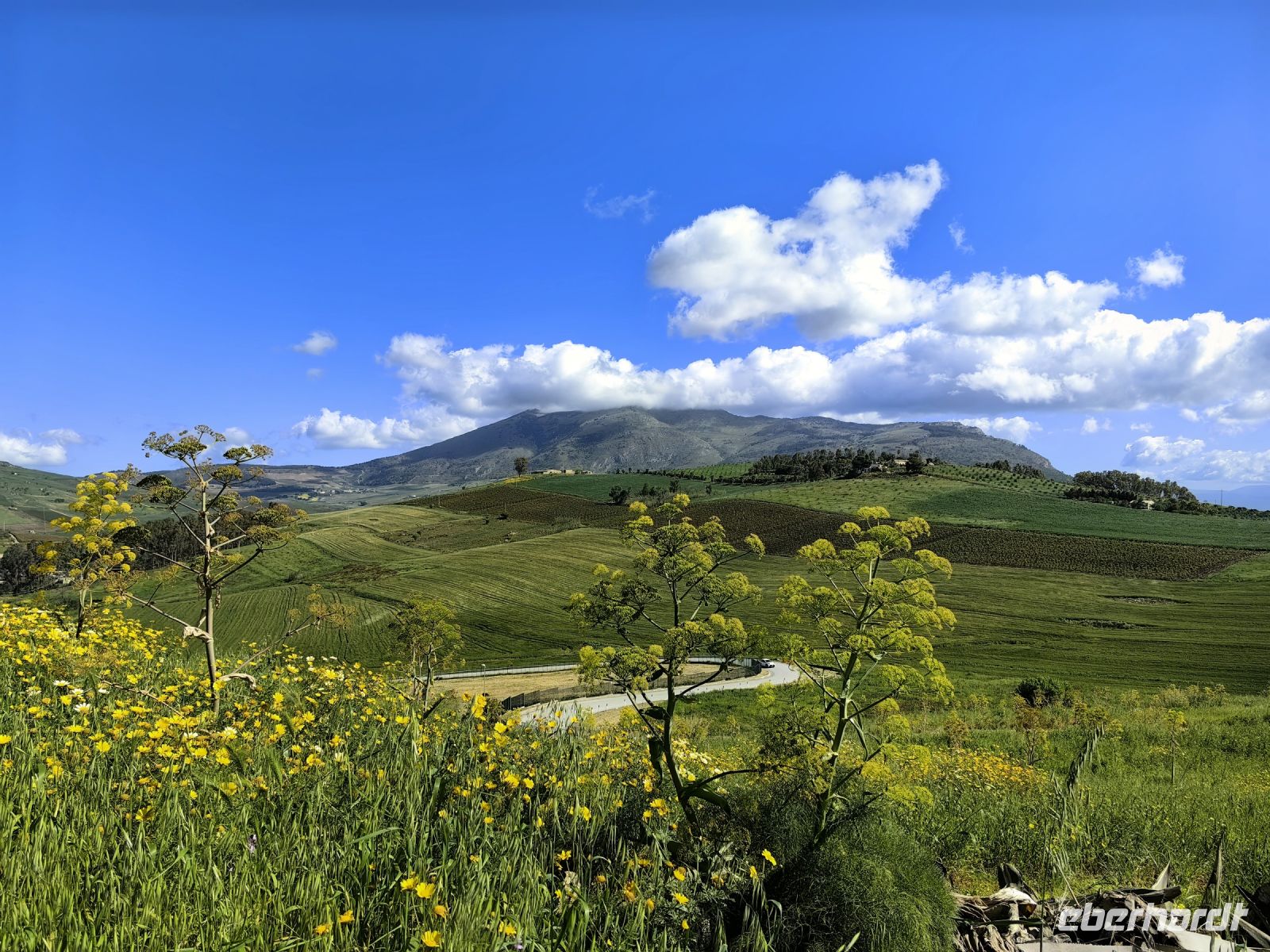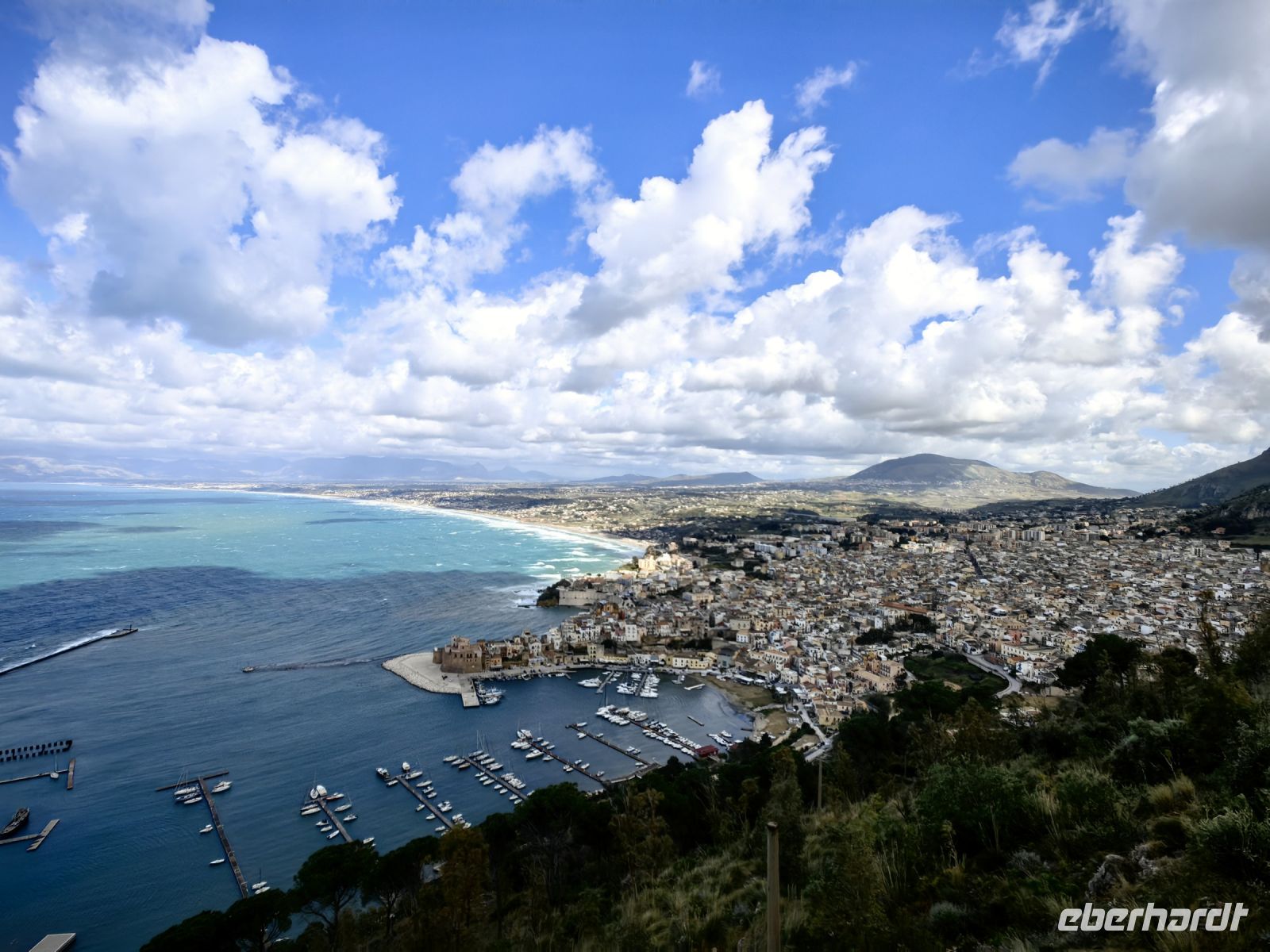 Von hier oben haben wir wiederum eine fantastische Sicht auf das Landesinnere und das Mittelmeer bis hin zu den Ägaden, der im Westen Siziliens vorgelagerten Inselgruppe, sowie auf San Vito Lo Capa, einen der schönsten Strände Siziliens. Wir beschließen, zuerst eine Mittagspause zu machen und verkosten danach typische sizilianische Süßigkeiten, die etwas an türkischen Honig erinnern.