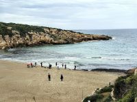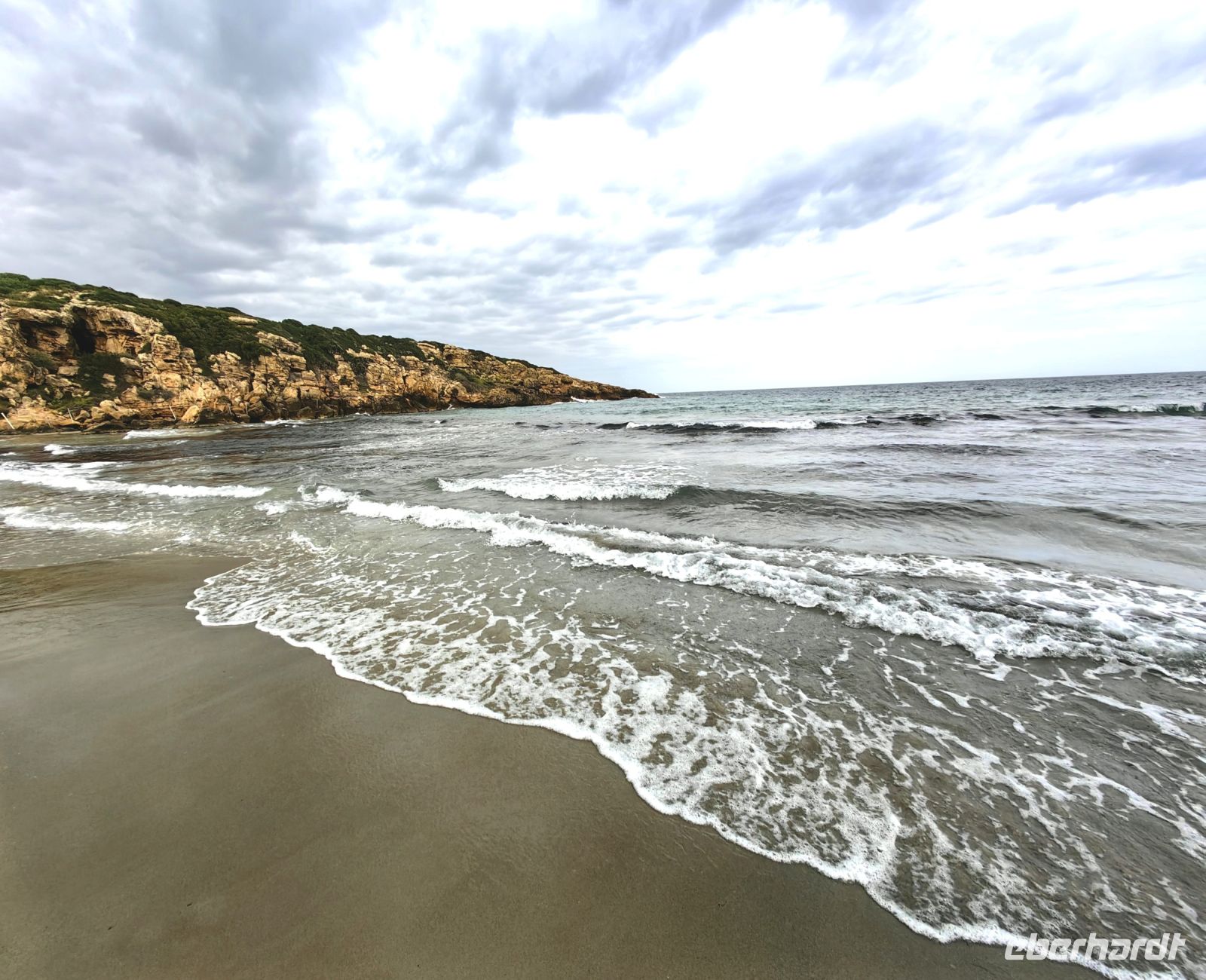 Etwa nach der Hälfte unserer sieben Kilometer langen Wanderung erreichen wir eine kleine malerische Bucht mit türkisblauem Wasser. Hier beschließen wir, eine Picknickpause einzulegen. Simone hat an den einheimischen Marsala-Süßwein gedacht und in Cefalu am Vortag traditionelle kleine Mandelsüßigkeiten erstanden. Beides mundet uns vorzüglich und für einige Gäste ist diese Pause an dem wildromantischen Strand das Highlight der gesamten Reise.