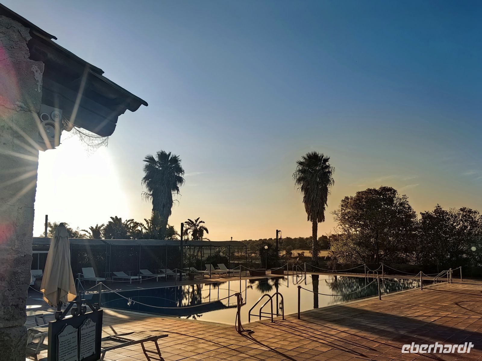 Am späten Nachmittag kommt die Sonne wieder zum Vorschein und der hoteleigene Pool mit dazugehöriger Bar wird regelrecht von uns okkupiert, bevor wir im alten Weinkeller des wildromantischen Hotels erneut ein exzellentes Abendessen genießen.