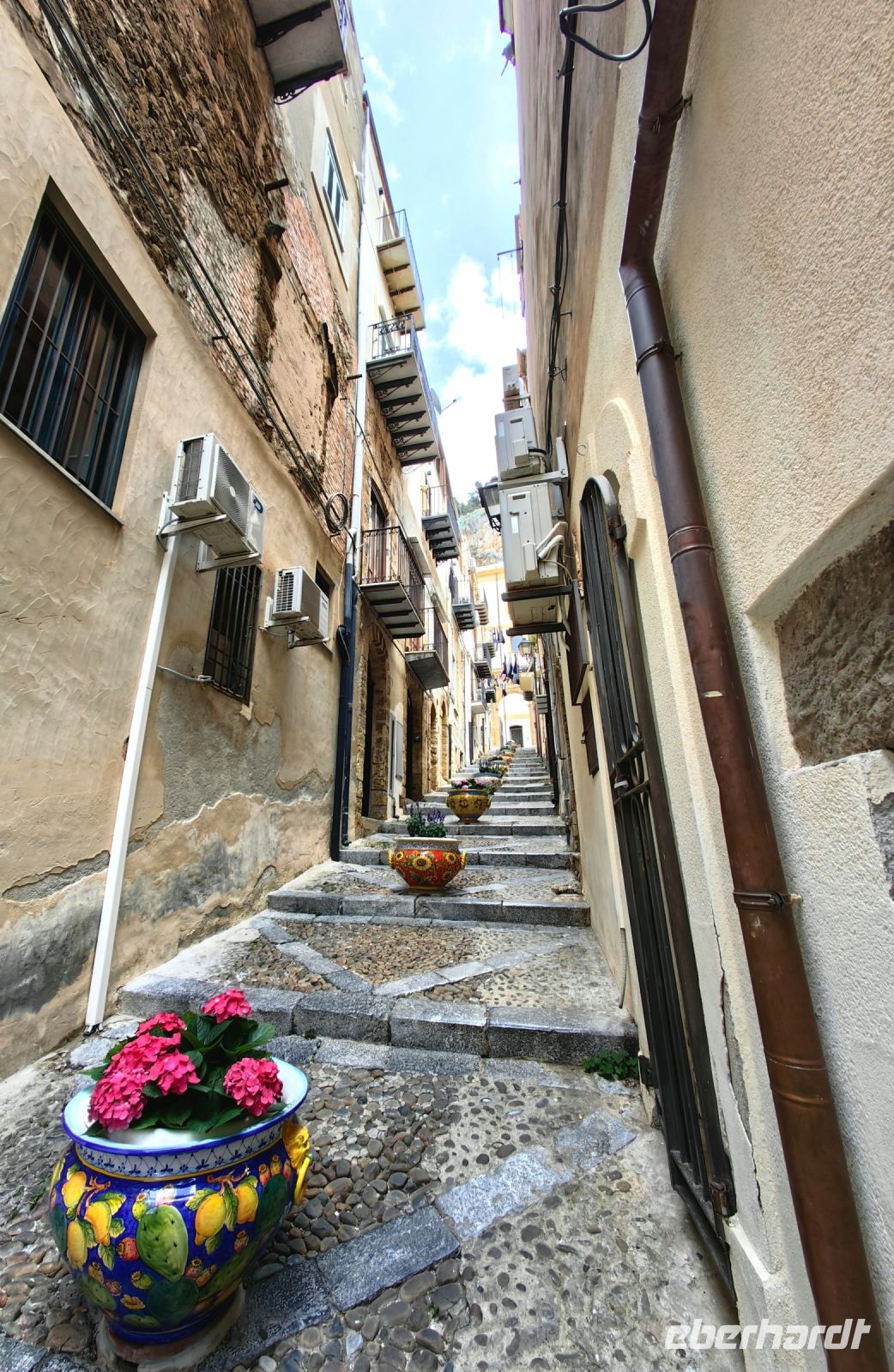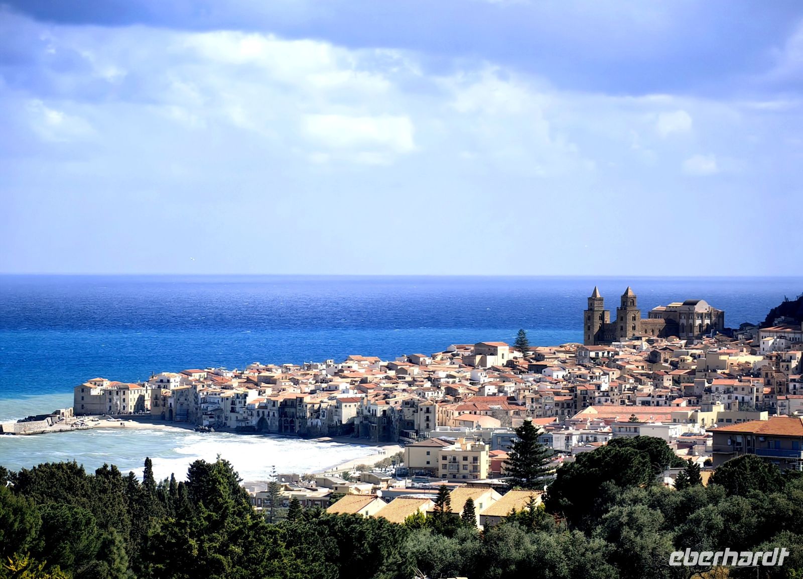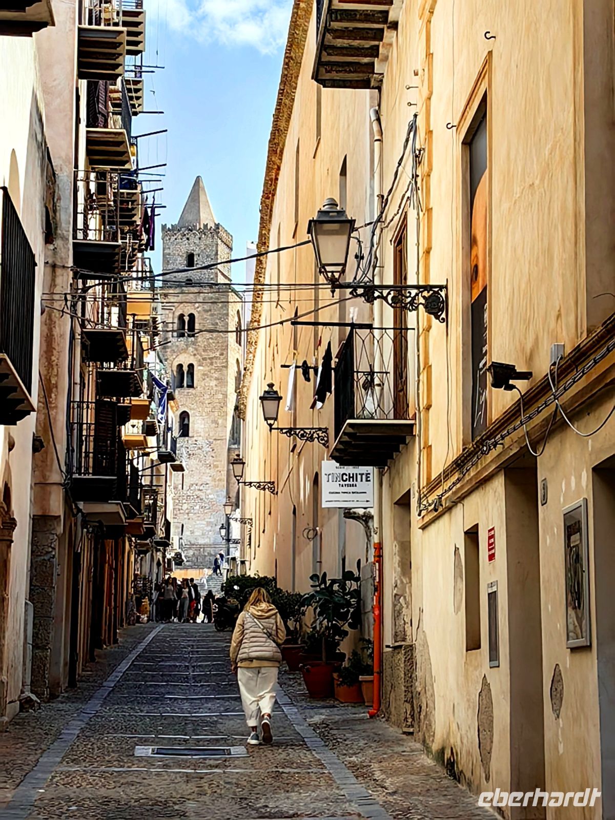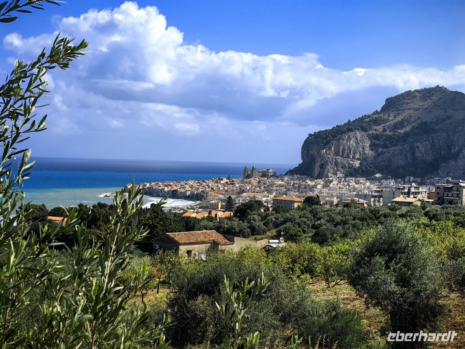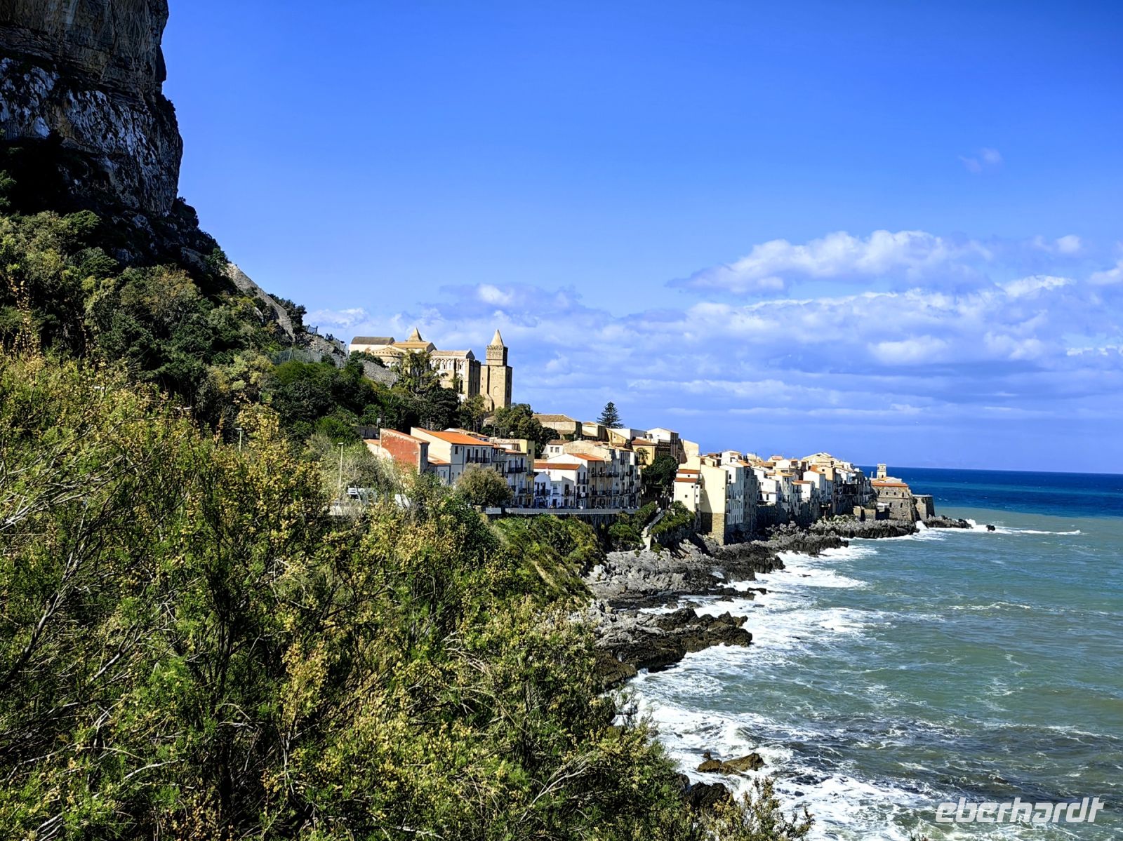 Wir verlassen Agrigent und durchqueren die Insel von Süd nach Nord. Am Vormittag erreichen wir Cefalu und sind schon ganz berauscht von den Ausblicken während der Anfahrt aufs azurblaue Wasser und das am Fels klebende Städtchen mit den weißen Sandstränden. Wie so viele Städte und Dörfer auf Sizilien hat auch diese Stadt griechische Wurzeln. Die antiken Eroberer gaben der Siedlung den Namen Kephaloidion, von dem sich der heutige Name Cefalu ableitet. Nach den Griechen kamen die Römer, danach die Araber.