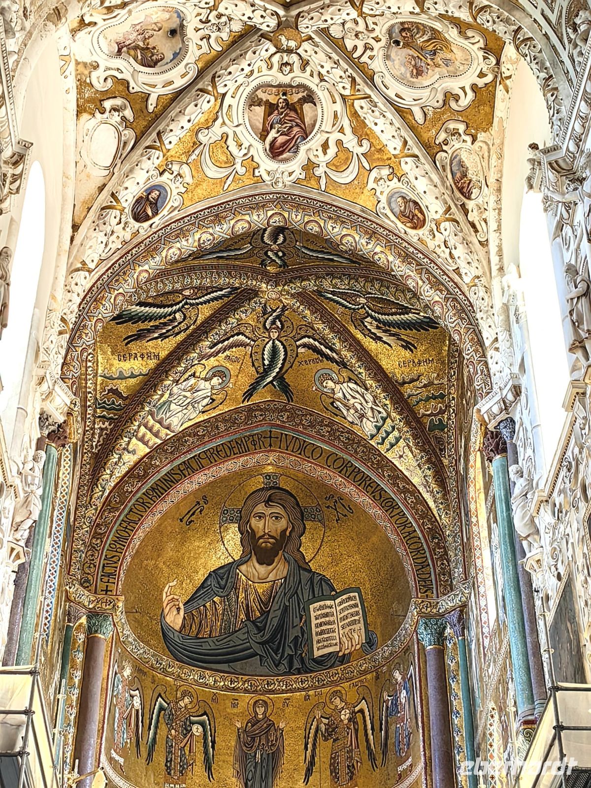 An der Kathedrale Santissiomo Salvatore di Cefalu bleiben wir andächtig stehen und staunen. Sie ist eine der zahlreichen Hinterlassenschaften aus der normannischen Zeit und liegt an der Piazzo Duomo. Man begann bereits 1131 mit dem Bau. Roger II soll die Kathedrale in Auftrag gegeben haben, nachdem er einen Sturm auf hoher See überlebt und bei Cefalu an Land gespült wurde. Aufgrund mehrerer Bauunterbrechungen wurde der imposante Bau mit den Zwillingstürmen allerdings erst 1240 fertig gestellt. Das Innere der Kathedrale ist in drei Schiffe unterteilt. Ursprünglich war in der Apsis ein großes Rosettenfenster vorhanden, welches im Jahr 1142 zugemauert wurde, um mehr Fläche für Mosaike zur Verfügung zu haben. Um diese Mosaike anzubringen, wurden extra aus dem weit entfernten Konstantinopel Künstler geholt. Besonders hervorzuheben ist der Christus Pantokrator in der Apsis, der gerade restauriert wurde und nun wieder in einstigem Glanz erstrahlt. Neben weiteren Mosaiken im byzantinischen Stil befinden sich mehrere Grabmäler und Skulpturen in der Katrhedrale. Eine dieser Skulpturen wurde 1533 von Antonello Gagini erschaffen und zeigt die Gottesmutter mit dem Kind. Die Holzdecke im Mittelschiff ist ein Beispiel für die islamische Kunst.
