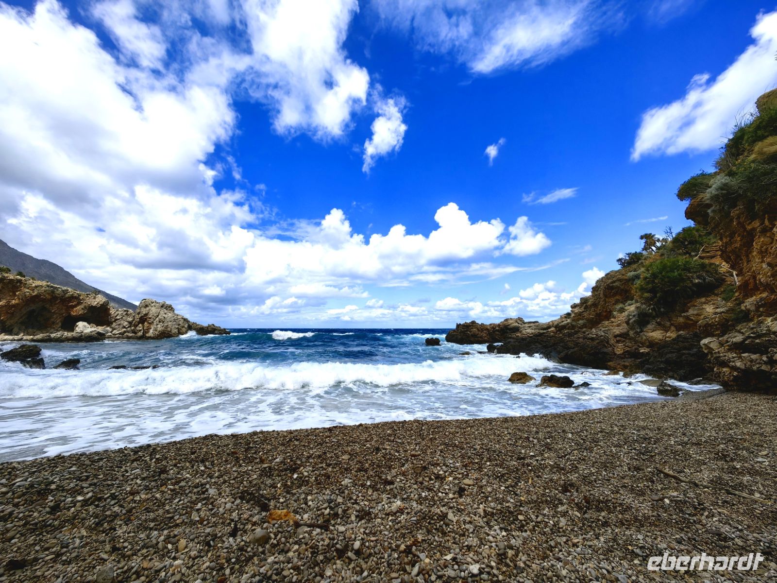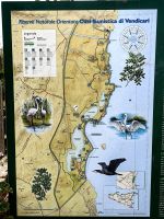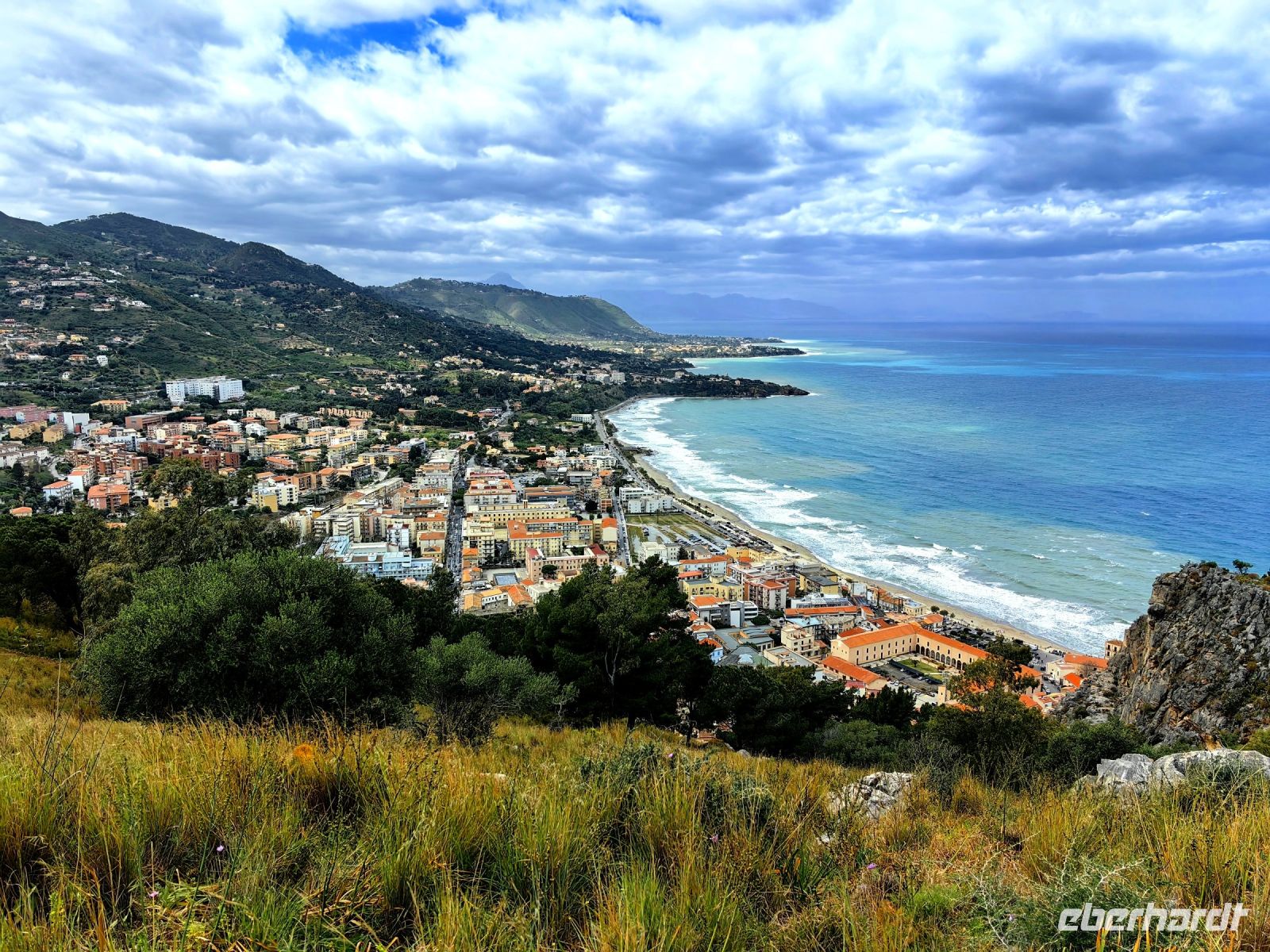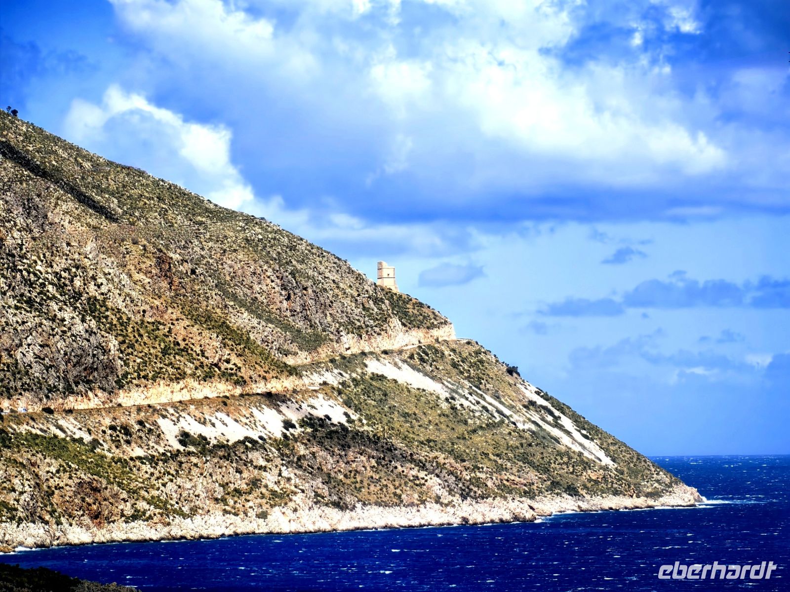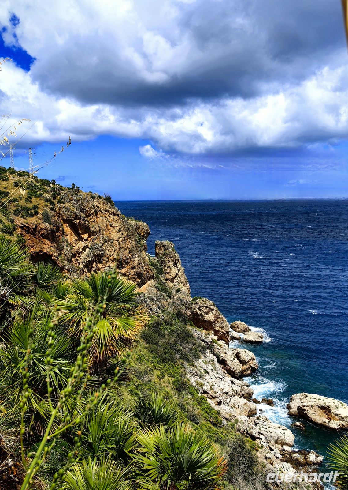 In den vergangenen Jahrhunderten lebten hier sowohl Bauern als auch Schmuggler in kleinen Dörfern, die die vielen Höhlen zur Lagerung ihrer Waren nutzten. Als Ende der 1970er Jahre der Bau einer Autostraße entlang einer der landschaftlich schönsten Küstenstrecken von Castellammare del Golfo bis San Vito lo Capo geplant wurde, gab es erhebliche Bürgerproteste. Daraufhin lenkte tatsächlich die Regierung ein und errichtete am 6. Mai 1981 das erste Naturreservat der Insel. Insgesamt umfaßt das Gebiet 1.600 Hektar und einen sieben Kilometer langen Küstenstreifen mit kleinen sandigen Buchten und rauen Kalkfelsen. Dadurch avancierte das Reservat zu einem der beliebtesten Orte der ganzen Insel, um herrliche Panoramablicke auf das Meer zu genießen, zu wandern oder zu baden. Da es heute recht kühl ist, ab und an sogar regnet und die dichten Wolken teilweise die Sonne verdecken, verzichten wir auf den Badespaß und widmen uns ganz der wilden Natur und den Ausblicken.
