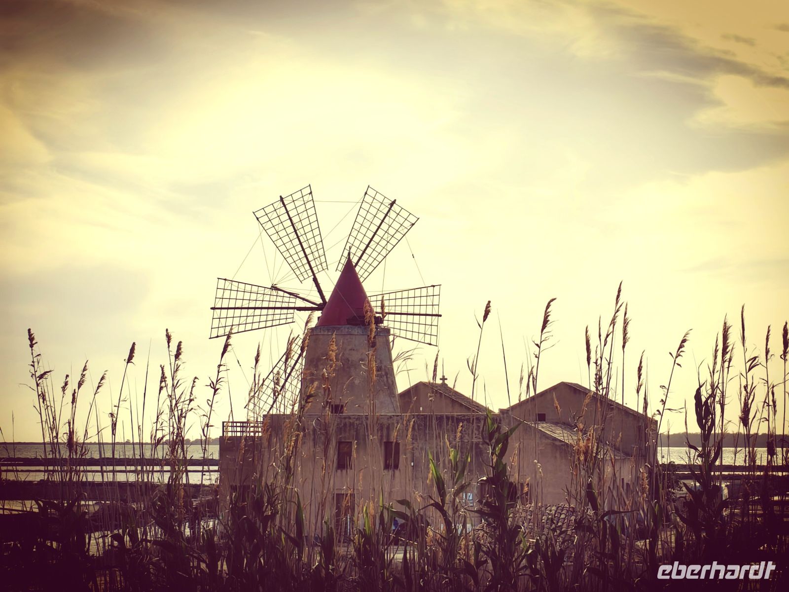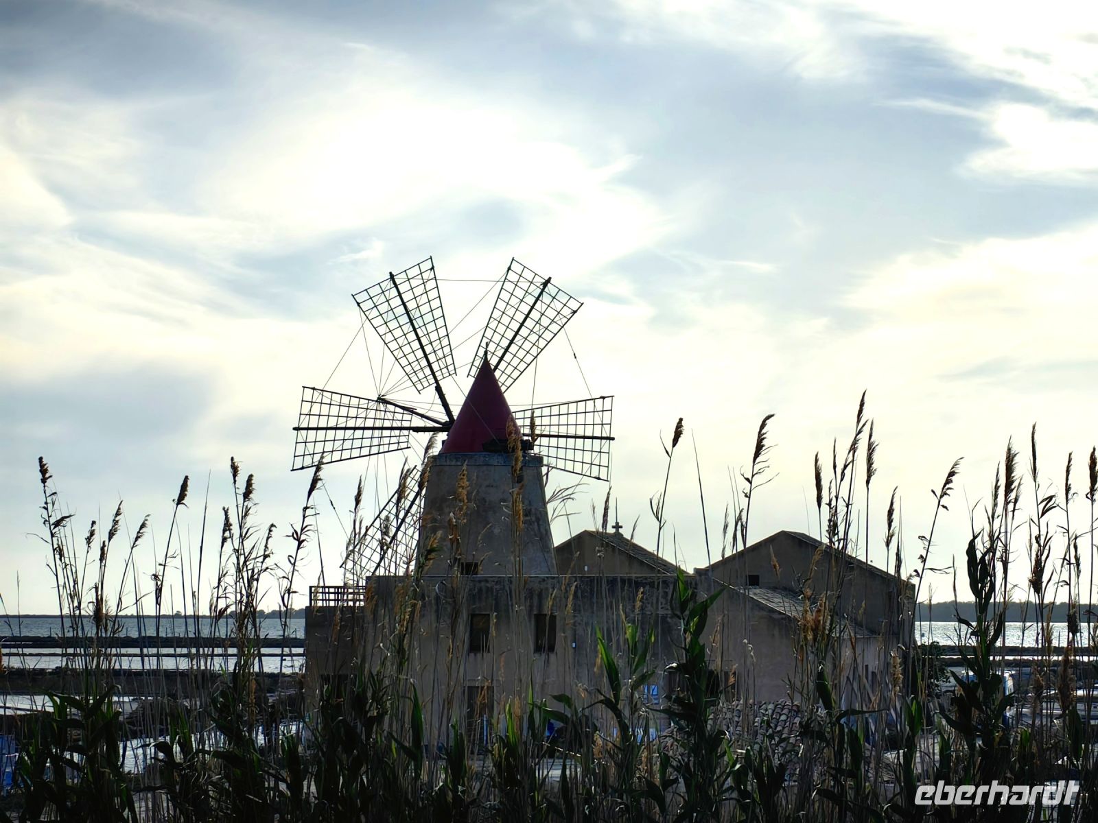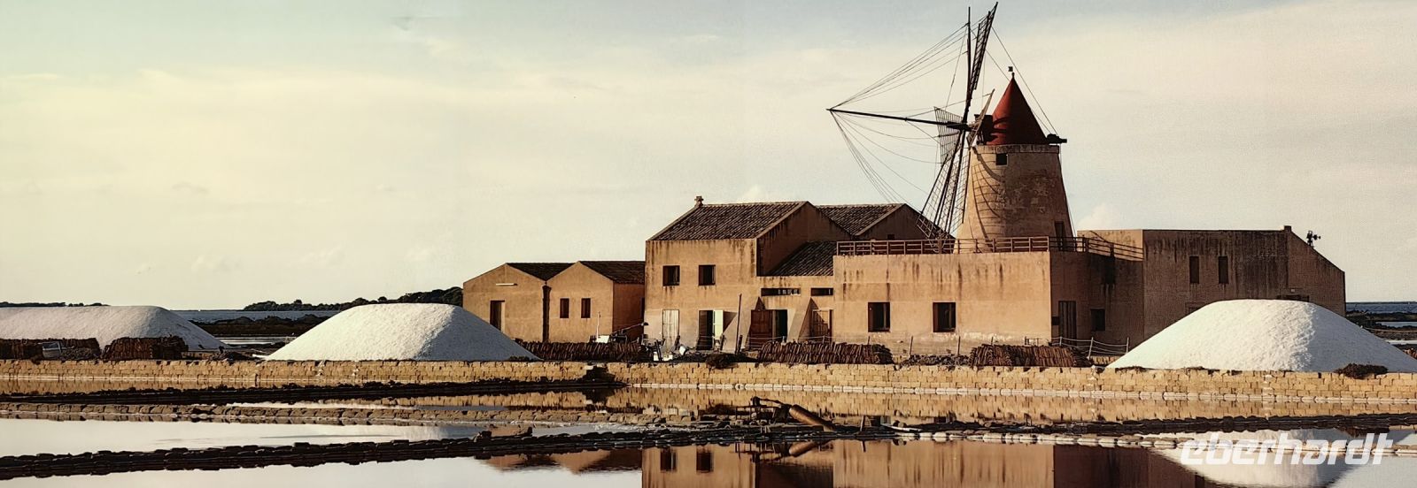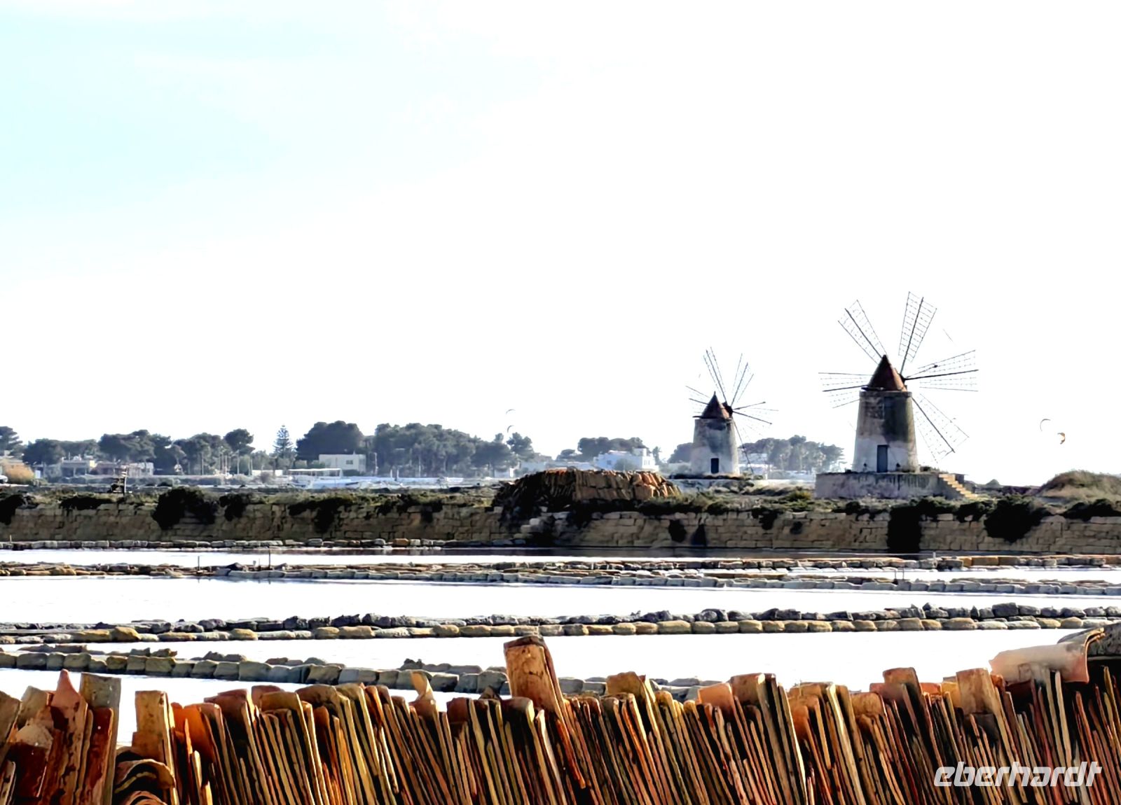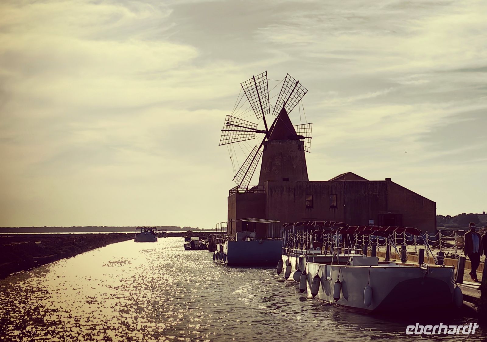 Mario, unser charmanter Busfahrer, hat noch eine Überraschung für uns. Er fährt extra einen kleinen Umweg direkt an der Küstenstraße von Marsala entlang, die Sonne steht tief, die Windmühlen in den Salinen erstrahlen rosa, die in den Wasserbecken stehenden Flamingos ebenfalls. Die Kitesurfer nutzen den starken Wind in der Bucht und gleiten über das Wasser. Alles in allem ein Anblick, der uns den Abschied noch schwerer macht. Wehmütig verabschieden wir uns von Mario und genießen danach im Hotel unser letztes Abendessen gemeinsam.