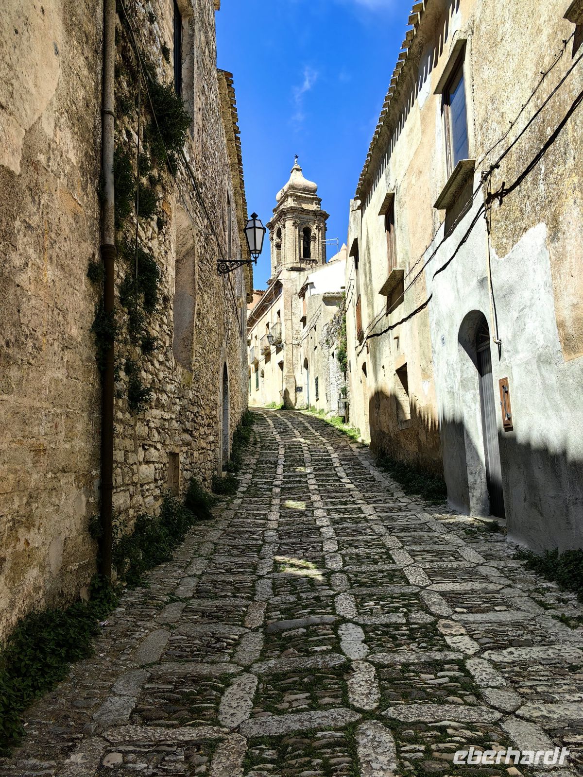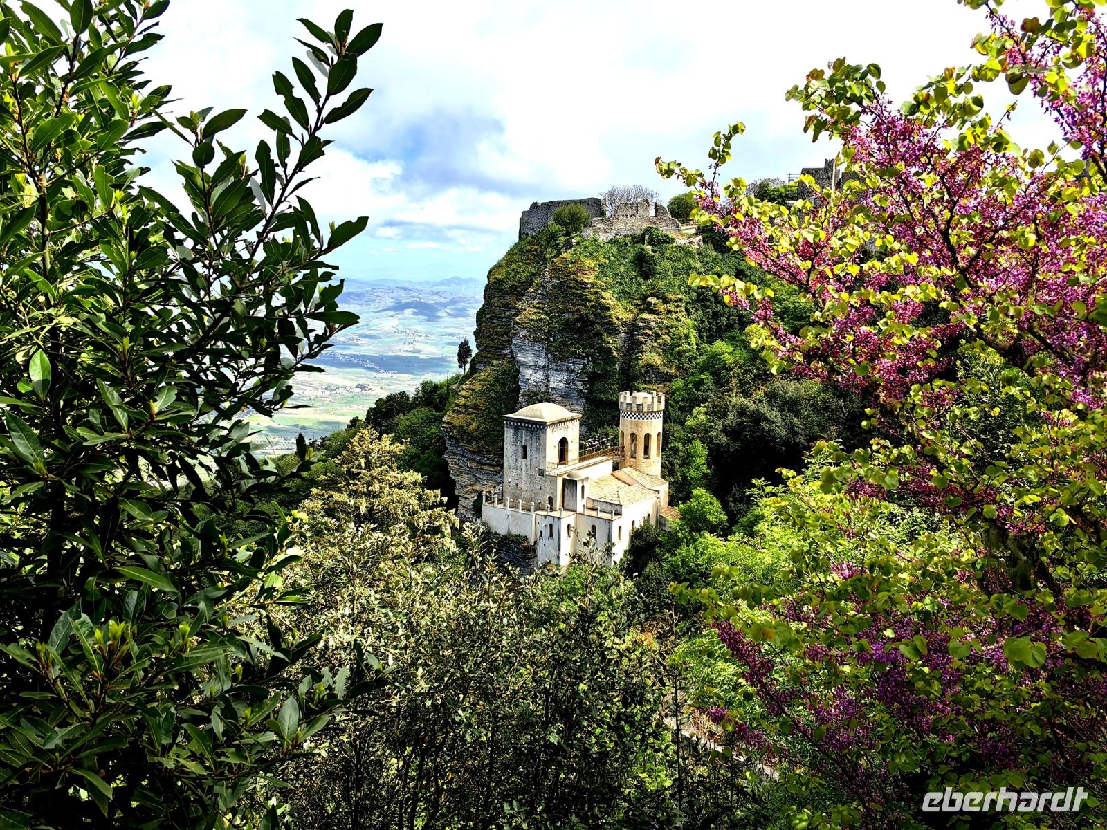 Nun brechen wir auf nach Erice. Diese kleine mittelalterlich wirkende Stadt thront hoch oben auf dem gleichnamigen etwa 750 Meter hohen Berg Monte Erice und als wir aussteigen, frösteln wir bei gerade noch 13 Grad. Das ist schon mal eine gute Einstimmung auf Temperaturen, die uns in Deutschland erwarten. Brrrrrrrrrr.!