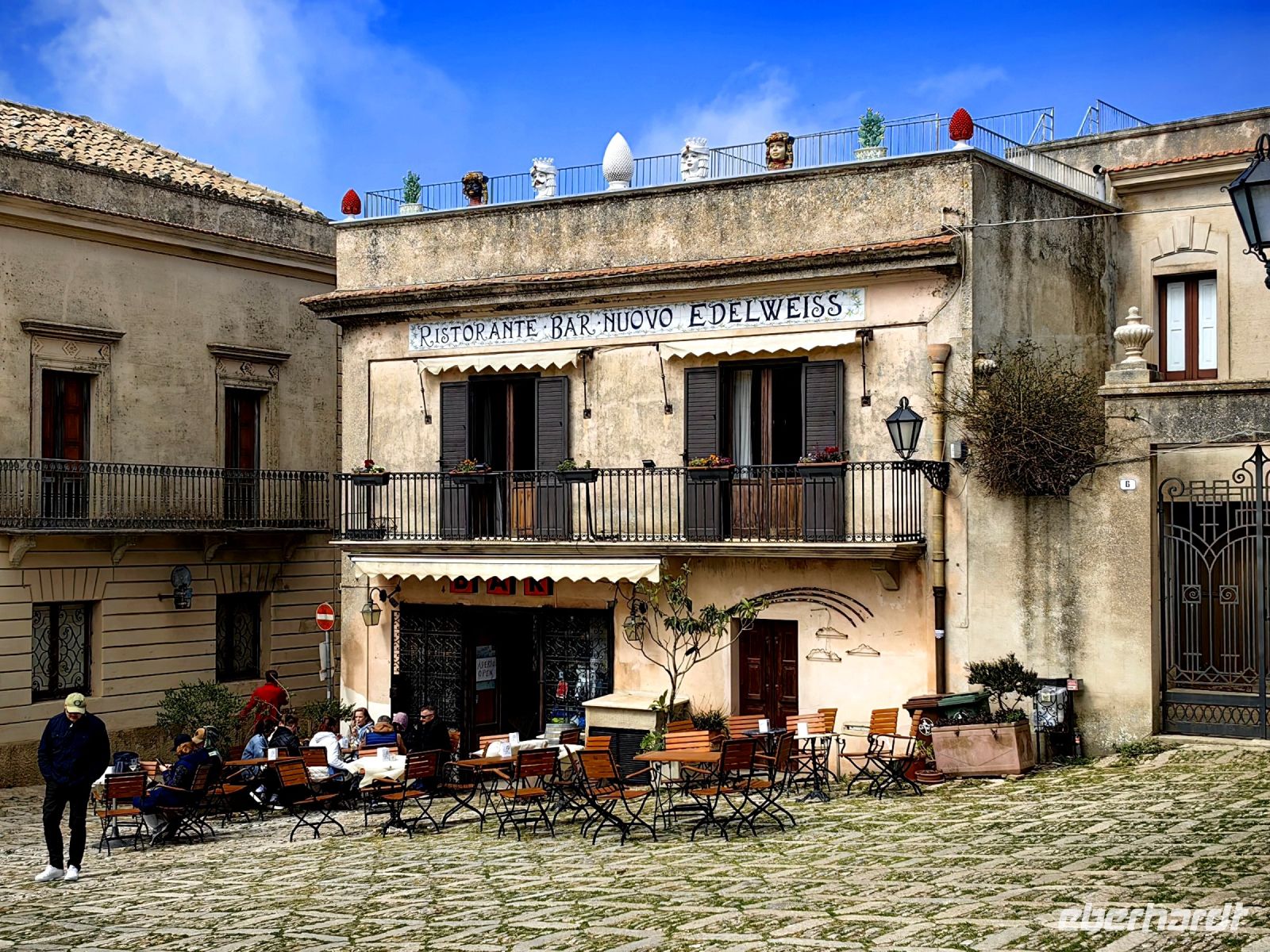 Vor der Kirche gibt es ein kleines Café, in dem wir heute unsere Mittagspause einlegen und danach spazieren wir in die Enna bassa, die sogenannte Unterstadt, wo unser Bus uns abholt.