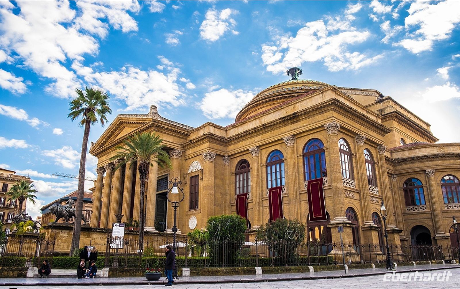 Unseren kleinen aber feinen Stadtspaziergang, den wir nur unternehmen konnten, weil unser Flug erst am Abend geht und der Busfahrer sich darauf einließ, viel früher als geplant loszufahren, beenden wir am Teatro Massimo. Dieses größte italienische Opernhaus wurde 1875 im Stile des Historismus erbaut. Wir müssen uns hier von Camillo, unserem Reiseleiter, unseren zwei Schweizern, die mit dem Zug nach Hause fahren und dem kanadischen Gast, der noch ein paar Tage bleiben möchte, verabschieden.