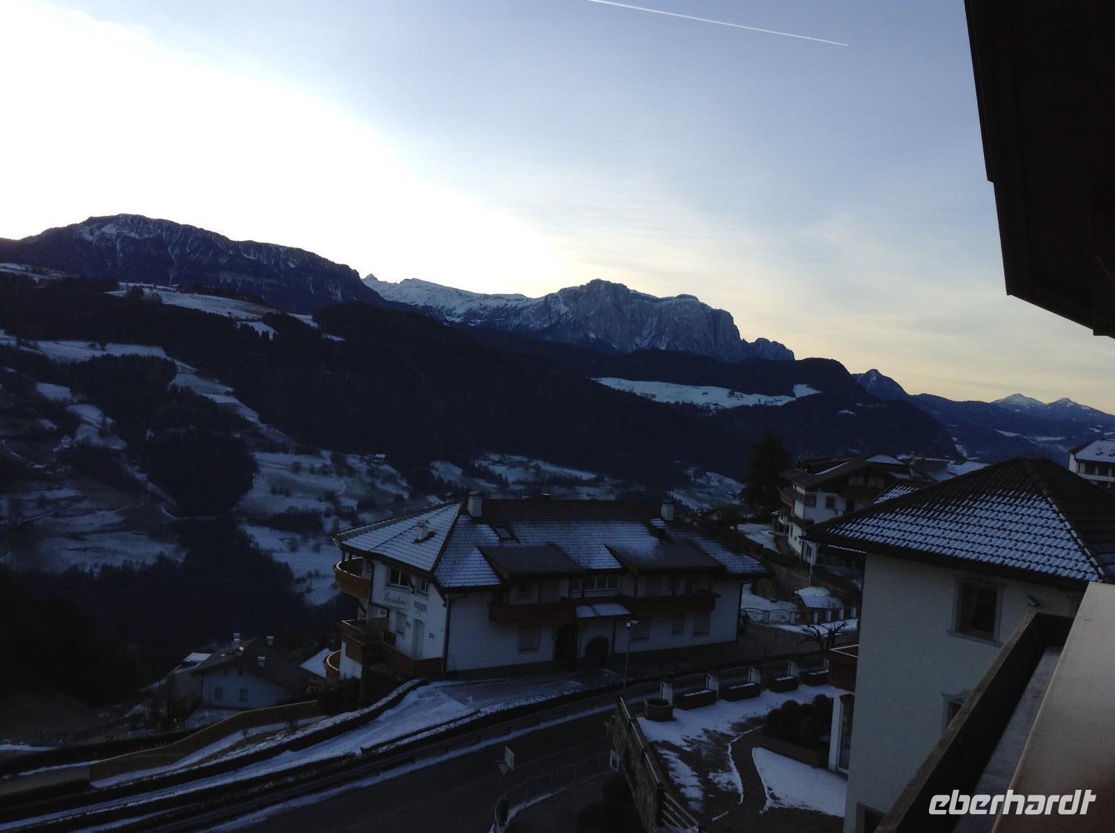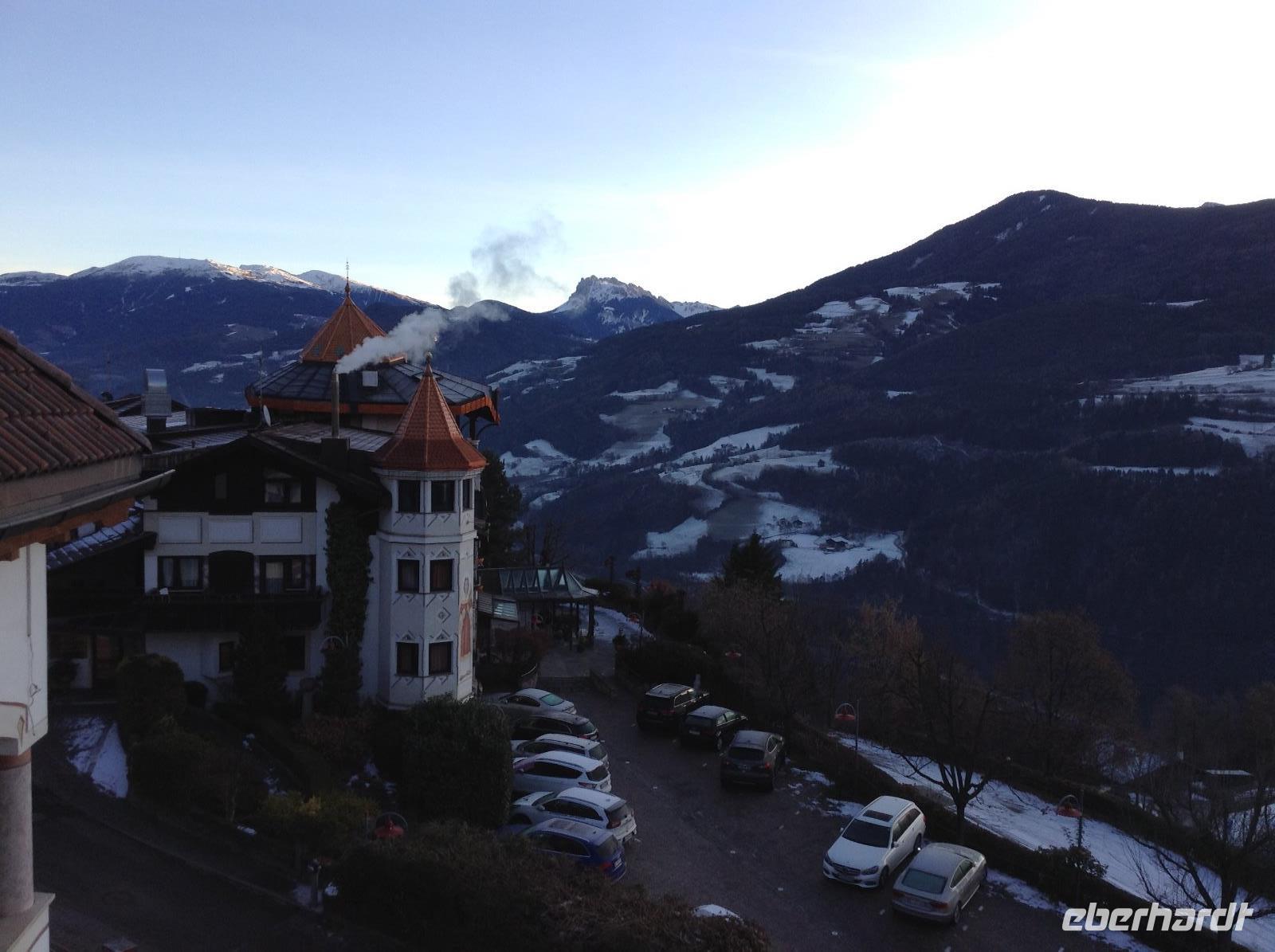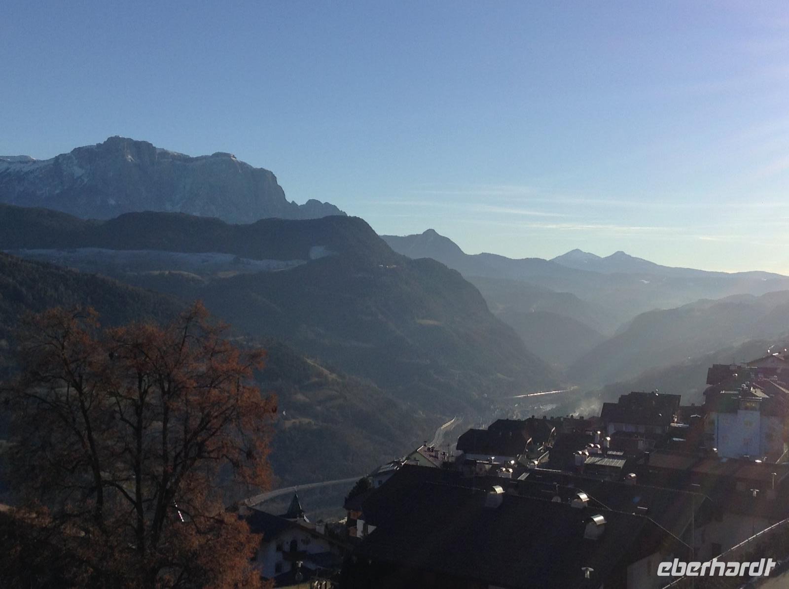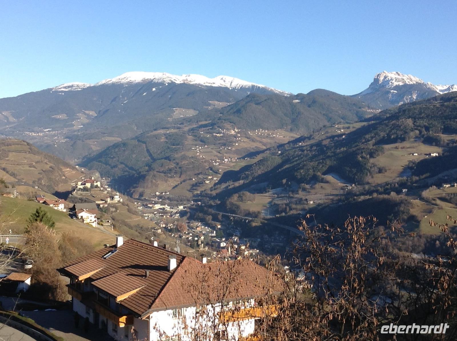 Es war ein schöner Anblick, als am ersten Morgen in Südtirol die Sonne über den Bergen und dem Eisacktal aufging. Erst jetzt sahen wir den Schnee an den Berghängen und auf den Gipfeln, ein wunderschöner Anblick.