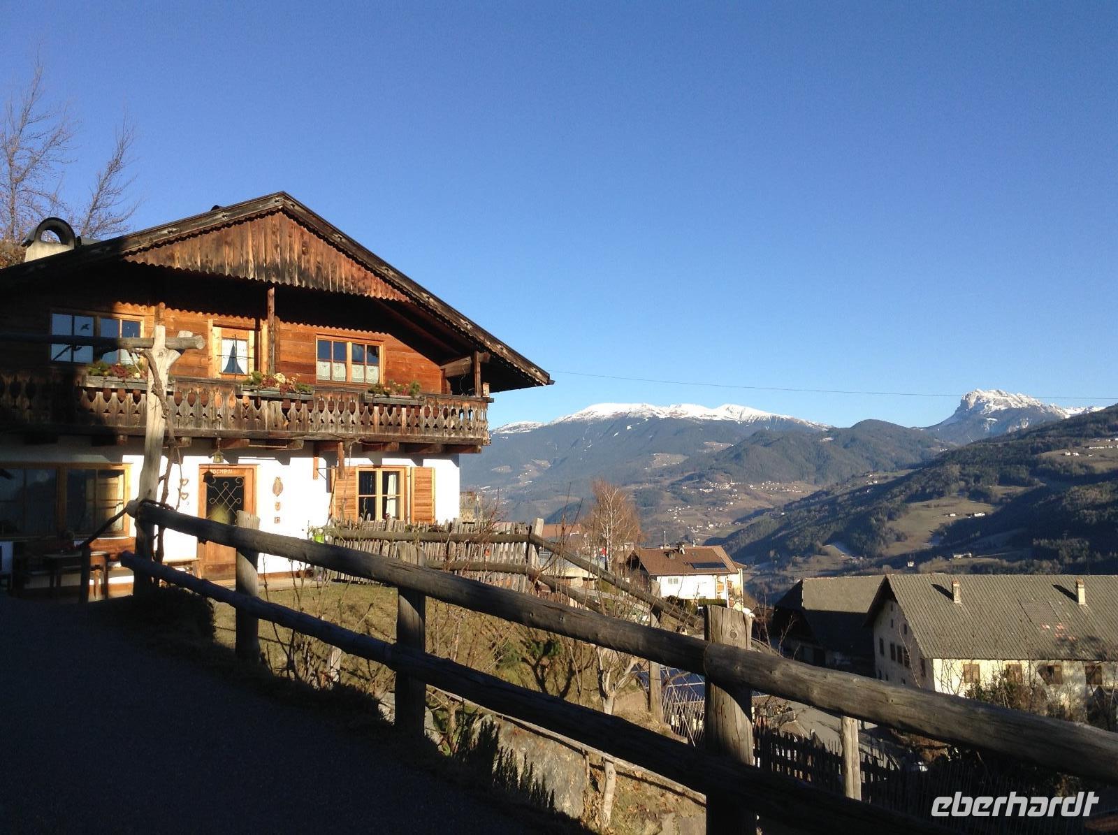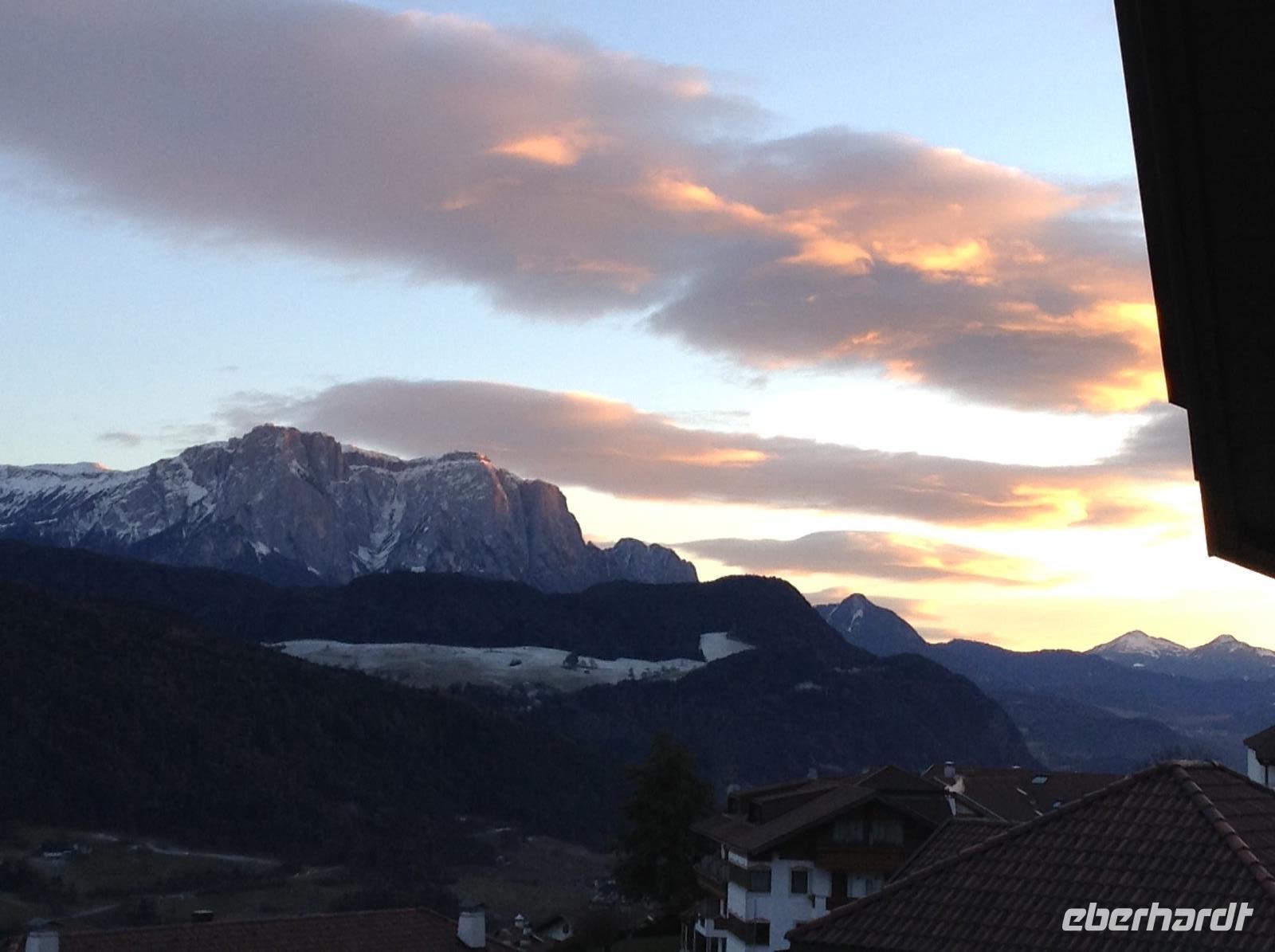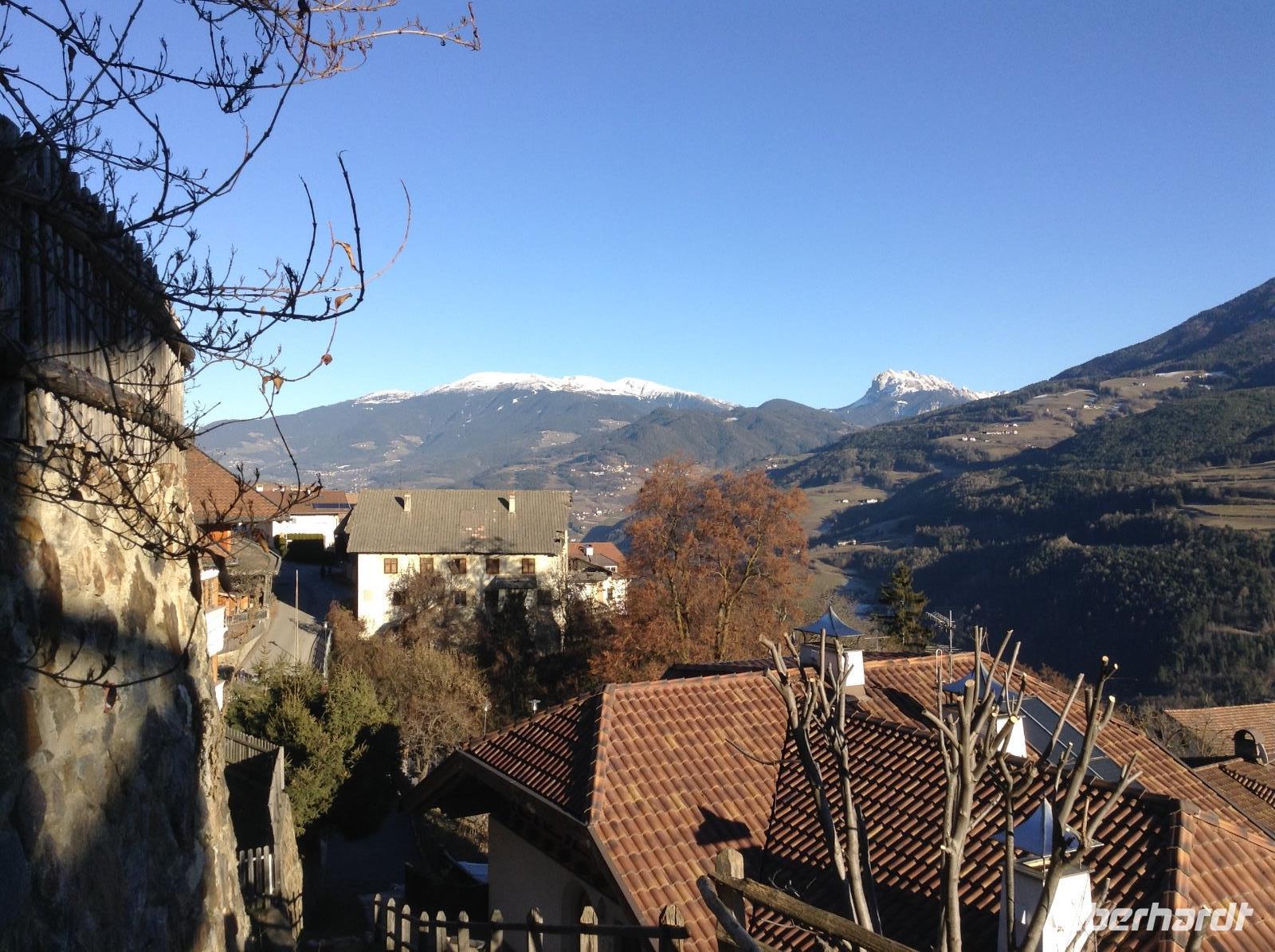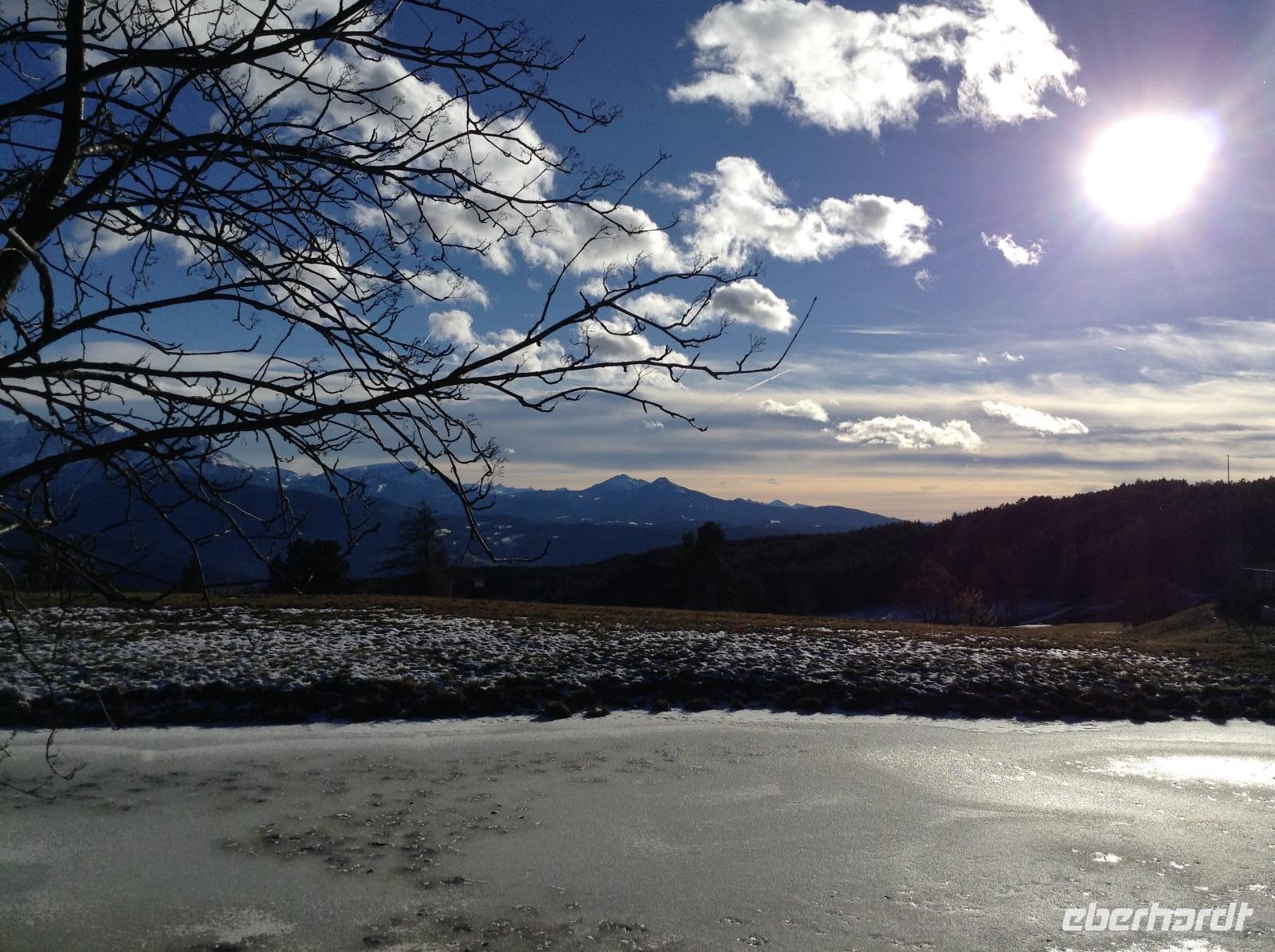 Es war ein schöner Anblick, als am ersten Morgen in Südtirol die Sonne über den Bergen und dem Eisacktal aufging. Erst jetzt sahen wir den Schnee an den Berghängen und auf den Gipfeln, ein wunderschöner Anblick.