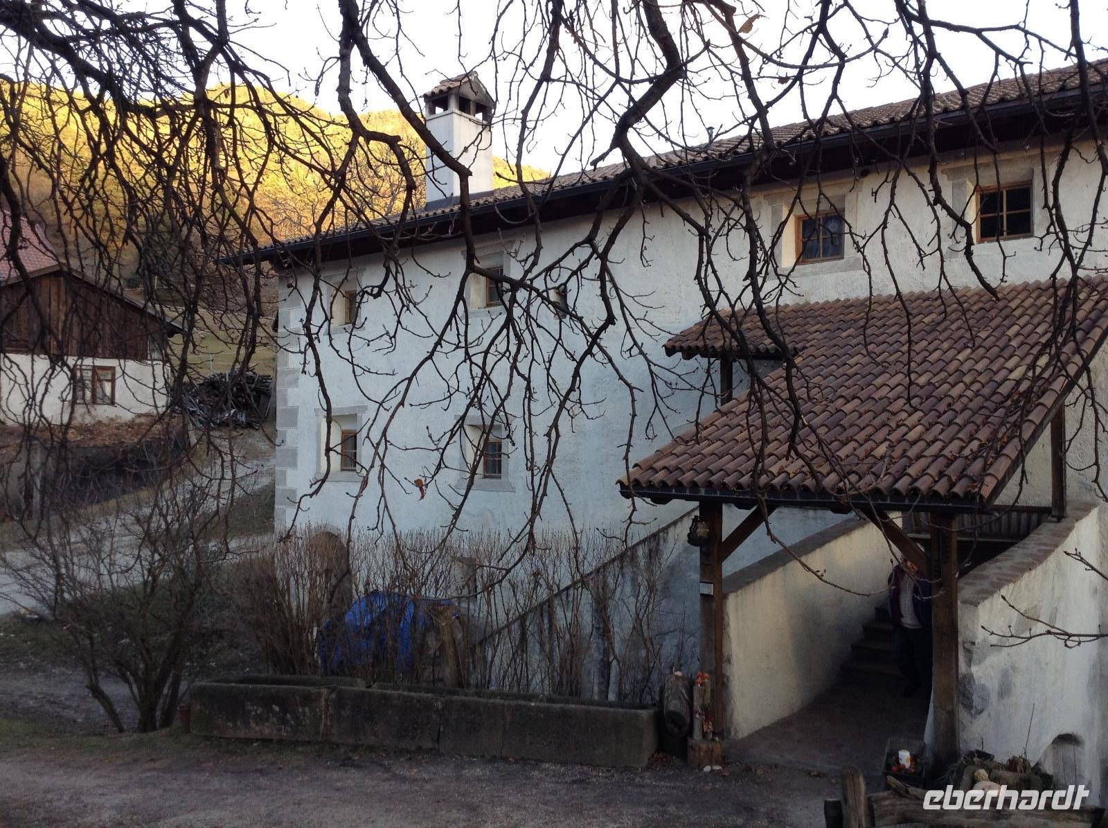 Nach dem Mittag ging es zu einer deftigen Brotzeit, Marend, wie die Südtiroler sagen, zum Unterfinser Hof. In einer alten gemütlichen Bauernstube saßen wir bei Brot, Speck, Käse, Kartoffeln, Krapfen und Wein und wurden mit dem Brauch des Törggelen vertraut gemacht.