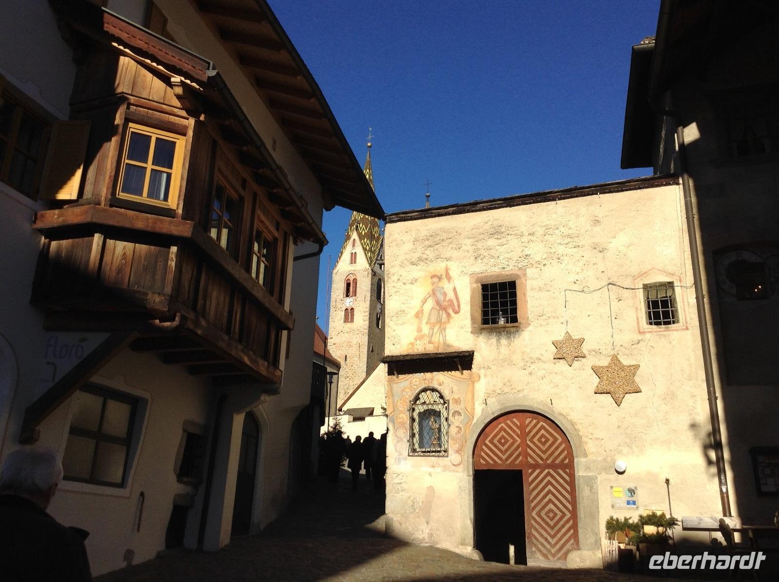 In den Räumen der Brixener Hofburg sahen wir uns eine tolle Krippenausstellung mit Krippen aus über 300 Jahren an. Eine schöne Ausstellung, die von jahrjunderte alter Tradition und Schnitzkunst der Tiroler Künstler und Handwerker erzählt. Anschließend erkundeten wir das mittelalterliche Flair der Stadt Brixen in das warme Licht der vielen Weihnachtsbeleuchtungen eingetaucht. Auf dem Marktplatz zwischen Hofburg und Dom standen die Buden des Christkindelmarktes. Es duftete nach weihnachtlichen Gewürzen, Punsch, Glühwein, verschiedenem Gebäck, gebrannten Mandeln. Wir genossen die Atmosphäre und ließen es uns gut gehen, bevor es zum Hotel zurückging.