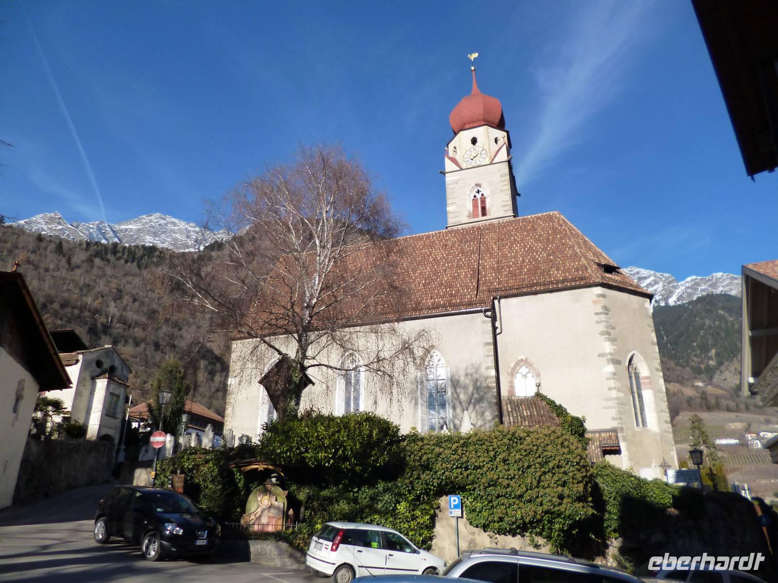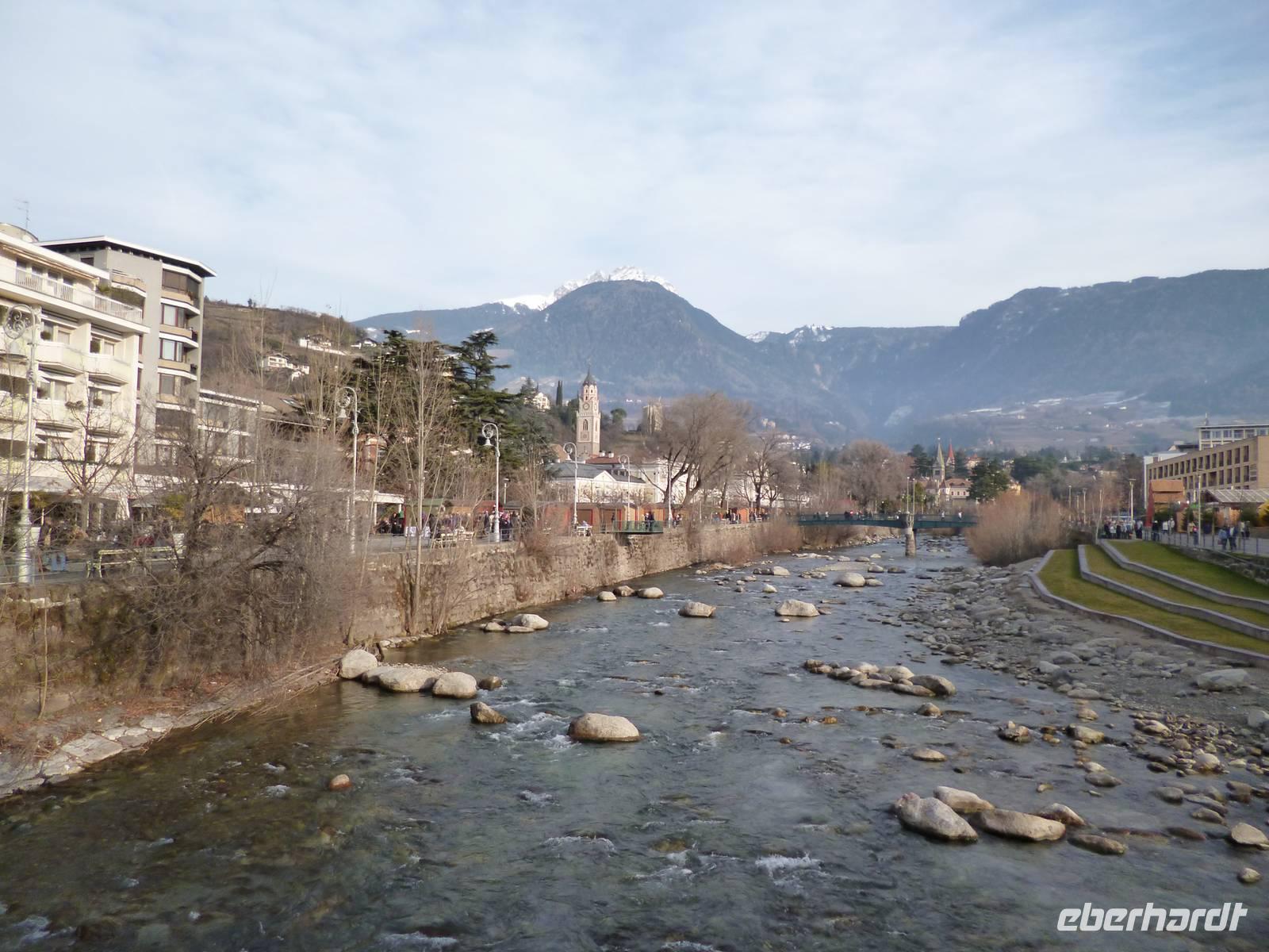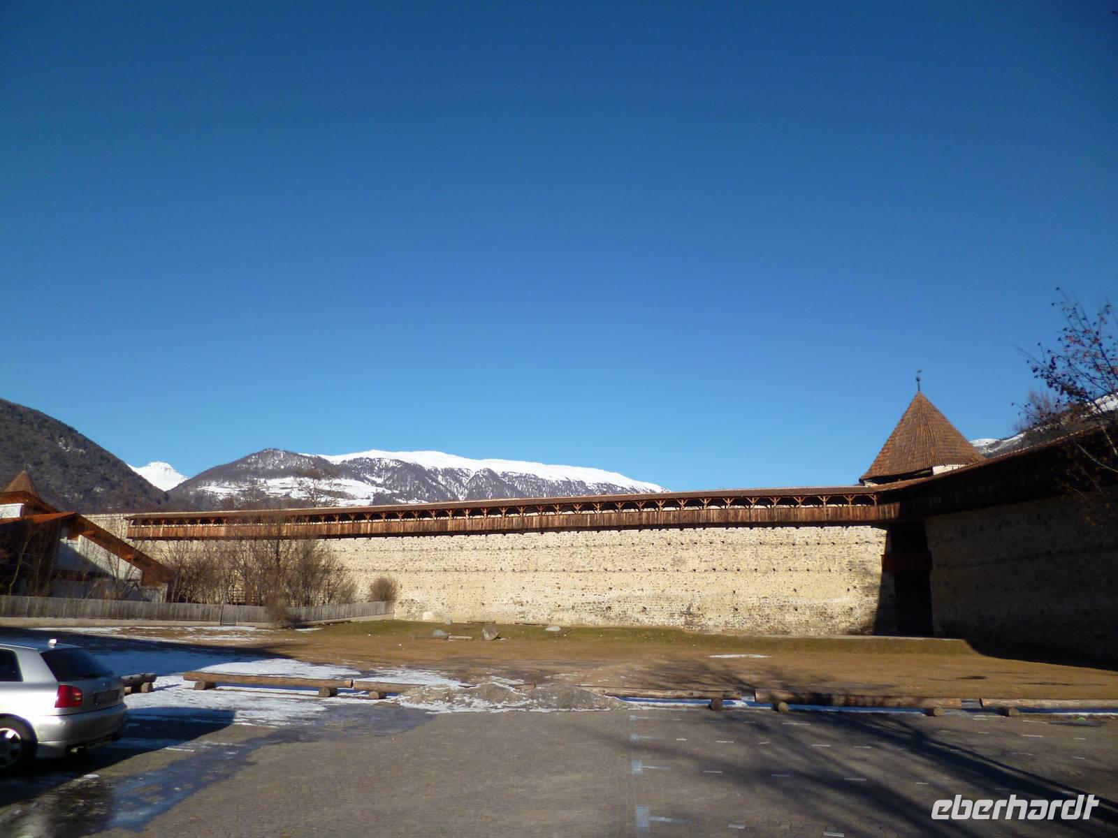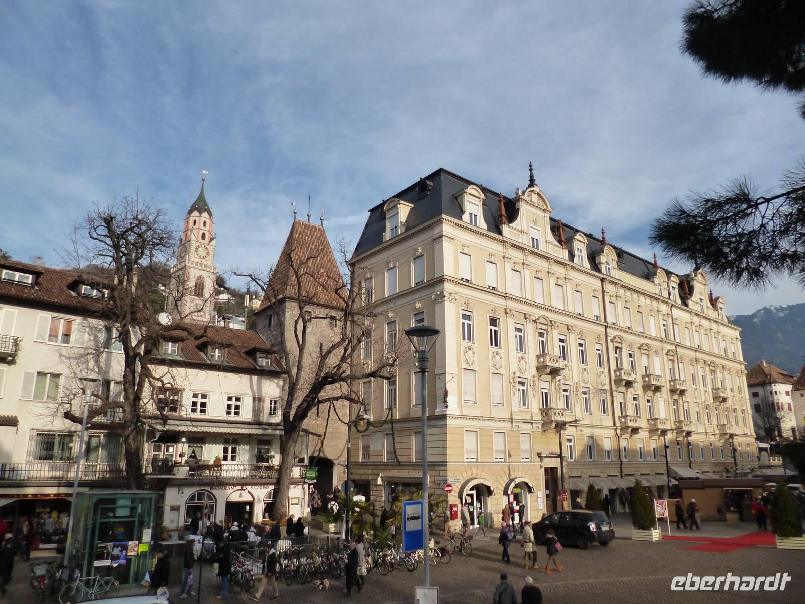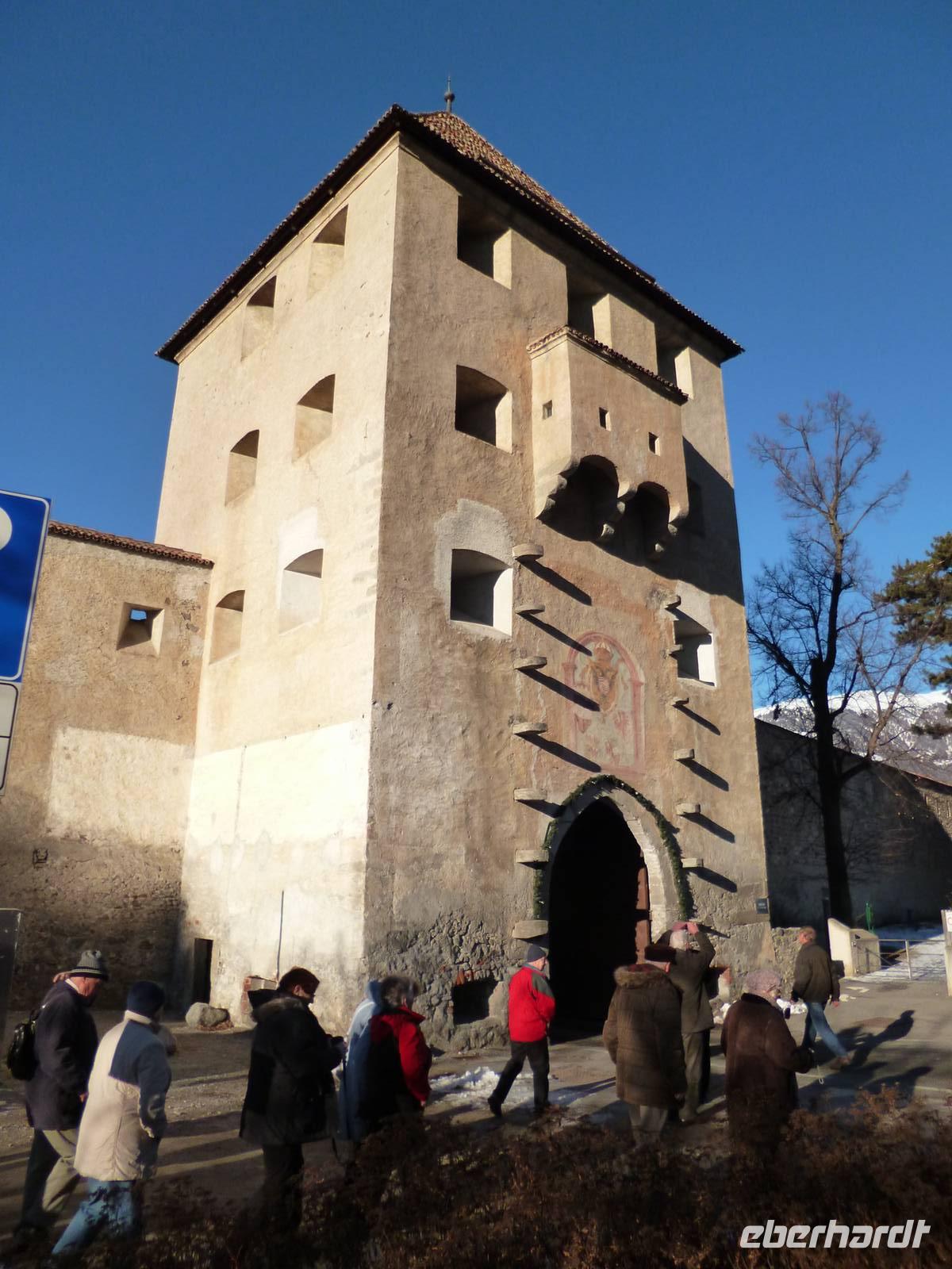 Nach dem Frühstück fuhren wir bei schönstem Wetter ins Dorf Tirol, dem mittelalterlichen Machtzentrum einer Grafschaft, die von Bayern bis Istrien und zum Trentino reichte und sogar Kärnten und Graubünden mit einschloss. Ein Spaziergang durch den Ort bis zur Aussichtsterrasse mit Blick auf das alte Burgschloss Tirol tat allen gut. Weiter nach Meran, wo sämtliche Gäste es vorzogen, den überschaubaren Ort individuell zu erkunden. Um 14 Uhr trafen wir uns am Busparkplatz, der total von Bussen überfüllt war. Neu ankommende Busse warteten in einer langen Schlange. Da die Gruppe komplett da war, konnten wir unseren Bus in der Warteposition beziehen und fuhren sofort auf den Parkplatz von Schloss Trautmannsdorff, wo die Gäste mit leckerem Glühwein versorgt wurden. Anschließend Rückfahrt zum Hotel, wo um 16.30 Uhr im Kaminzimmer bei Glühwein und Gebäck der Weihnachtsmann kam, allerdings mit kürzerem und eher grauem Bart. Zunächst lauschten alle einer Weihnachtsgeschichte von Robert Gernhardt, dann wurde beschert. Dieser Bescherung schlossen sich auch die Wirtsleute an. Für die Herren gab es Hochgeistiges, für die Damen Brauchbares. Nach gemütlichem Beisammensein folgte ein tolles Heiligabendmenu.