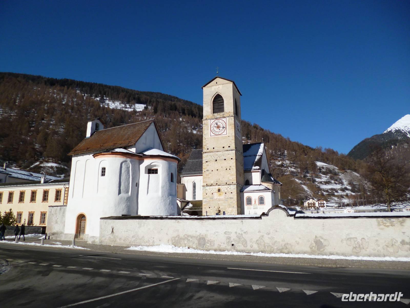 Bei sonnigem Wetter fuhren wir über Schluderns Richtung Schweiz. Zunächst besichtigten wir das mittelalterlich anmutende Städtchen Glurns mit komplett erhaltener Stadtmauer. Gleich hinter der schweizerischen Grenze galt unsere Aufmerksamkeit dem Kloster Müstair mit der Kirche St. Johann. Die über 1200 Jahre alte Anlage selbst liegt sehr malerisch und die karolingischen und romanischen Fresken in der Kirche gehören nicht umsonst zum UNESCO-Weltkulturerbe. Nach aussichtsreicher Serpentinenfahrt erreichten wir St. Moritz. Ausstieg am Bahnhof, wo der Bus 15 Minuten stehen darf. Der See war leider nicht begehbar, aber dafür der Rundweg. Mehrere Treppen und sogar Fahrstühle führen ins Ortszentrum, in dem alle Geschäfte und gastronomischen Einrichtungen geöffnet sind, allerdings zu entsprechenden Preisen. Nach 1 ½ Stunden Aufenthalt gut zweistündige Heimfahrt mit grandiosen Blicken auf schneebedeckte Gipfel im letzten Rot der untergehenden Sonne.