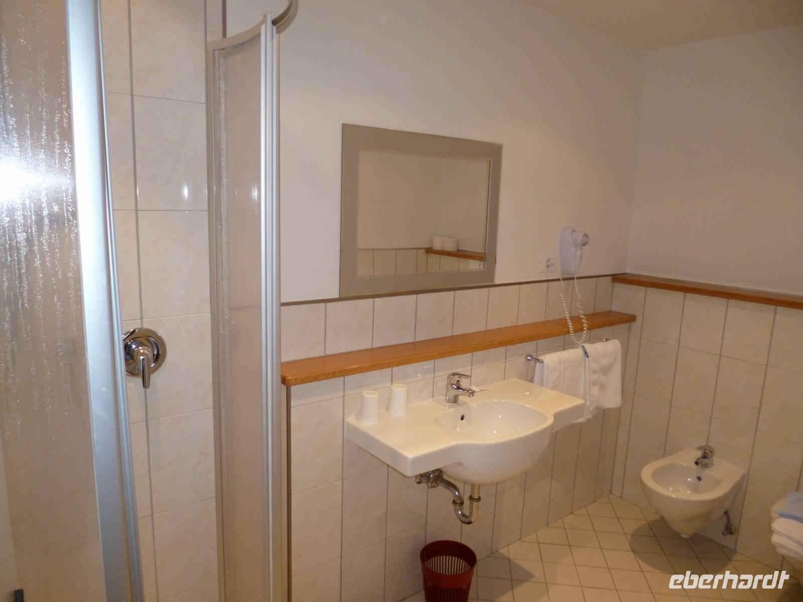 Weil viele Gäste wegen verschiedener Beschwerden eine Apotheke aufsuchen wollten, fuhren wir gleich nach Latsch, wo man auch gleich kleinere Einkäufe erledigen konnte. Anschließend schöne Fahrt in das mittelalterlich anmutende Städtchen Neumarkt, italienisch Egna an der Weinstraße, wo man durch pittoreske Laubengänge spazieren konnte. Am Kalterer See, der von unserem Parkplatz zugänglich war, legten wir die Mittagspause ein. Um 14 Uhr begann im Weingut Brigl die Kellerführung mit anschließender Verkostung von fünf leckeren Weinen. Vor allem den Damen hatte es der süßliche Muskateller angetan und heiter beschwingt fuhren die Gäste gegen 16.15 Uhr ins Hotel zurück.
