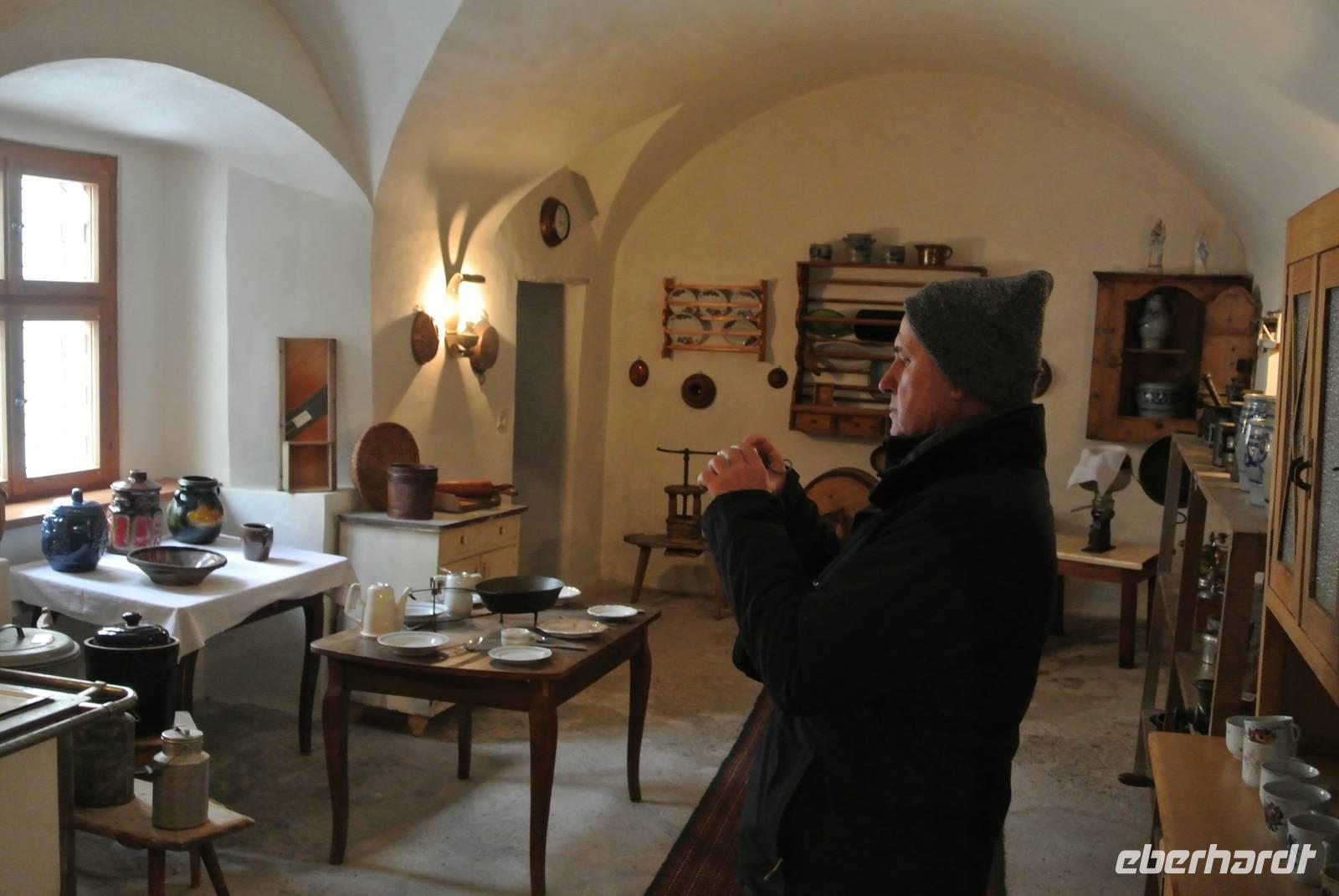 Bei der Besichtigung der beiden Kulturdenkmale hatten wir ein ganz besonderes Erlebnis. Josef, der neben unserer Gruppe eine Pause während seines morgendlichen Spaziergangs machte, erzählte uns, dass er oberhalb des Schlosses auf einer Alm aufgewachsen sei.